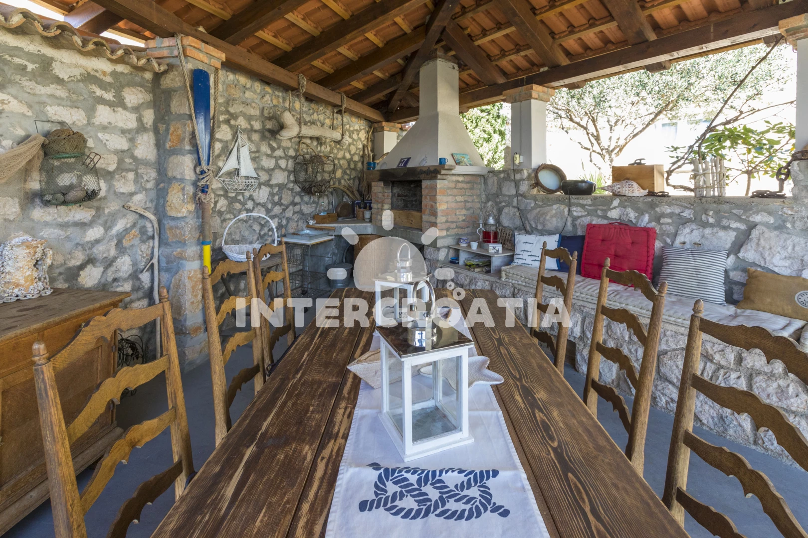 Krytý gril s posezením pro společné použití. Velmi přátelská bytná. Doporučeno!