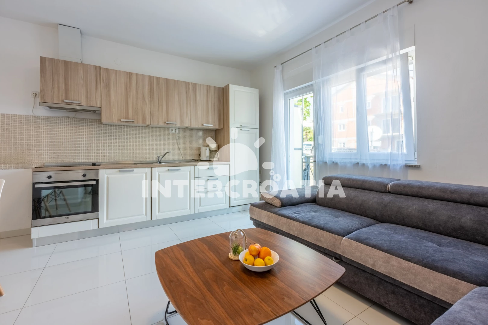 Vzdálenosti: Moře 250 m, pláž 250 m (oblázková a betonové desky), supermarket 150 m, veřejná doprava 200 m, lékárna 200 m, centrum 200 m, banka 250 m, směnárna 250 m, restaurace 250 m, bar 300 m, pošta 300 m, ambulance 400 m, čerpací stanice 600 m, letiště (Rijeka) 35 km,