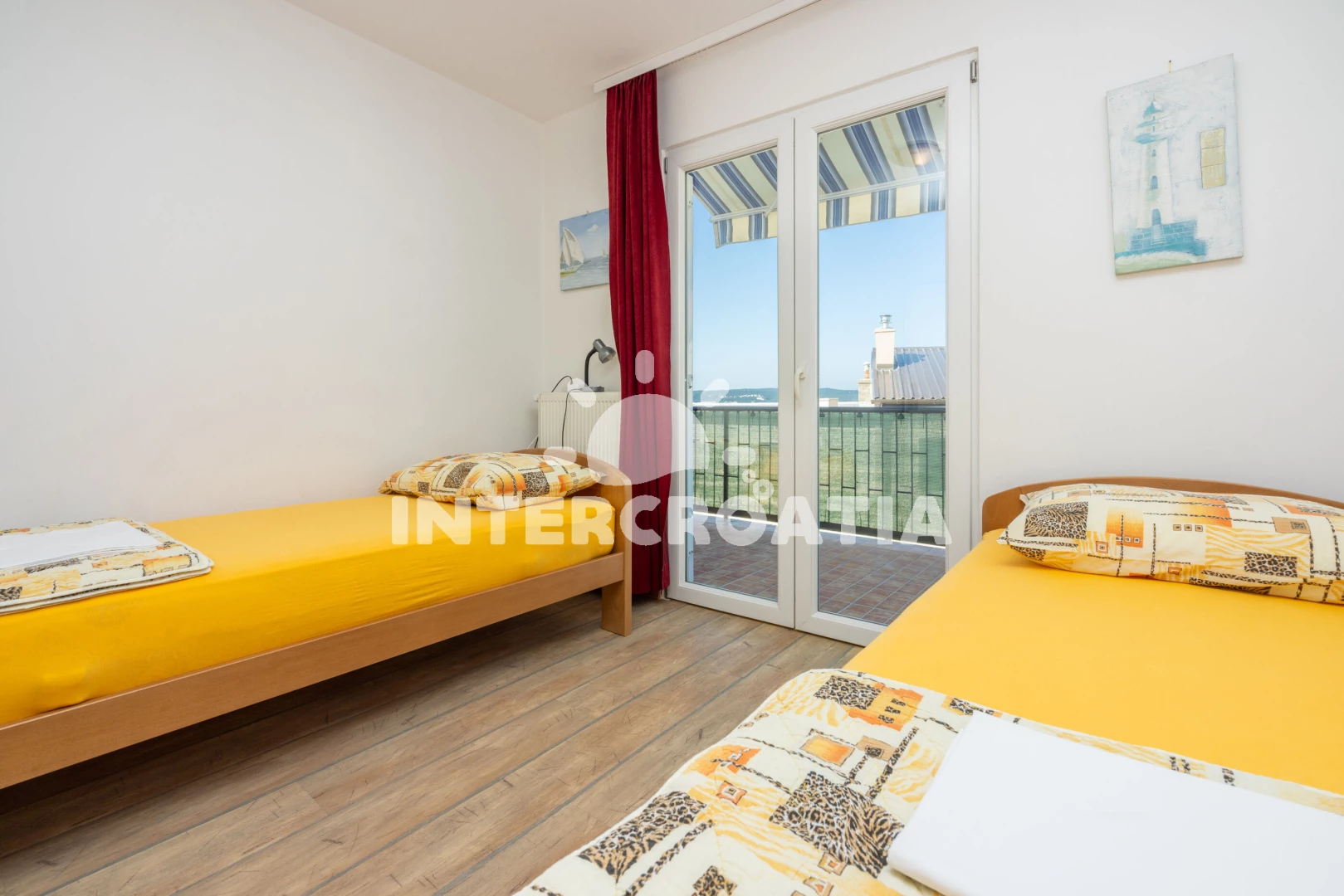 Apartmán (40 m2) s balkonem, a výhledem na moře. Nachází se v 1. patře objektu. Apartmán má 2 ložnice a je vhodný pro až 4 osoby. Kuchyňská linka je vybavena varnou deskou, troubou, kávovarem,…