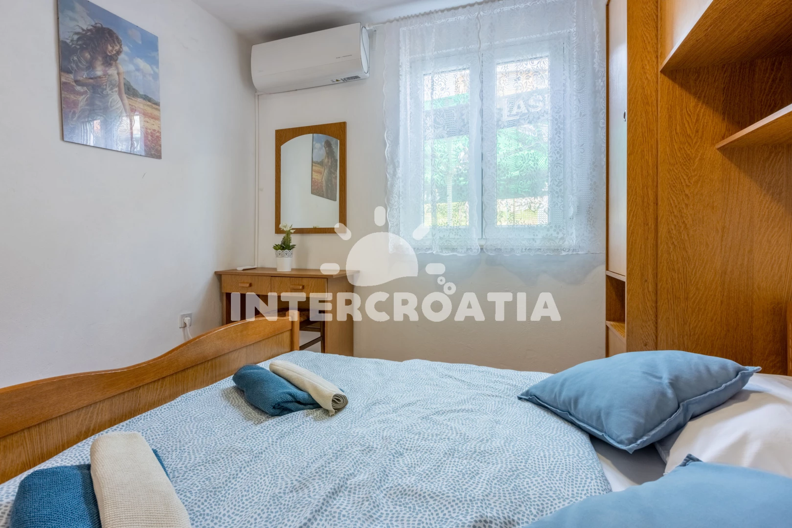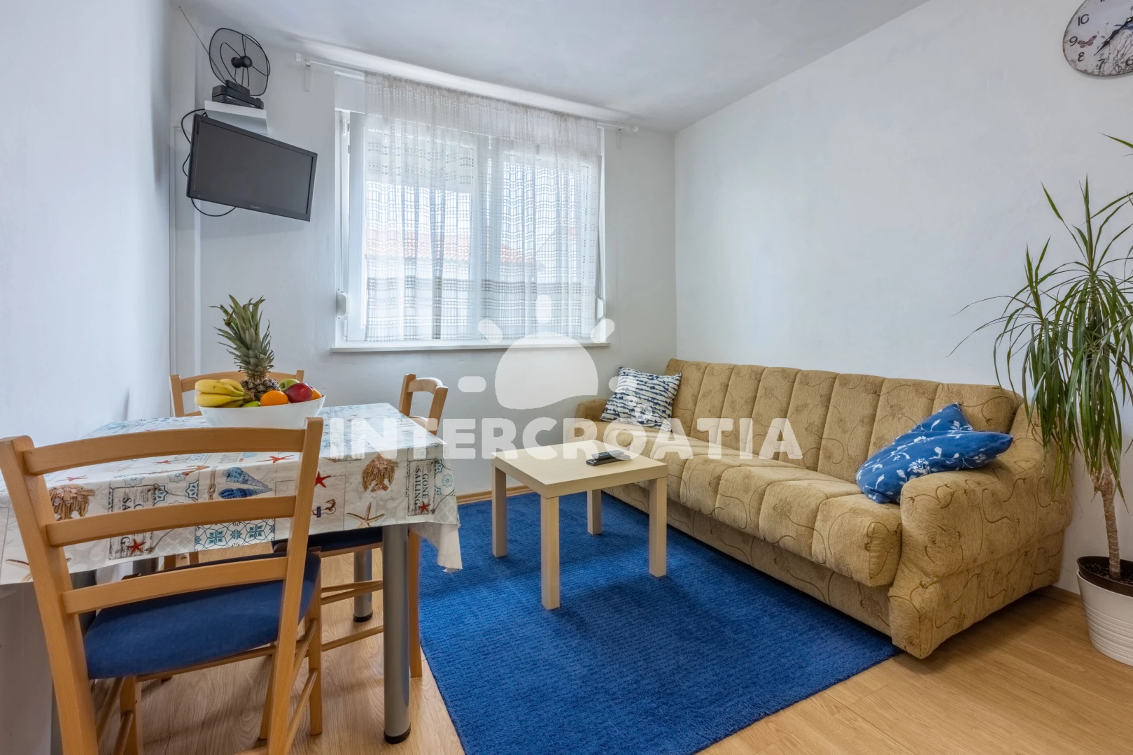 Vzdálenosti: Moře 250 m, pláž 250 m (písčitá a oblázková), bar 200 m, restaurace 200 m, supermarket 250 m, směnárna 300 m, diskotéka 400 m, banka 400 m, centrum 400 m, lékárna 420 m, pošta 450 m, muzeum 450 m, potápění 550 m, ambulance 700 m, letiště (Rijeka) 25 km,