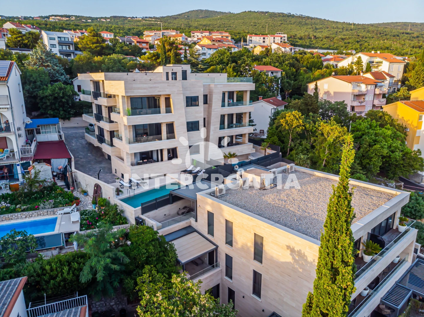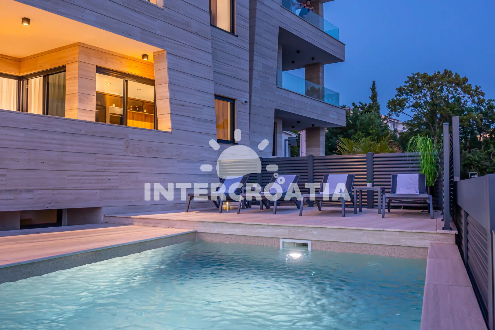 Vzdálenosti: Moře 15 m, pláž 20 m (skalnatá a oblázková), bar 200 m, restaurace 200 m, supermarket 400 m, směnárna 500 m, pošta 700 m, centrum 700 m, banka 700 m, půjčovna kol 750 m, muzeum 800 m, lékárna 800 m, diskotéka 800 m, potápění 900 m, čerpací stanice 1 km, ambulance 1,1 km, tenisové kurty 2,5 km, letiště (Rijeka) 25 km,