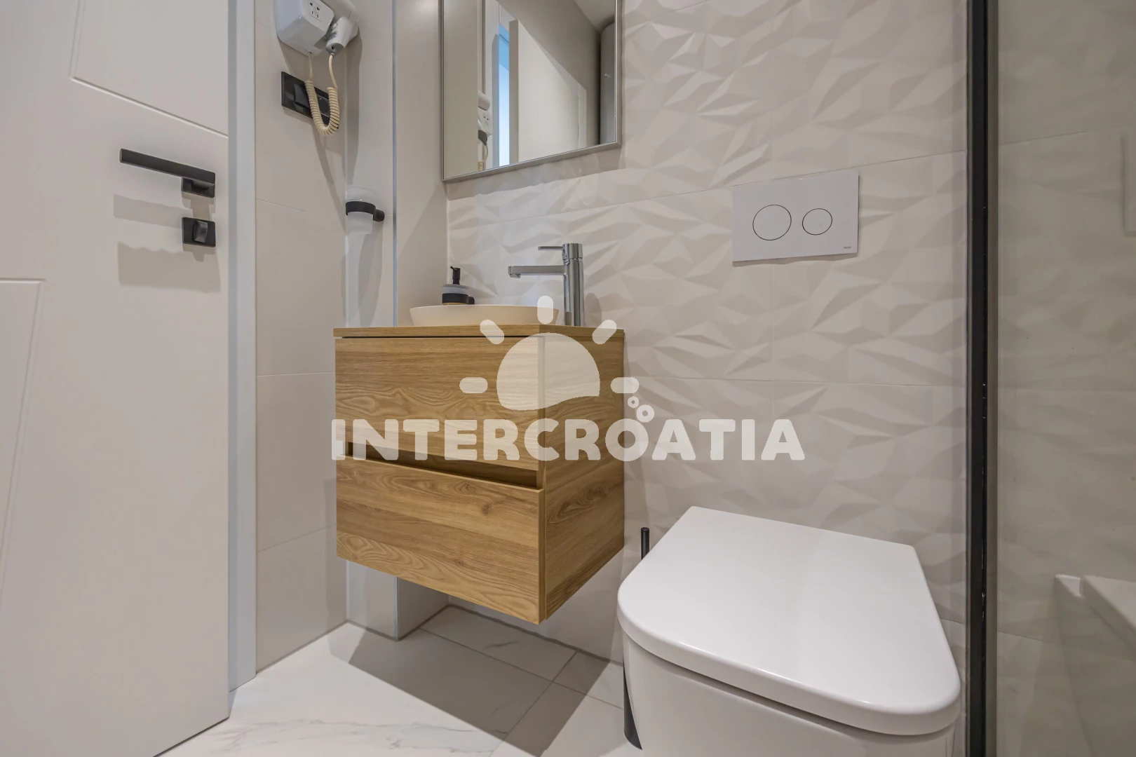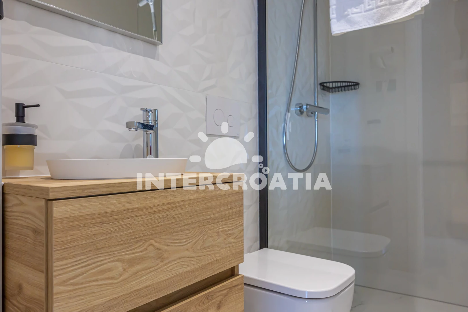 Vzdálenosti: Moře 15 m, pláž 20 m (skalnatá a oblázková), bar 200 m, restaurace 200 m, supermarket 400 m, směnárna 500 m, pošta 700 m, centrum 700 m, banka 700 m, půjčovna kol 750 m, muzeum 800 m, lékárna 800 m, diskotéka 800 m, potápění 900 m, čerpací stanice 1 km, ambulance 1,1 km, tenisové kurty 2,5 km, letiště (Rijeka) 25 km,