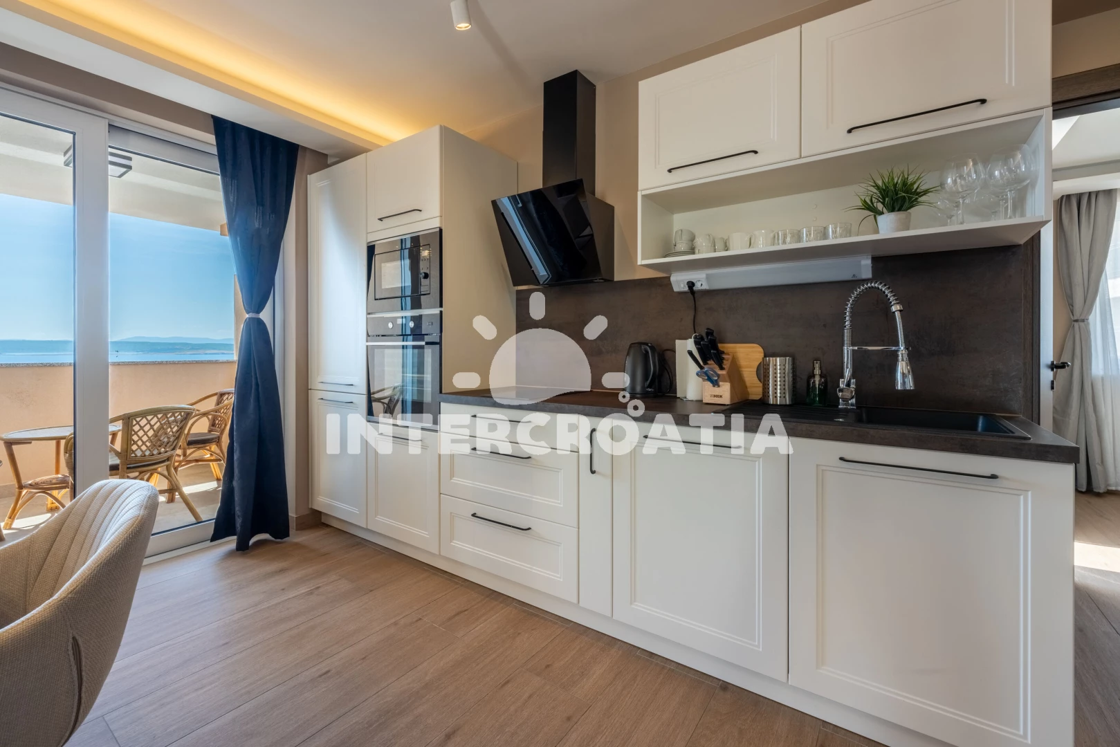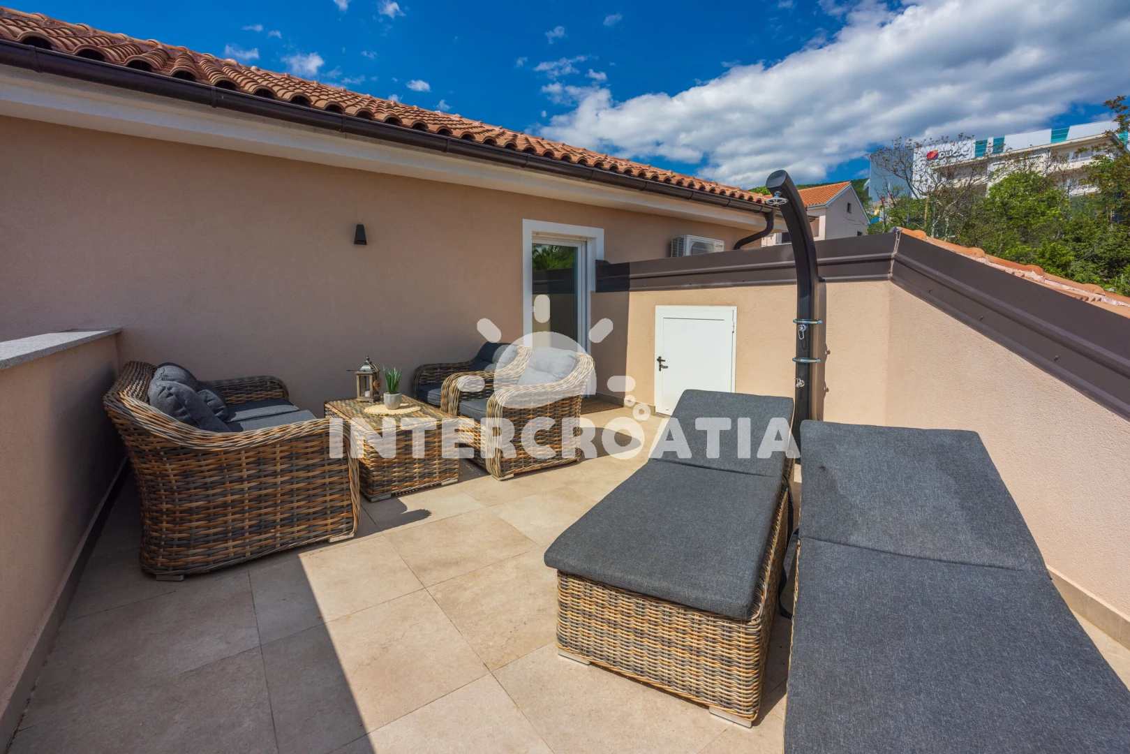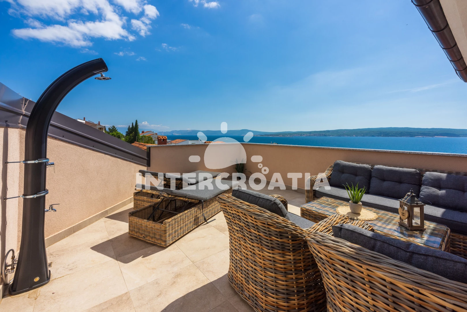 Vzdálenosti: Moře 250 m, pláž 300 m (skalnatá, oblázková a betonové desky), restaurace 150 m, mini golf 150 m, bar 200 m, směnárna 300 m, supermarket 350 m, potápění 400 m, čerpací stanice 500 m, pošta 1,1 km, diskotéka 1,1 km, muzeum 1,1 km, centrum 1,1 km, banka 1,1 km, lékárna 1,1 km, půjčovna kol 1,1 km, ambulance 1,3 km, letiště (Rijeka) 20 km, trajekt (Rijeka) 37 km,