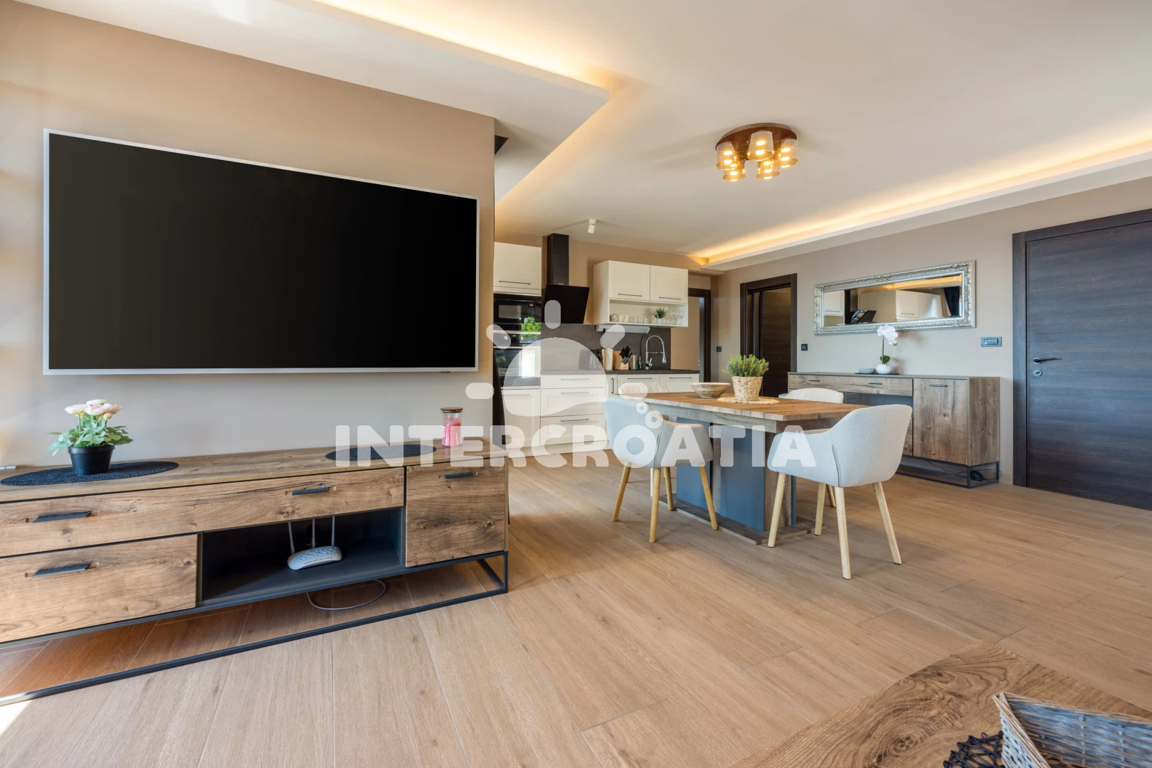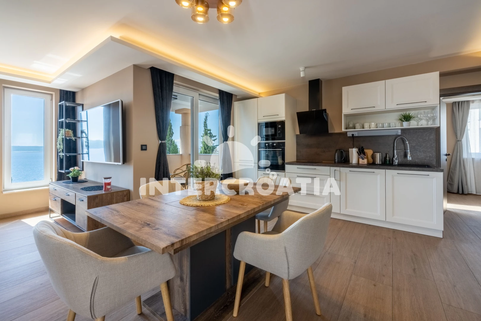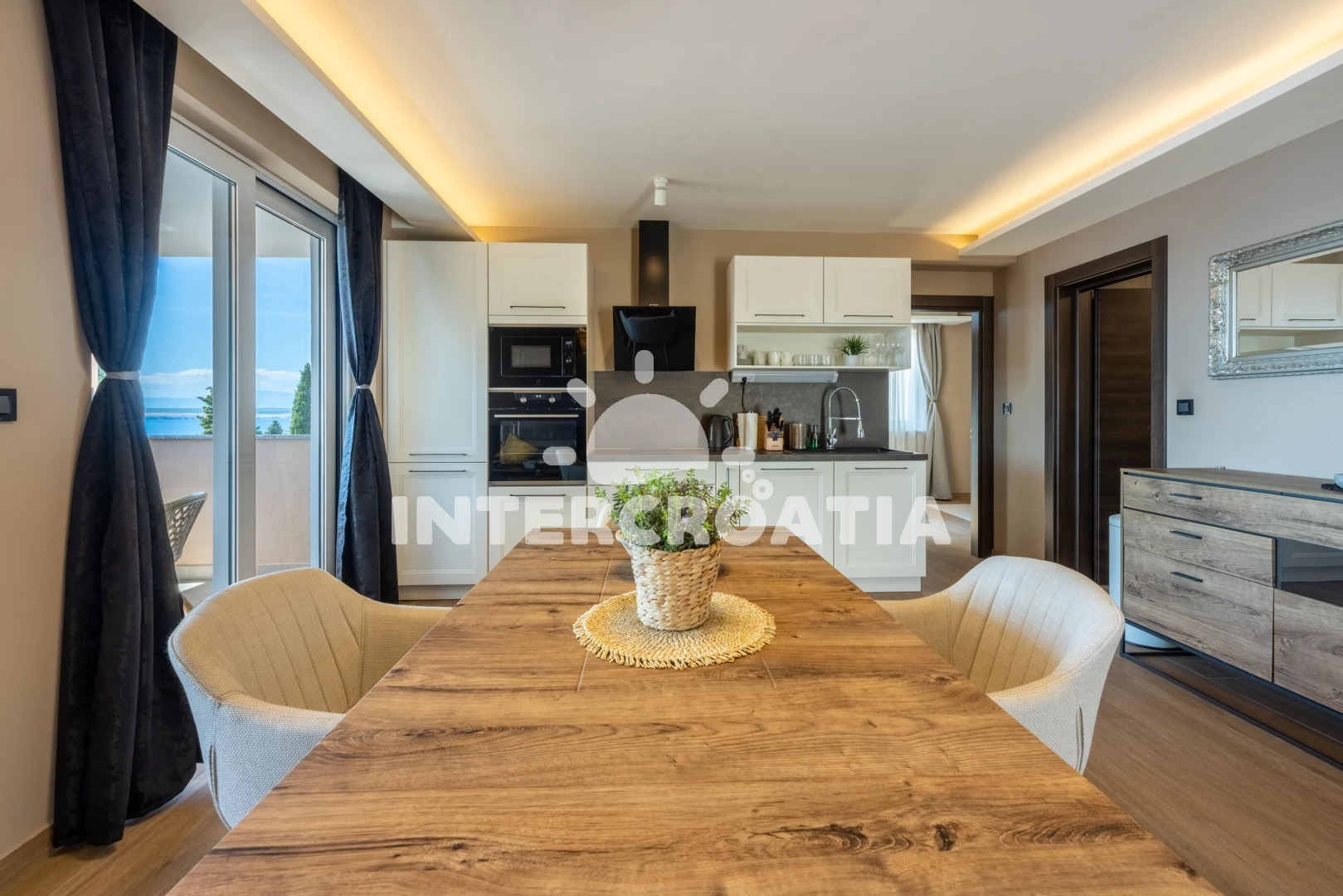Vzdálenosti: Moře 250 m, pláž 300 m (skalnatá, oblázková a betonové desky), restaurace 150 m, mini golf 150 m, bar 200 m, směnárna 300 m, supermarket 350 m, potápění 400 m, čerpací stanice 500 m, pošta 1,1 km, diskotéka 1,1 km, muzeum 1,1 km, centrum 1,1 km, banka 1,1 km, lékárna 1,1 km, půjčovna kol 1,1 km, ambulance 1,3 km, letiště (Rijeka) 20 km, trajekt (Rijeka) 37 km,
