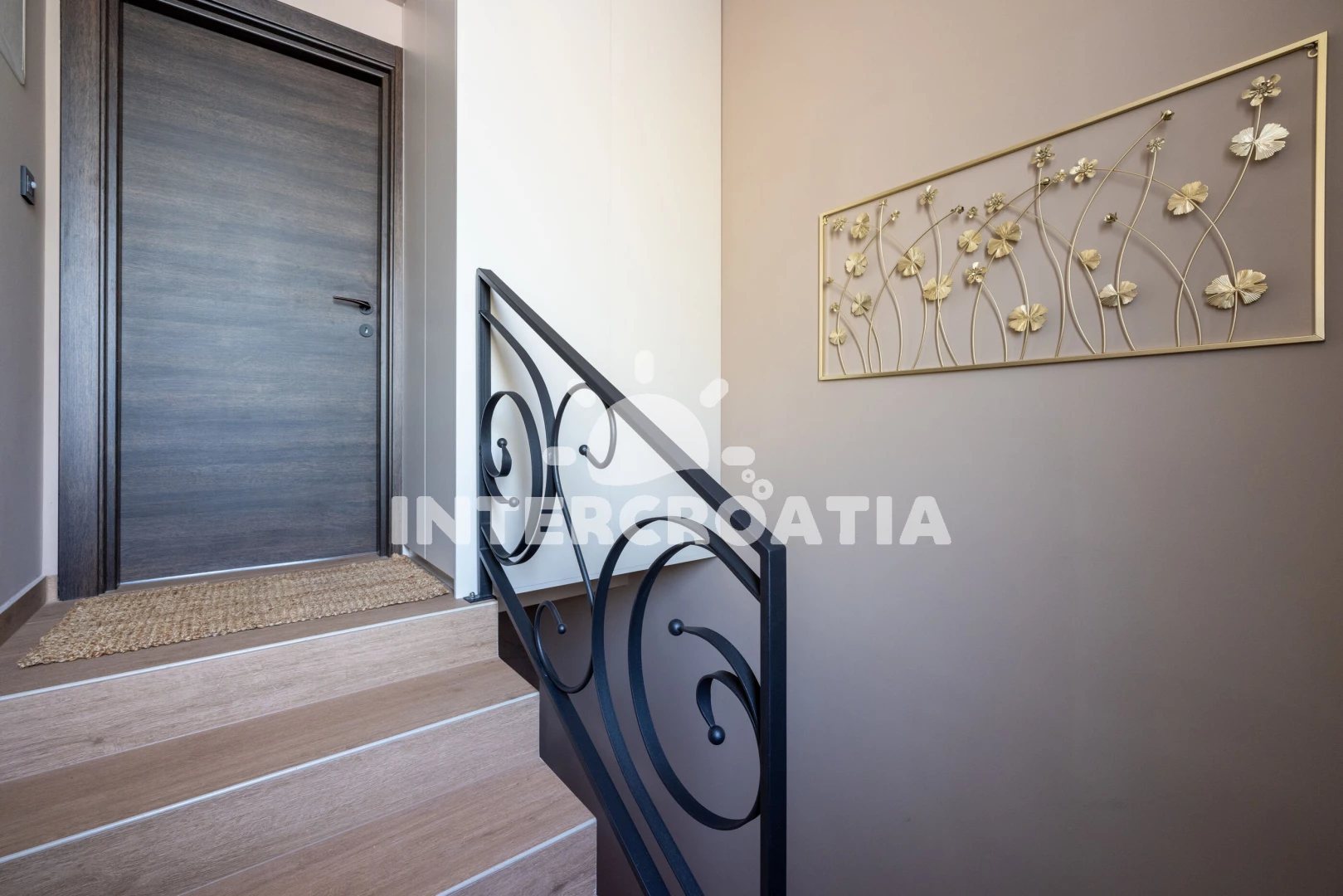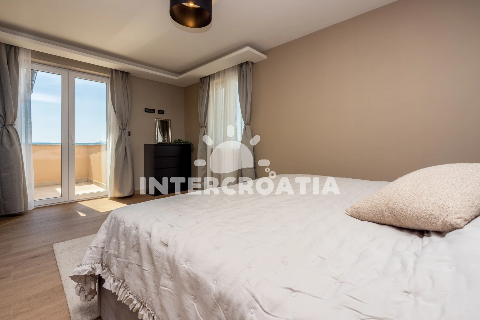 Apartmán se nachází 300 m od moře a pláže. Pláž je skalnatá, oblázková a betonové desky. Parkování je před domem.