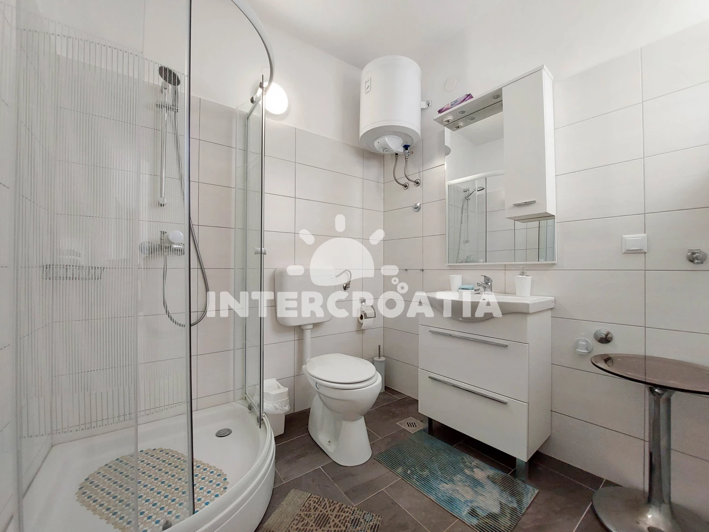 Vzdálenosti: Moře 250 m, pláž 250 m (písčitá a oblázková), bar 200 m, restaurace 200 m, supermarket 250 m, směnárna 300 m, centrum 350 m, lékárna 350 m, banka 400 m, diskotéka 400 m, pošta 450 m, muzeum 450 m, čerpací stanice 500 m, potápění 550 m, ambulance 650 m, letiště (Rijeka) 25 km,