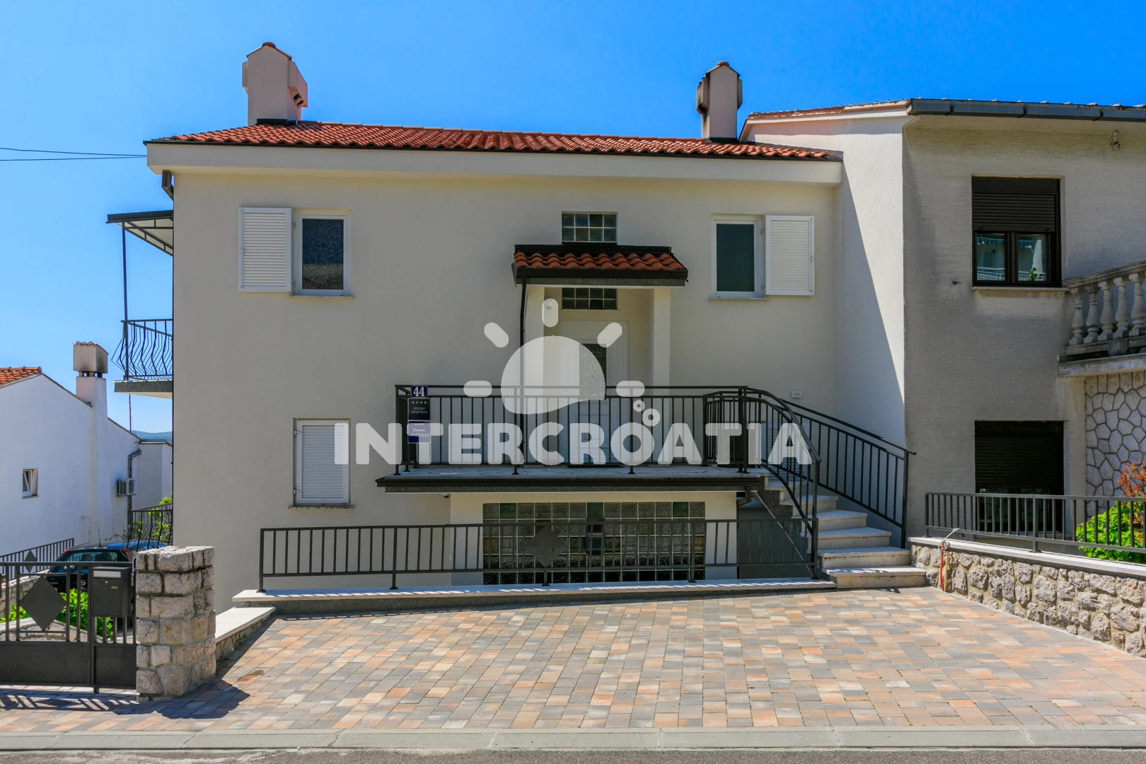 Vzdálenosti: kotviště pro čluny 0 m, Moře 400 m, pláž 650 m (oblázky), čerpací stanice 200 m, půjčovna motorových člunů 300 m, potápění 300 m, diskotéka 300 m, muzeum 300 m, restaurace 300 m, bar 300 m, pošta 300 m, banka 300 m, směnárna 300 m, ambulance 300 m, lékárna 300 m, veřejná doprava 300 m, půjčovna kol 500 m, supermarket 500 m, centrum 600 m, tenisové kurty 1,5 km, letiště (Rijeka) 25 km, trajekt (Rijeka) 35 km,