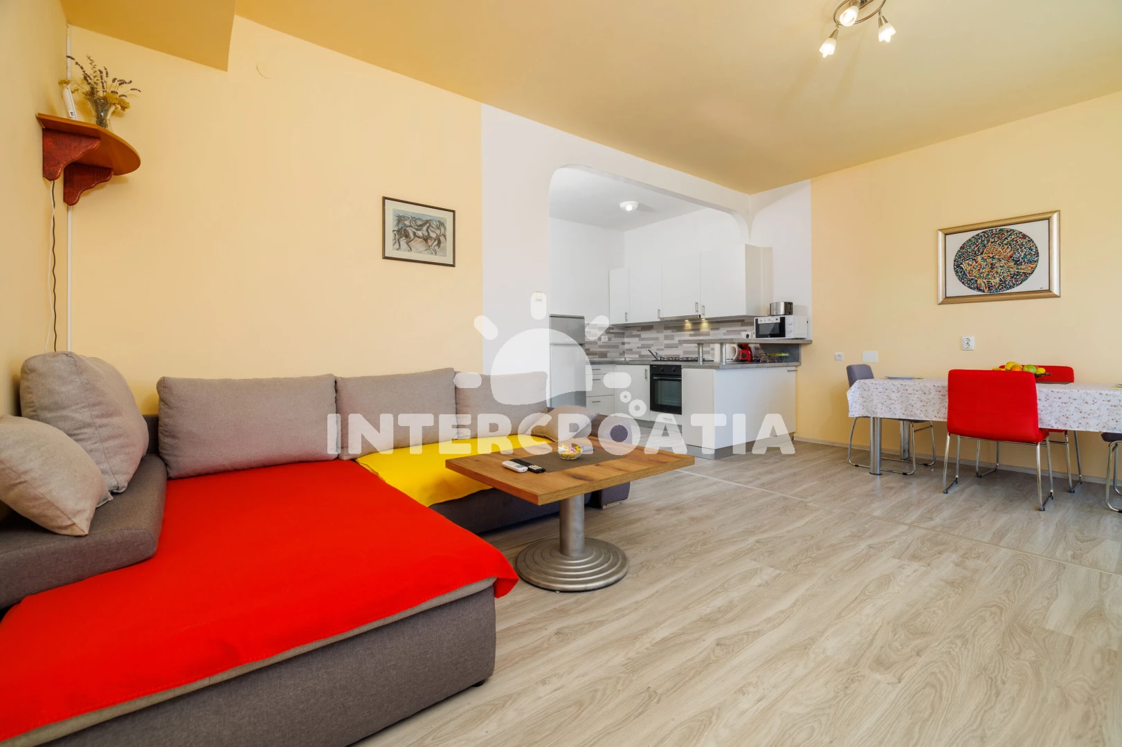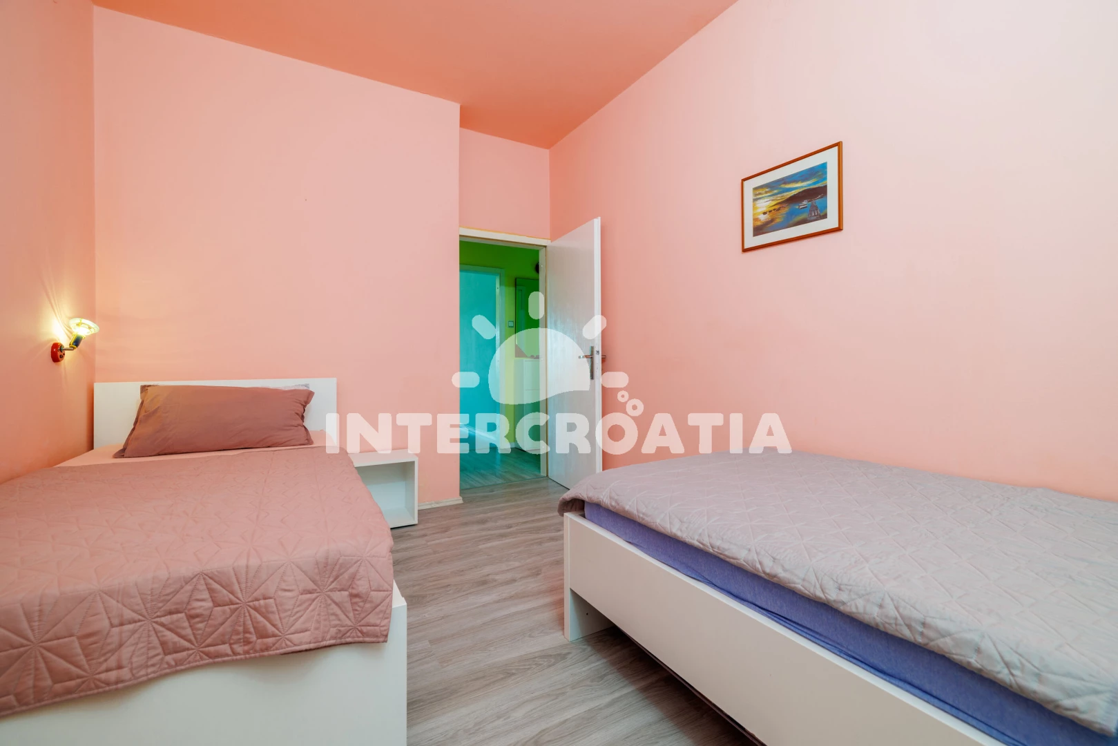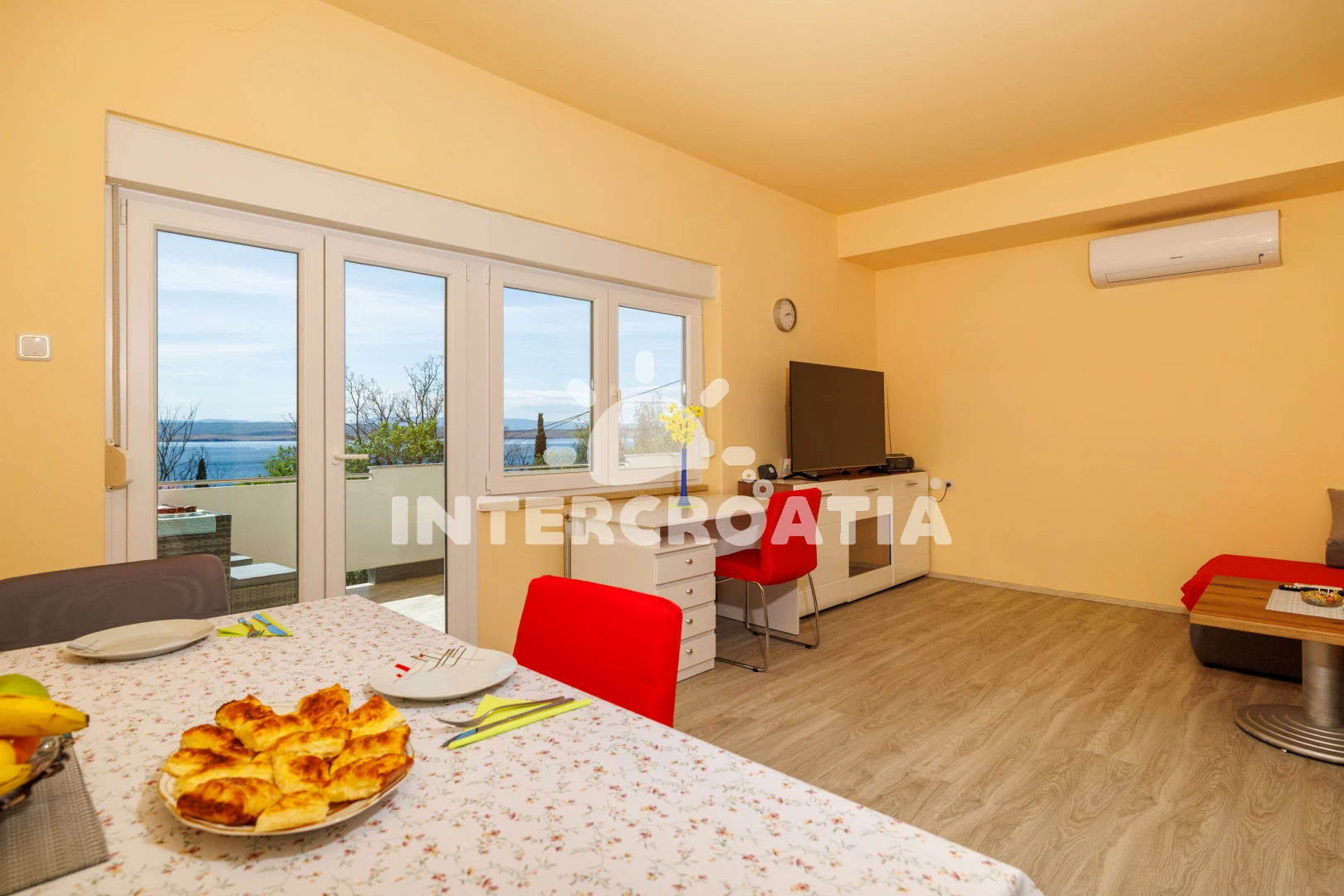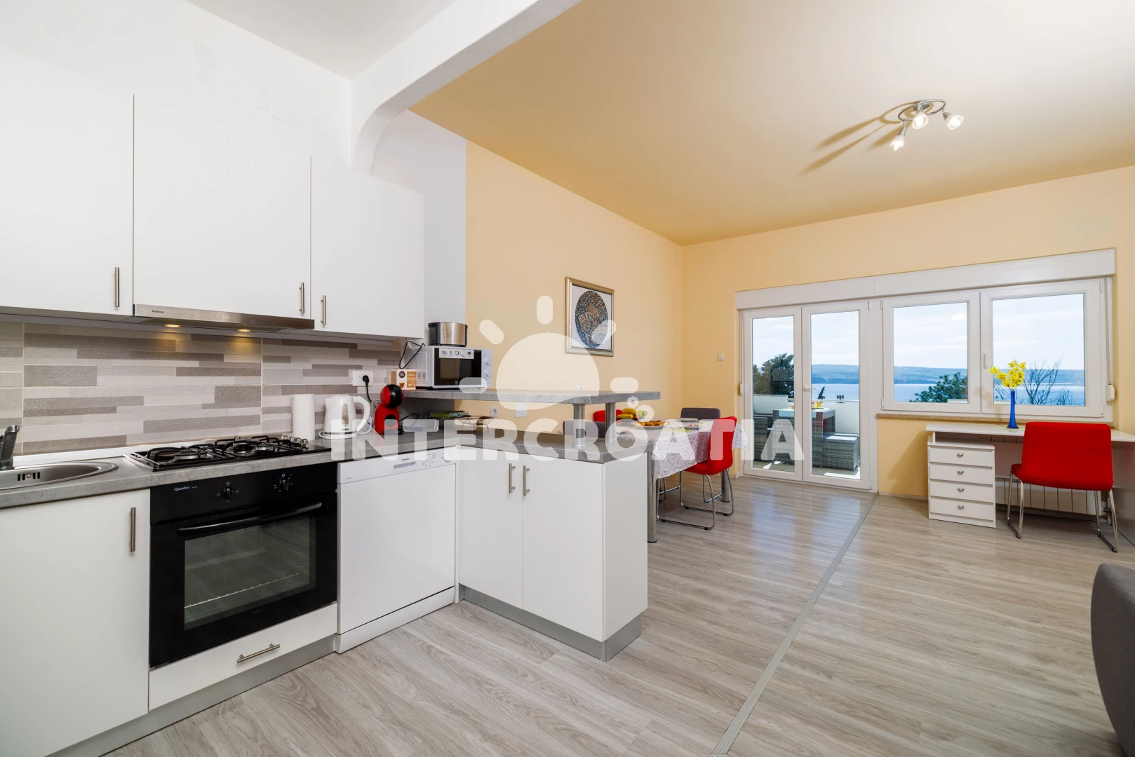 Apartmán se nachází 200 m od moře a pláže. Pláž je skalnatá, oblázková, větší kamení a betonové desky.