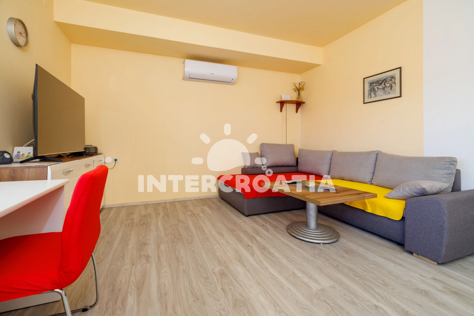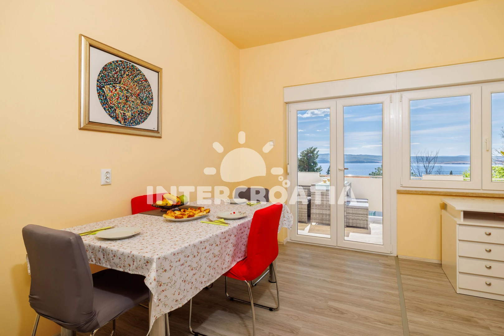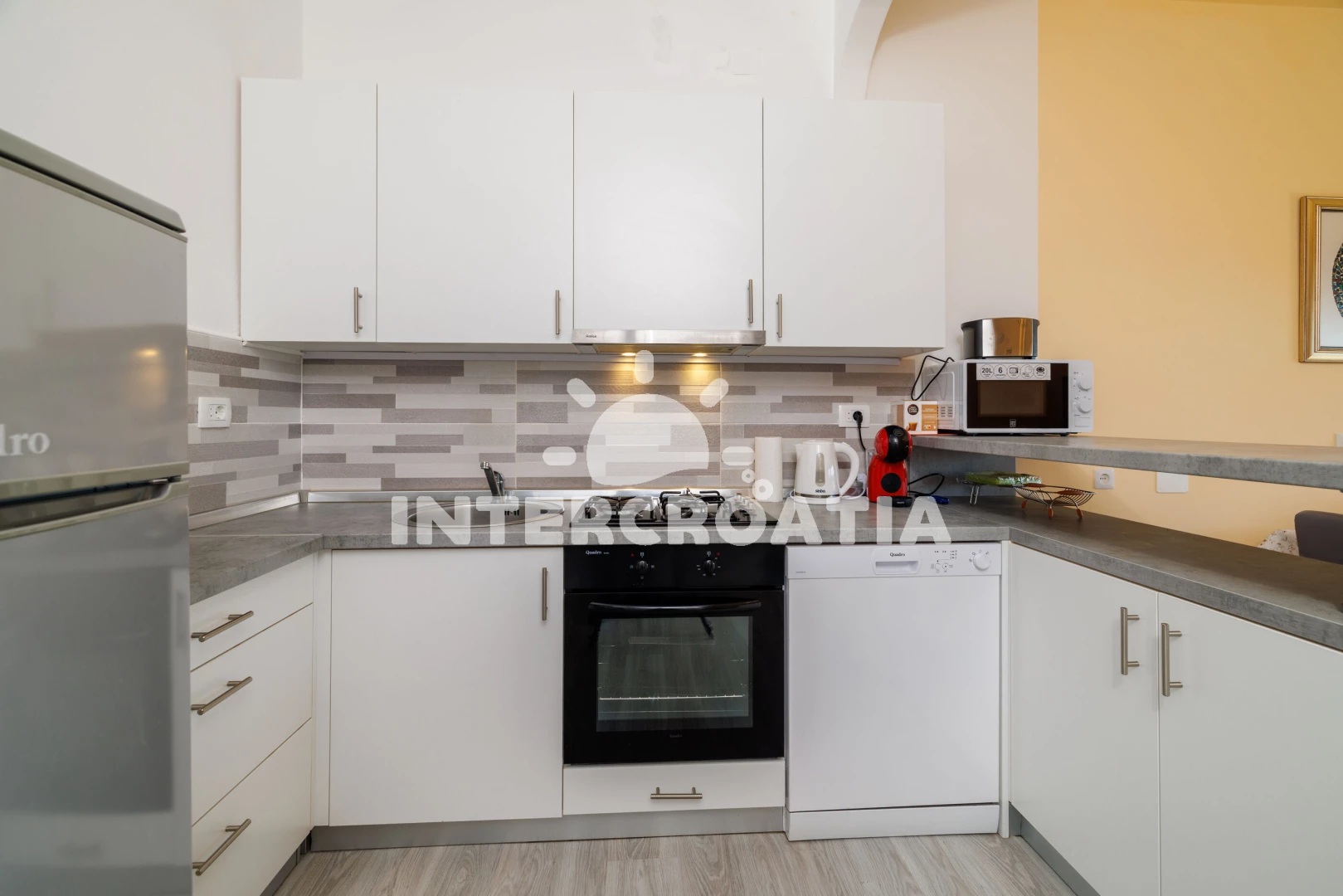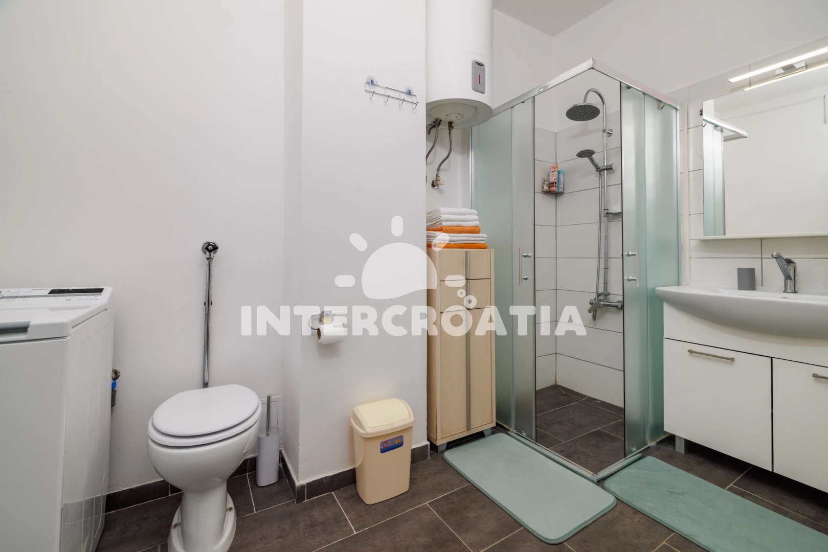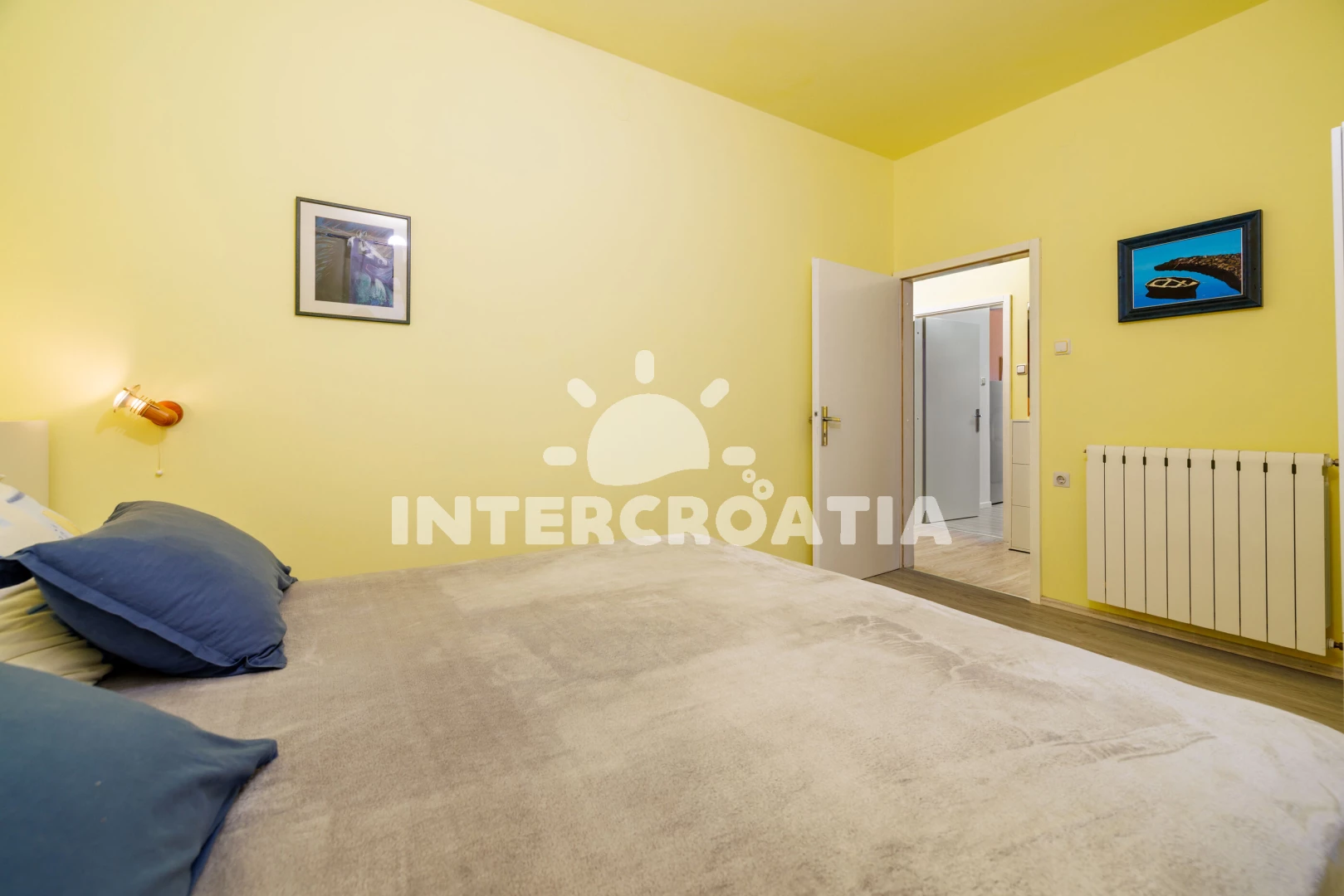 Apartmán se nachází 200 m od moře a pláže. Pláž je skalnatá, oblázková, větší kamení a betonové desky.