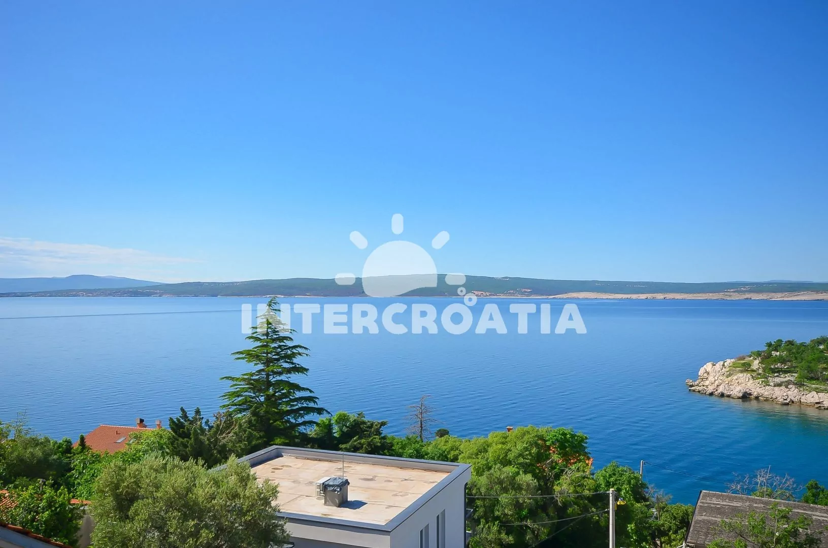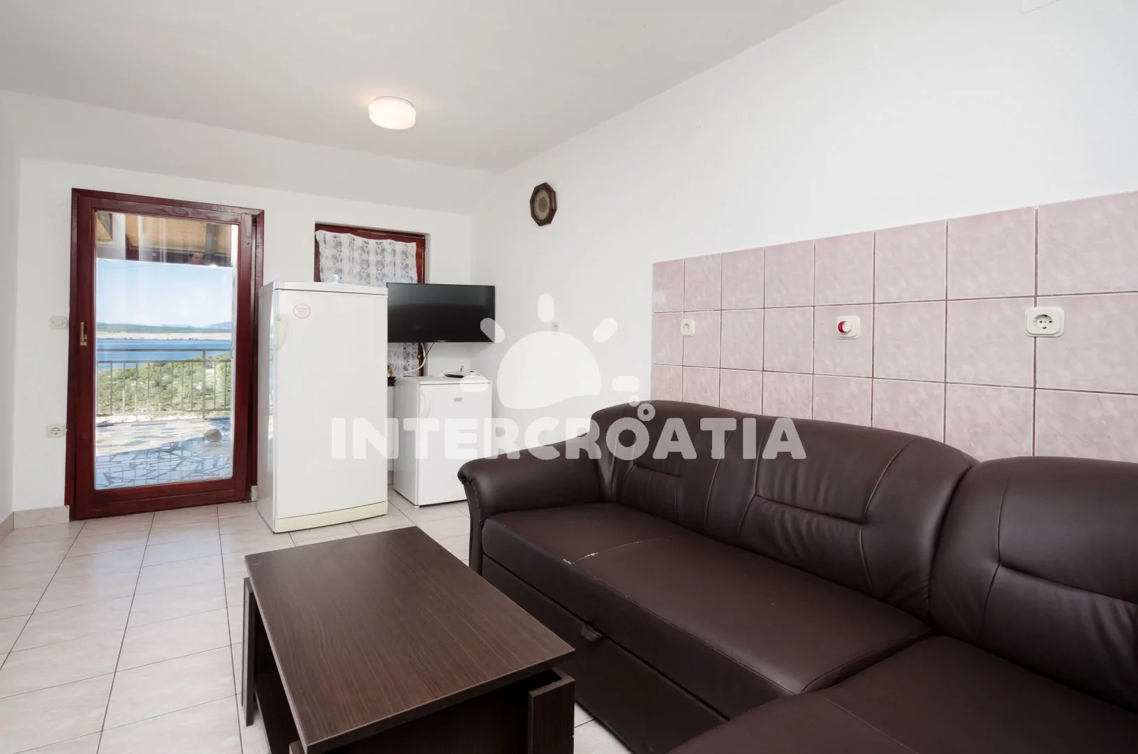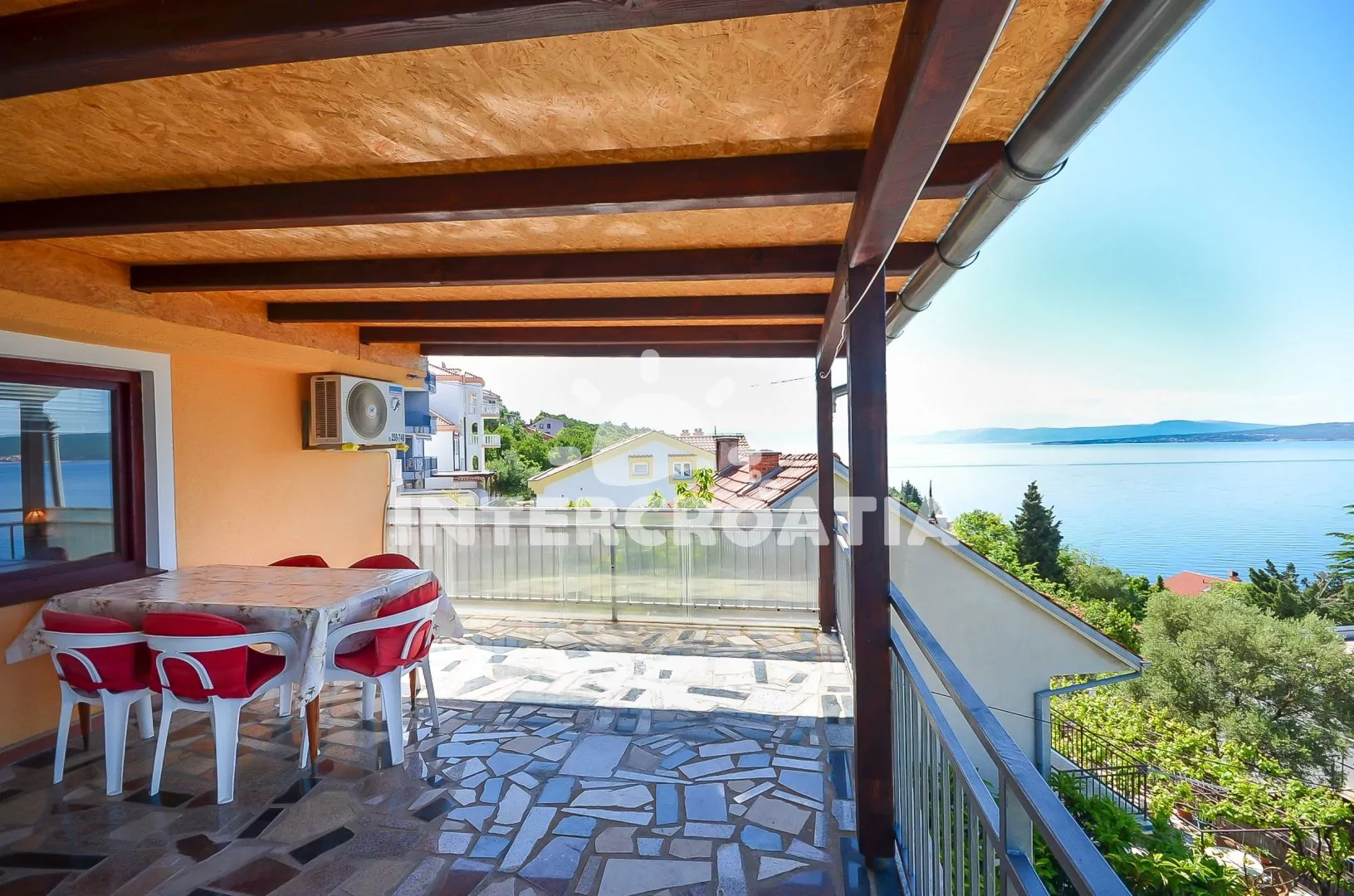 Dvoupatrový apartmánový dům s terasou, krásným výhledem na moře a dobrou dostupností na pláž.