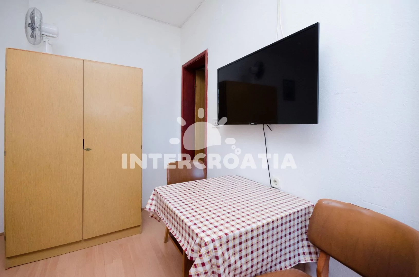Studiový apartmán s terasou s posezením, nacházející se v přízemí. Vstup, kuchyně spojená s obývacím pokojem. Obývací pokoj s jídelním stolem pro 2 osoby, dvoulůžkem, jedním jednolůžkem a LCD…