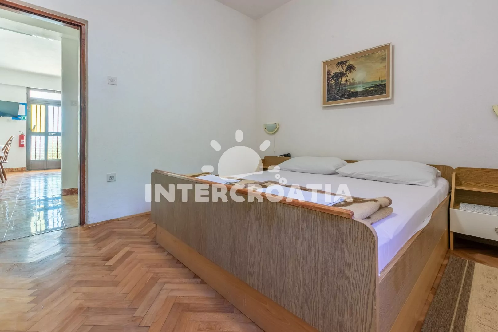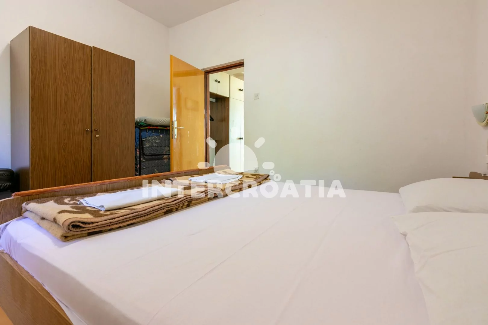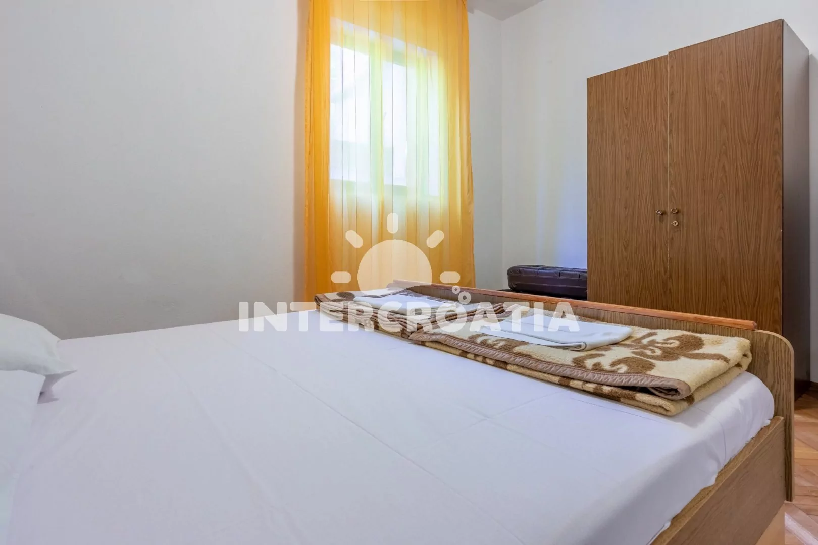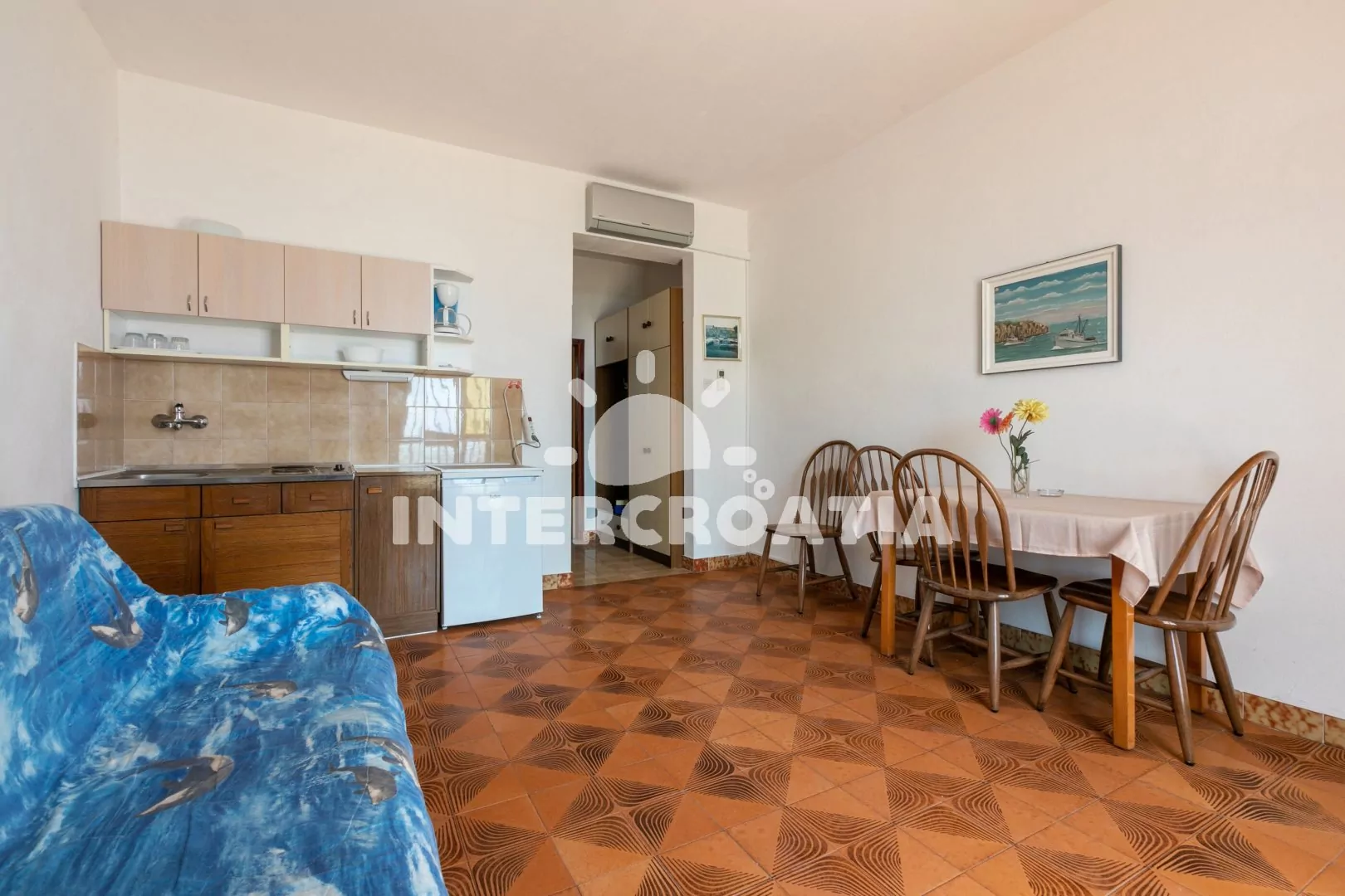 Apartmán (36 m2) s výhledem na moře a terasou s posezením se nachází v přízemí vily a je vhodný pro 2 až 4 osoby. Obývací pokoj je spojený s kuchyní. Kuchyňská linka je vybavena dvouplotýnkovým vařičem, kávovarem, nádobím a lednicí s mrazákem. Obývací pokoj s jídelním stolem pro 4 osoby, pohovkou (rozložitelná na extra lůžko pro 2 osoby), televizí se satelitním programem, klimatizací a vstupem na terasu. Ložnice je vybavena jedním dvoulůžkem. Koupelna se sprchovým koutem, umyvadlem a wc. Hostům je k dispozici parkování u objektu zdarma.