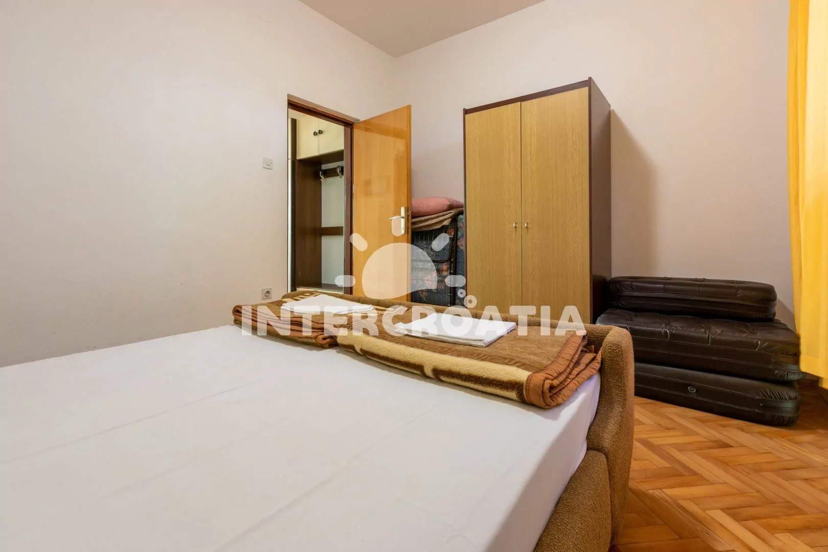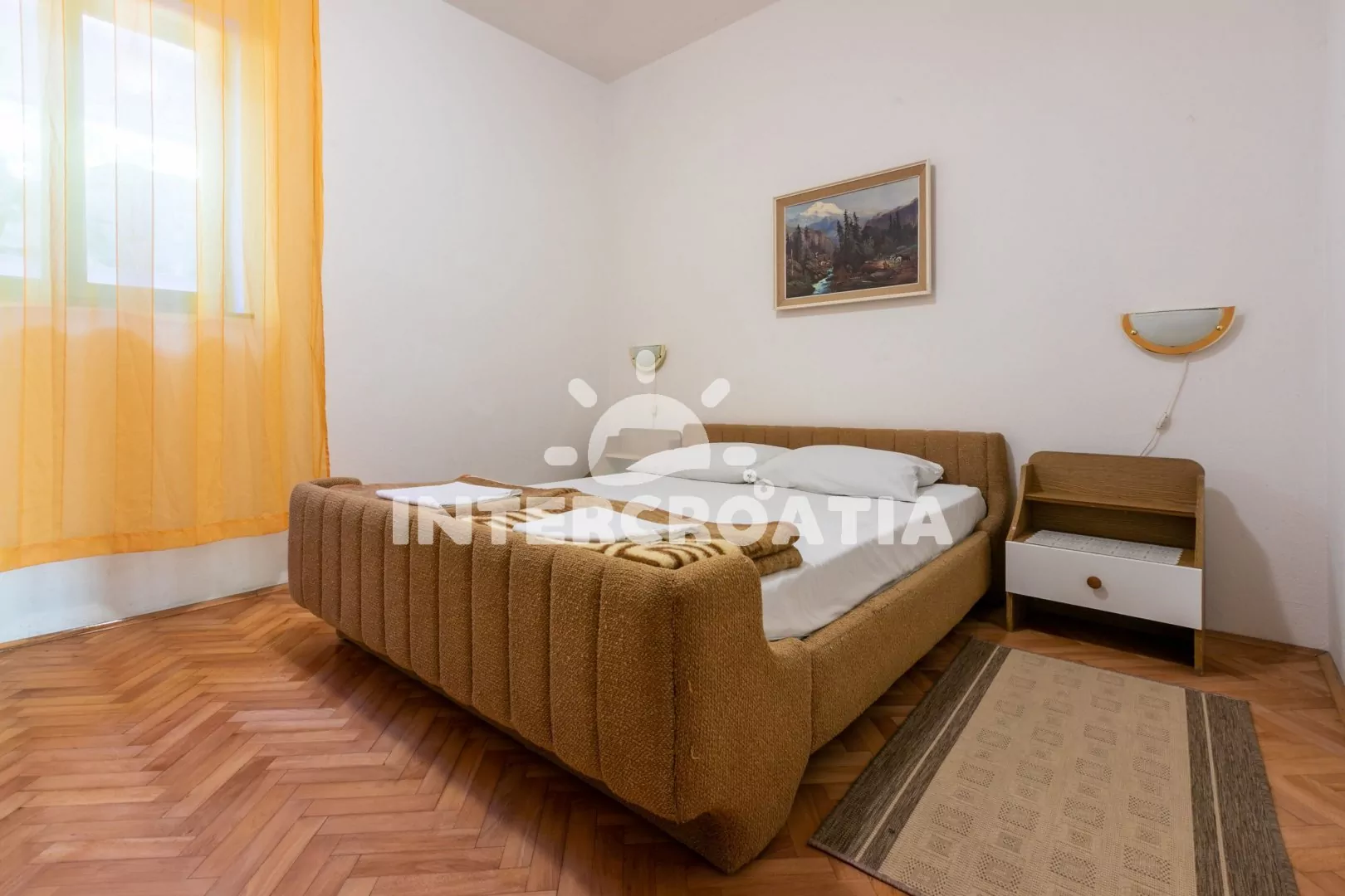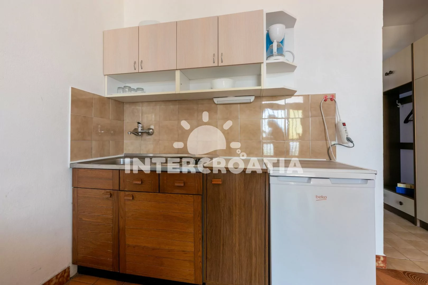 Apartmán (36 m2) s výhledem na moře a terasou s posezením se nachází v přízemí domu a je vhodný pro 2 až 4 osoby. Obývací pokoj je spojený s kuchyní. Kuchyňská linka je vybavena dvouplotýnkovým vařičem, kávovarem, nádobím a lednicí s mrazákem. Obývací pokoj s jídelním stolem, pohovkou (rozložitelná na extra lůžko pro 2 osoby), televizí se satelitním programem, klimatizací a vstupem na terasu. Ložnice s jedním dvoulůžkem. Koupelna se sprchovým koutem, umyvadlem a wc. Hostům je k dispozici parkování u objektu zdarma.