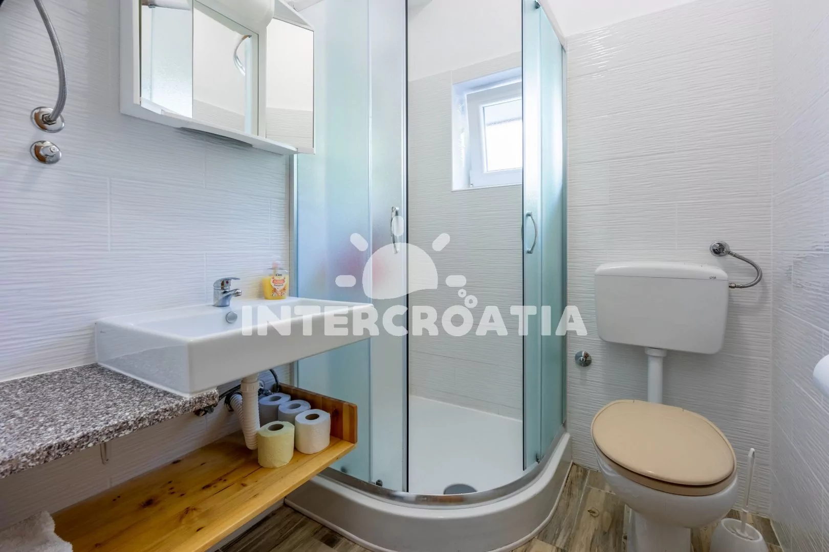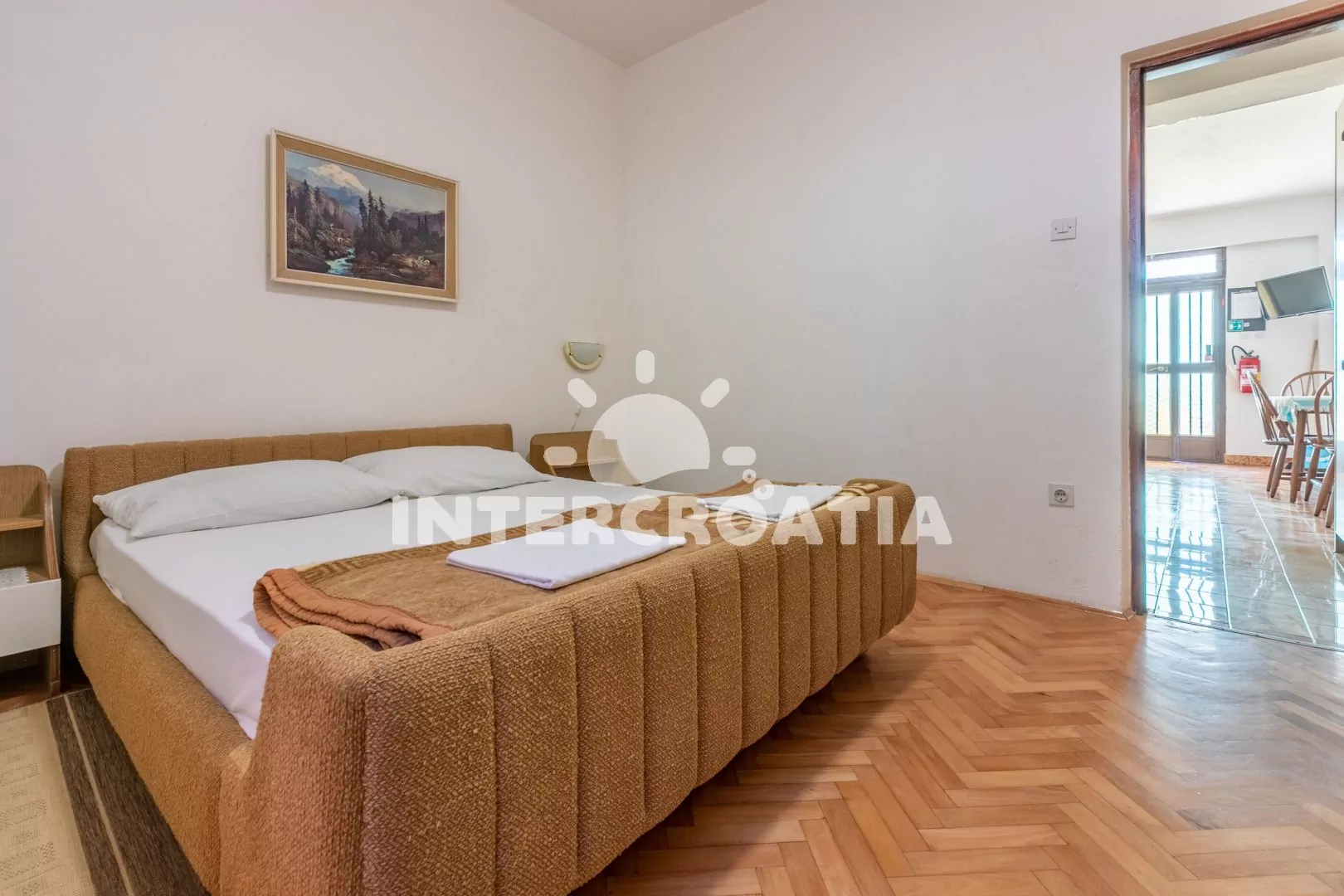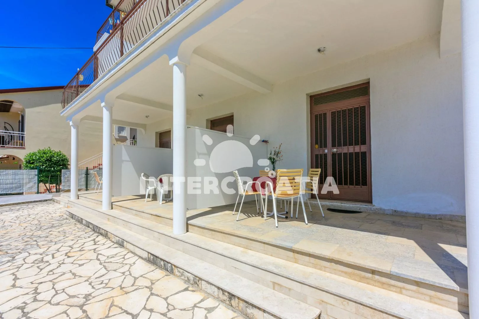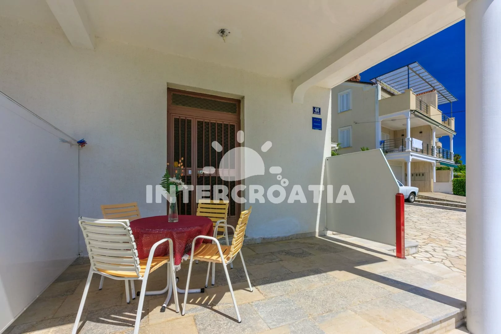 Apartmánový dům s výhledem na moře, terasami a venkovním posezením. Dům se nachází v dobré dostupnosti betonové pláže a malé oblázkové pláže (300 m) a 1 km od velké oblázkovo - písčité pláže. Vlastní pozemek s parkovacími místy u objektu.