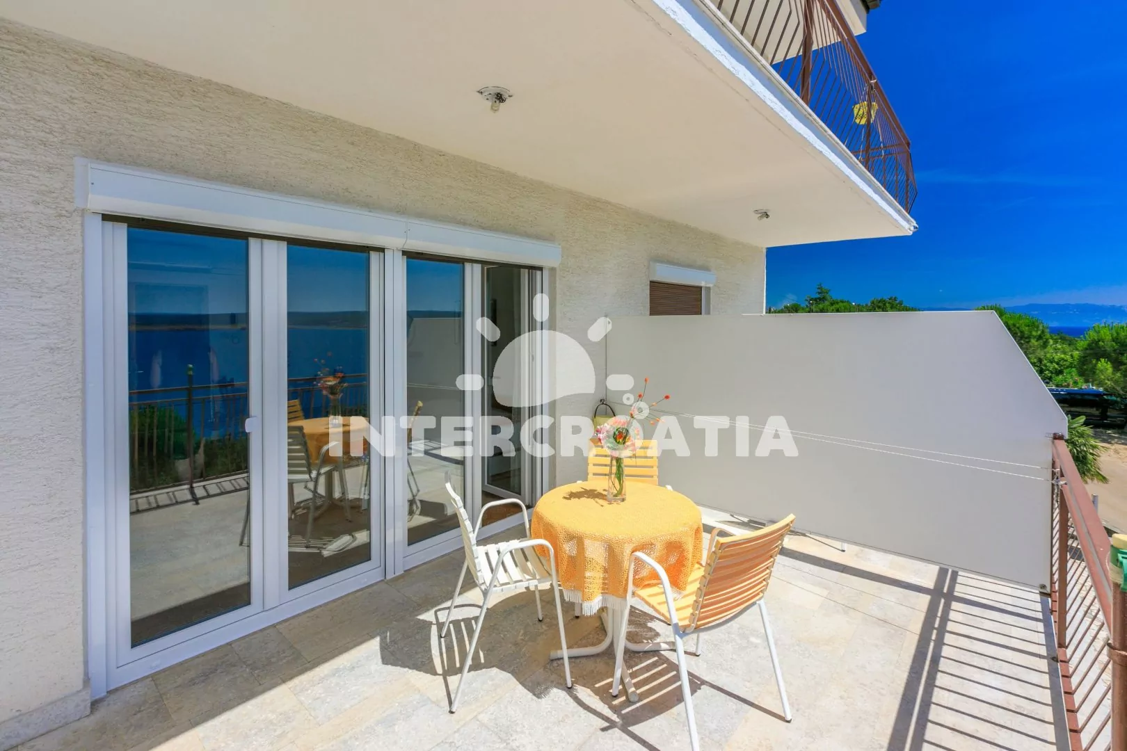 Apartmánový dům s výhledem na moře, lodžiemi a venkovním posezením. Dům se nachází v dobré dostupnosti betonové pláže a malé oblázkové pláže (300 m) a 1 km od velké oblázkovo - písčité pláže. Vlastní pozemek s parkovacími místy u objektu.