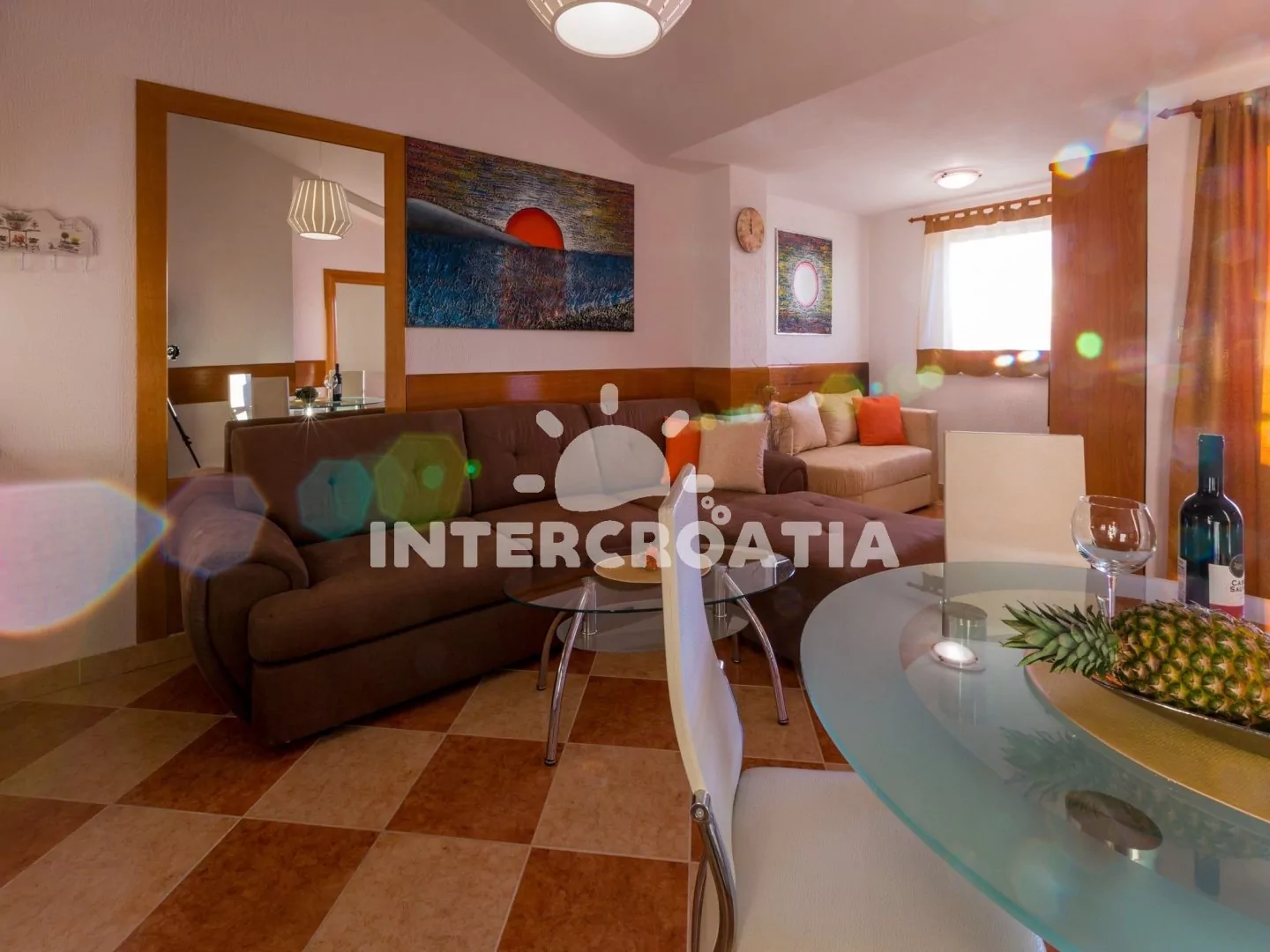Apartmán (45 m2) s balkonem a výhledem na moře, se nachází v třetím patře a je vhodný pro až 4 osoby. Obývací pokoj je spojený s kuchyní. Kuchyňská linka je vybavena sklokeramickou varnou deskou,…