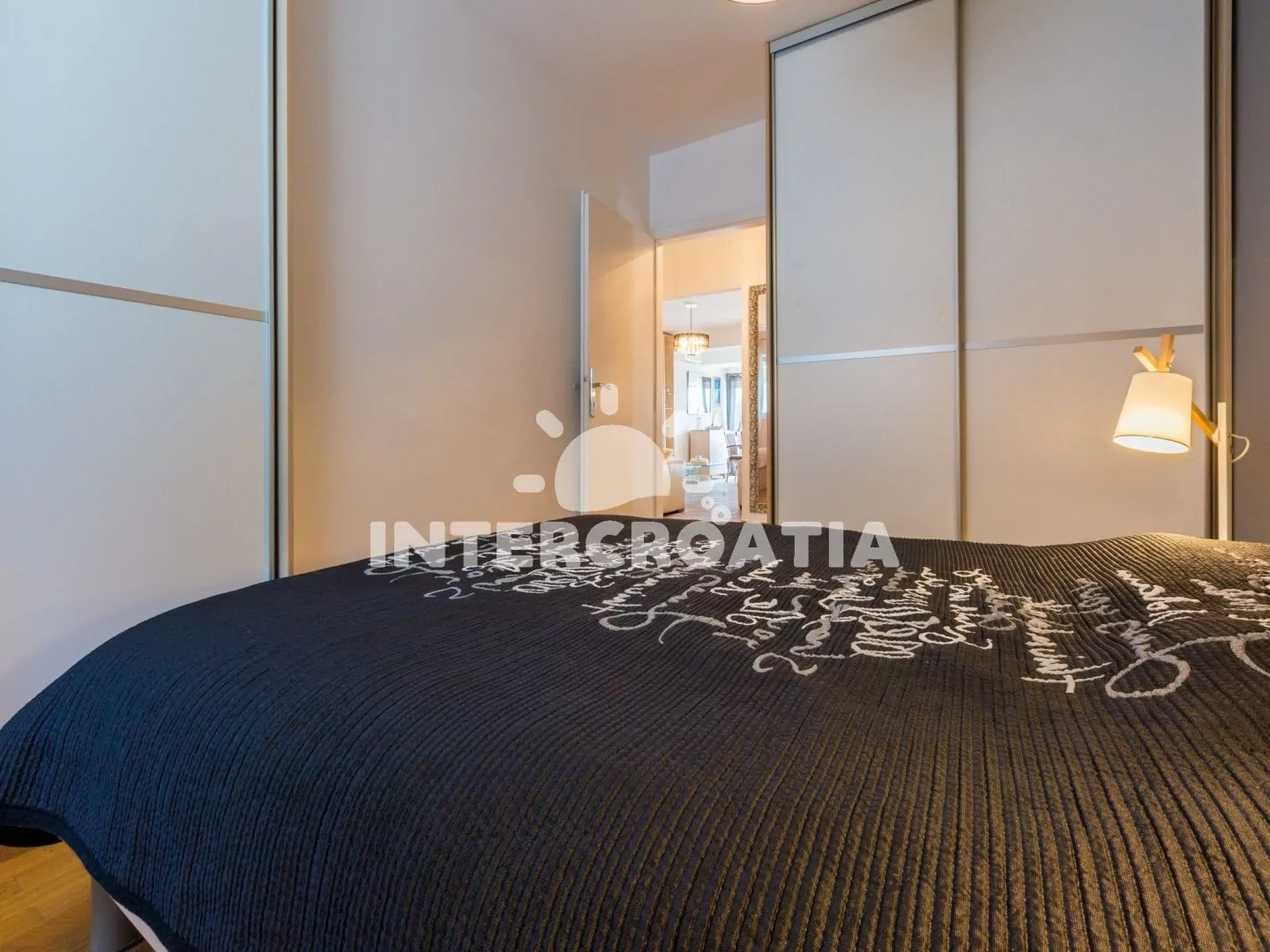 Apartmán (85 m2) s výhledem na moře se nachází v 1. patře a je vhodný pro 4 až 6 osob. Obývací pokoj je spojený s kuchyní. Kuchyňská linka je vybavena sklokeramickou varnou deskou, digestoří, vestavěnou troubou, myčkou na nádobí, mikrovlnnou troubou, rychlovarnou konvicí, kávovarem, toustovačem, nádobím a lednicí s mrazákem. Obývací pokoj s jídelním stolem pro 6 osob, sedací soupravou, pohovkou (rozložitelná na extra lůžko pro 2 osoby), televizí se satelitním programem a klimatizací. První i druhá ložnice je vybavena vždy s jedním dvoulůžkem. Koupelna se sprchovým koutem, umyvadlem a wc. Hostům je k dispozici parkování u objektu zdarma.