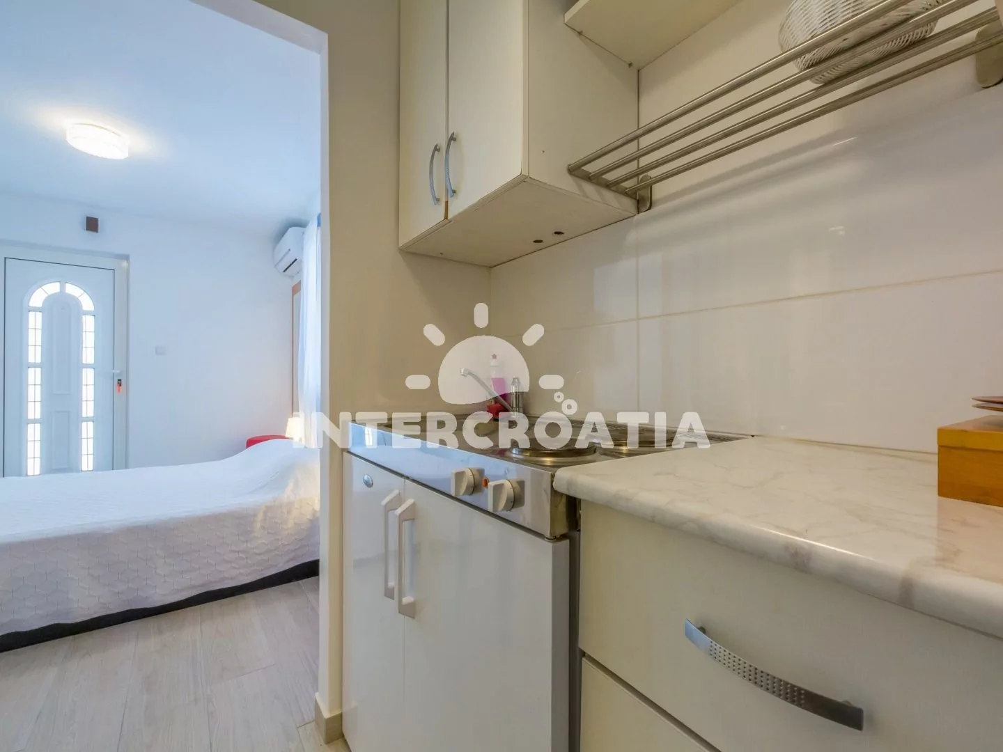 Apartmán typu studio s vlastní terasou je vhodný pro 2 osoby, nachází se v přízemí domu. Obývací místnost je spojena s kuchyní. Kuchyňská linka je vybavena dvouplotýnkovým vařičem, mikrovlnnou…