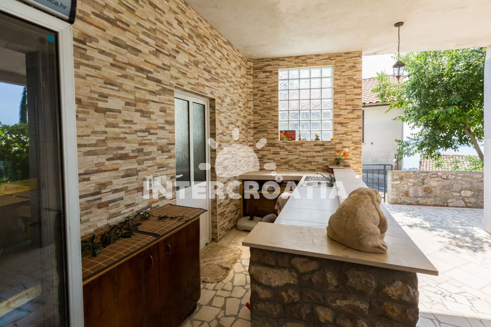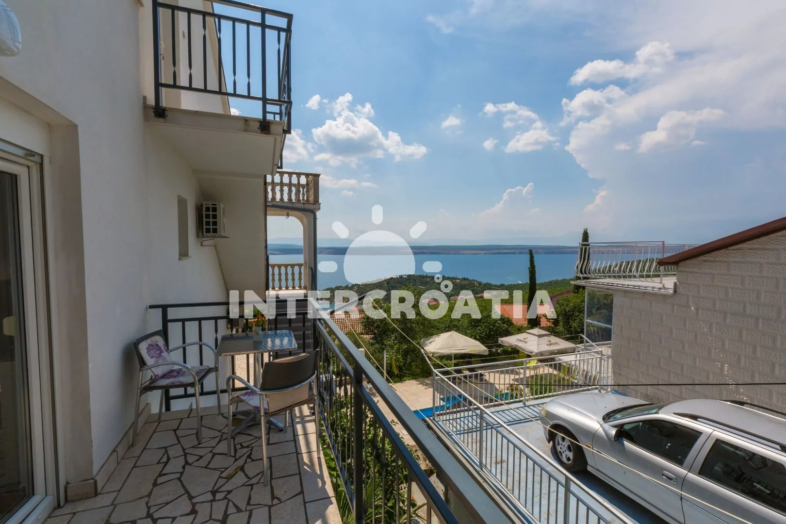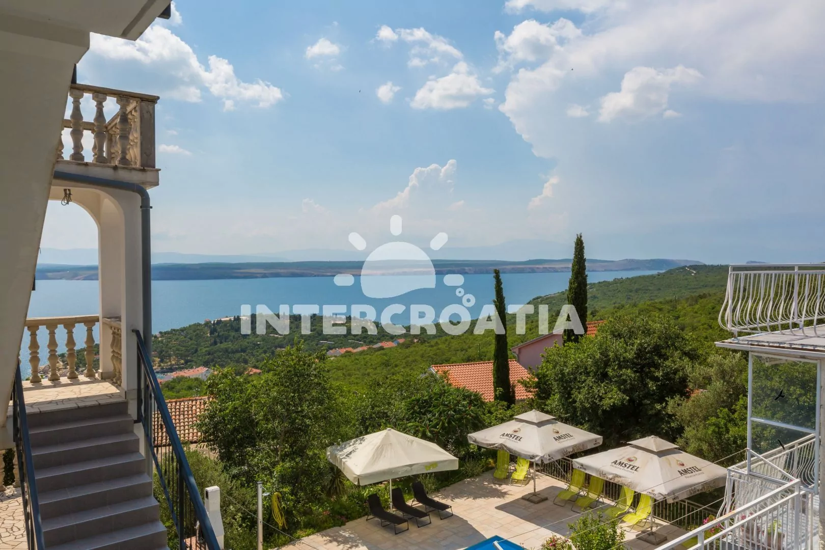 Apartmánová vilka s terasami, lodžiemi a výhledem na moře. K dispozici venkovní bazén s lehátky a slunečníky. Velká společenská terasa s možností venkovního posezení a grilování. Parkovací místa u domu. Cesta k moři 700 m (cesta se schody), hlavní cesta 1,5 km (bez schodů), cesta autem 2 km.