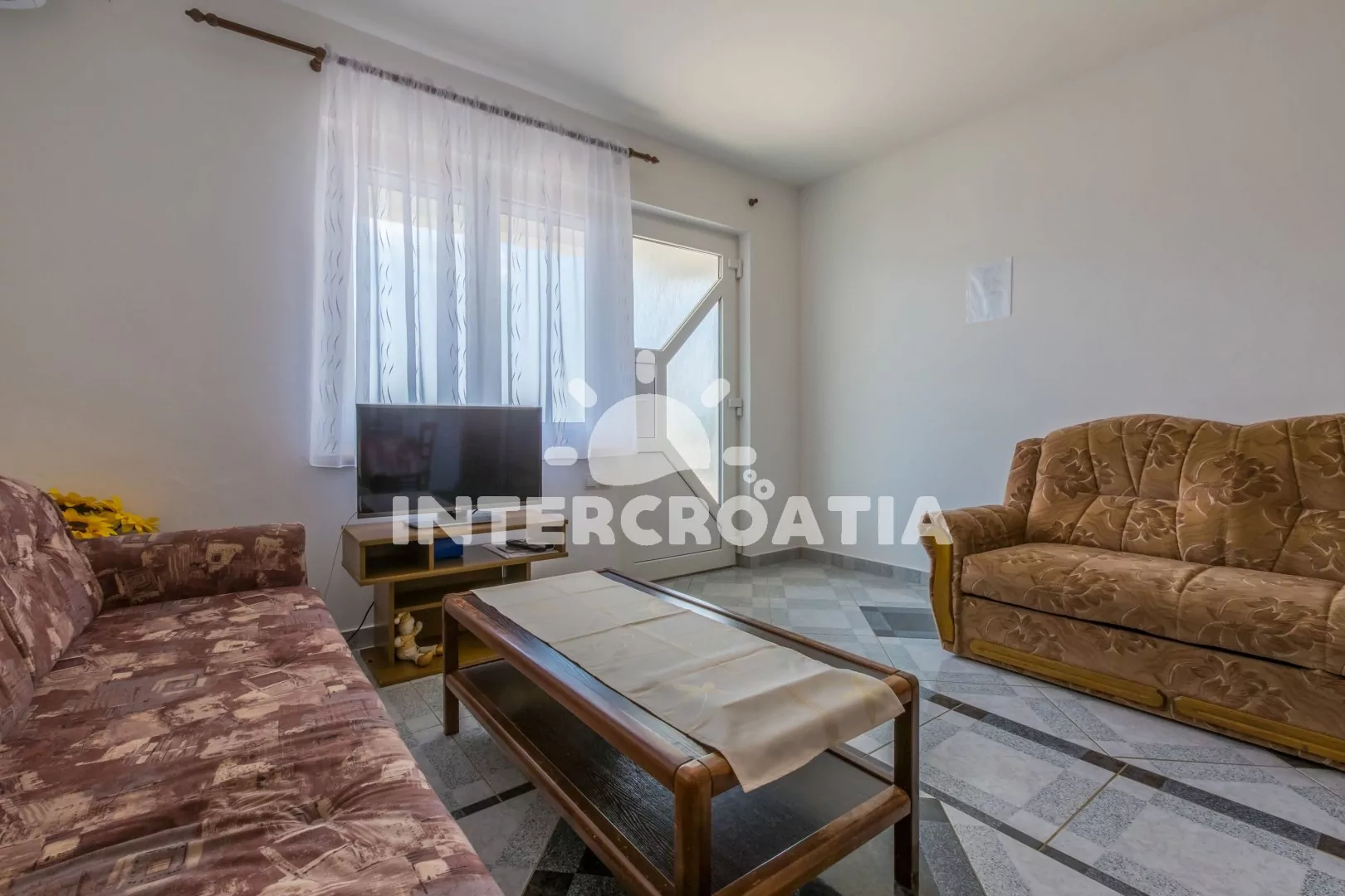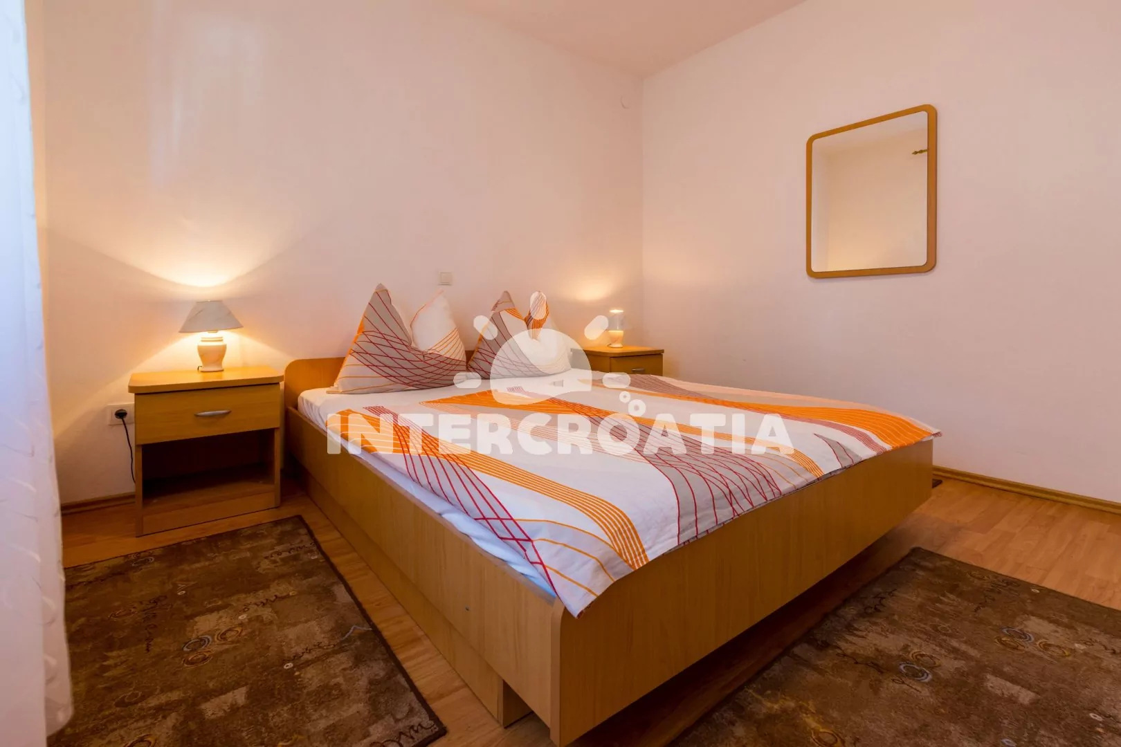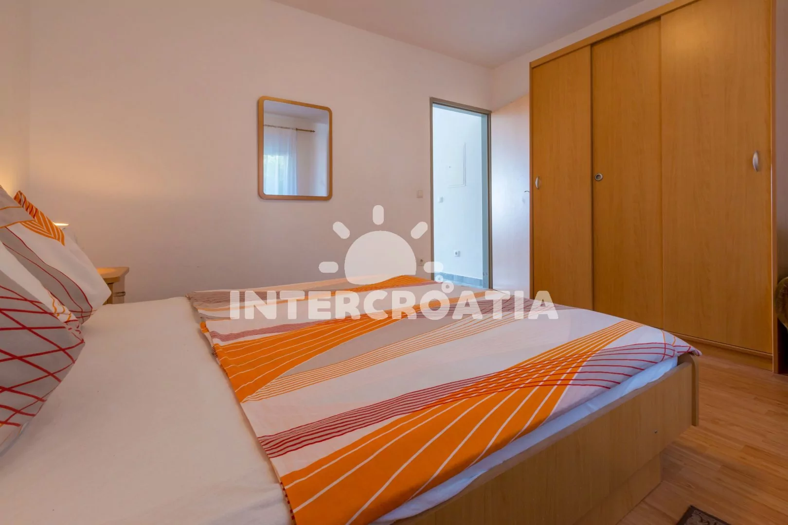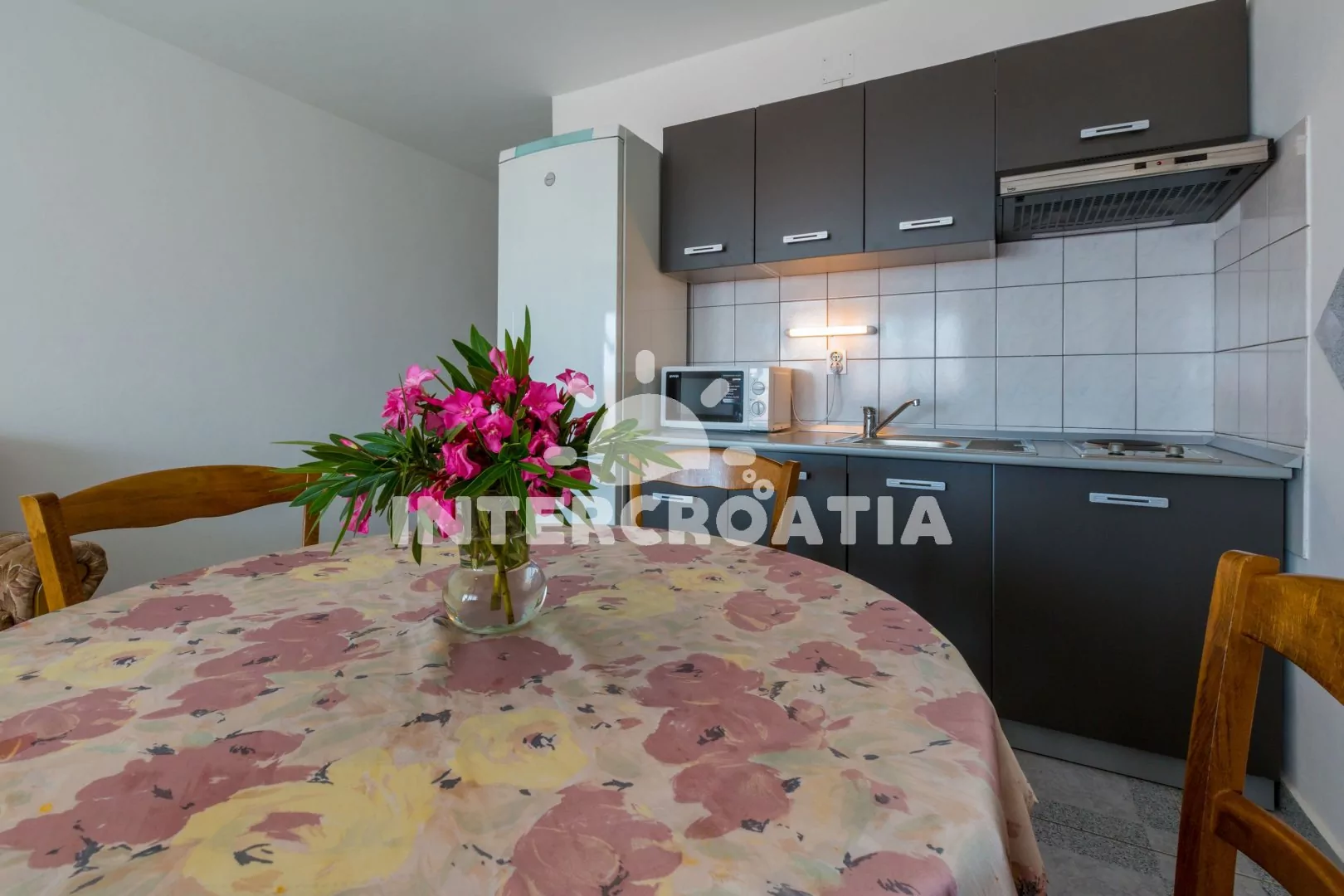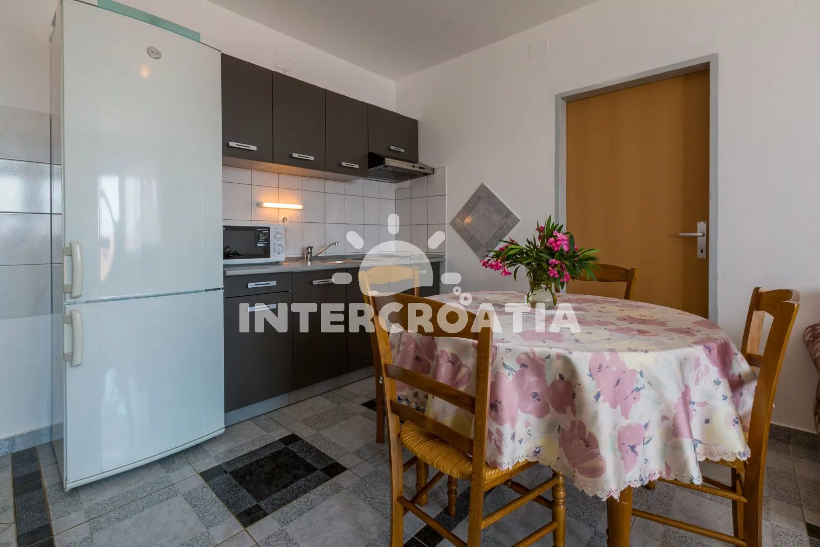 Komfortně zařízený apartmán s terasou a výhledem na moře se nachází v přízemí domu a je vhodný pro až 4 osoby. Obývací místnost je spojena s kuchyní. Kuchyňská linka je vybavena dvouplotýnkovým vařičem, digestoří, mikrovlnnou troubou, kávovarem, nádobím a lednicí s mrazákem. Obývací místnost s jídelním stolem pro 4 osoby, pohovkami (rozložitelná na extra lůžko pro 2 osoby), televizí se satelitním programem, radiem, klimatizací a vstupem na terasu. Ložnice s jedním dvoulůžkem. Koupelna se sprchovým koutem, umyvadlem a wc. Hostům je k dispozici parkování u objektu zdarma.