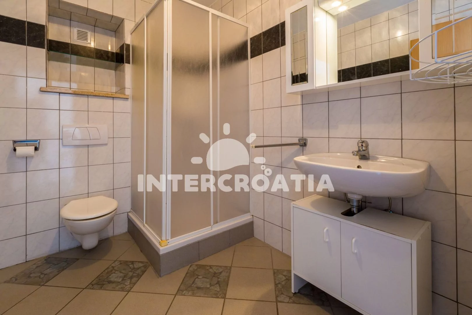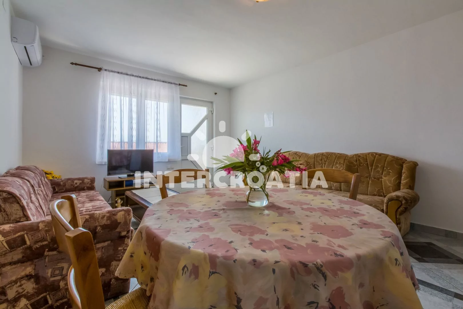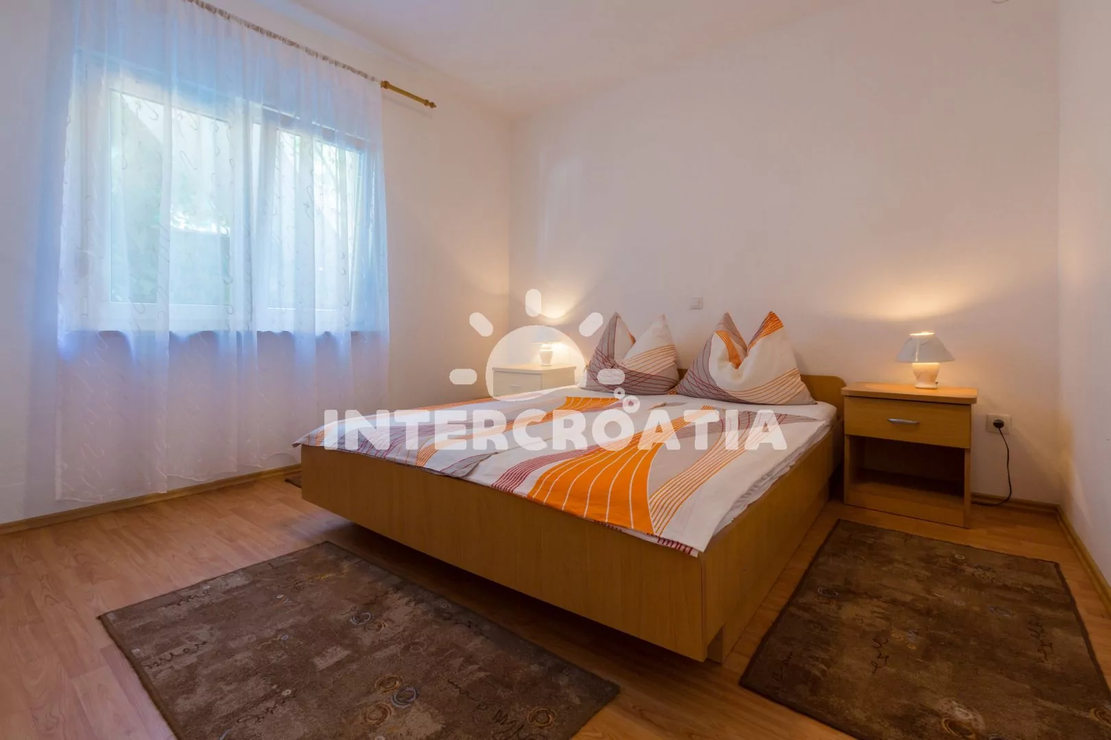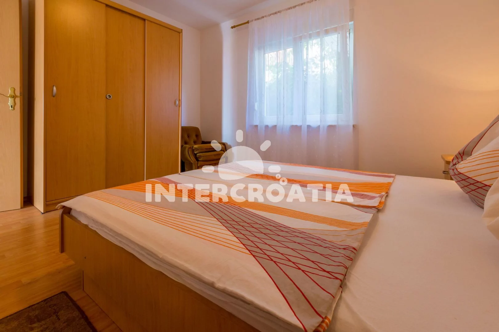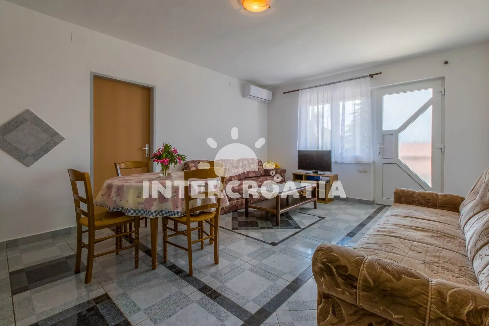 Komfortně zařízený apartmán s terasou a výhledem na moře se nachází v přízemí domu a je vhodný pro až 4 osoby. Obývací místnost je spojena s kuchyní. Kuchyňská linka je vybavena dvouplotýnkovým vařičem, digestoří, mikrovlnnou troubou, kávovarem, nádobím a lednicí s mrazákem. Obývací místnost s jídelním stolem pro 4 osoby, pohovkami (rozložitelná na extra lůžko pro 2 osoby), televizí se satelitním programem, radiem, klimatizací a vstupem na terasu. Ložnice s jedním dvoulůžkem. Koupelna se sprchovým koutem, umyvadlem a wc. Hostům je k dispozici parkování u objektu zdarma.