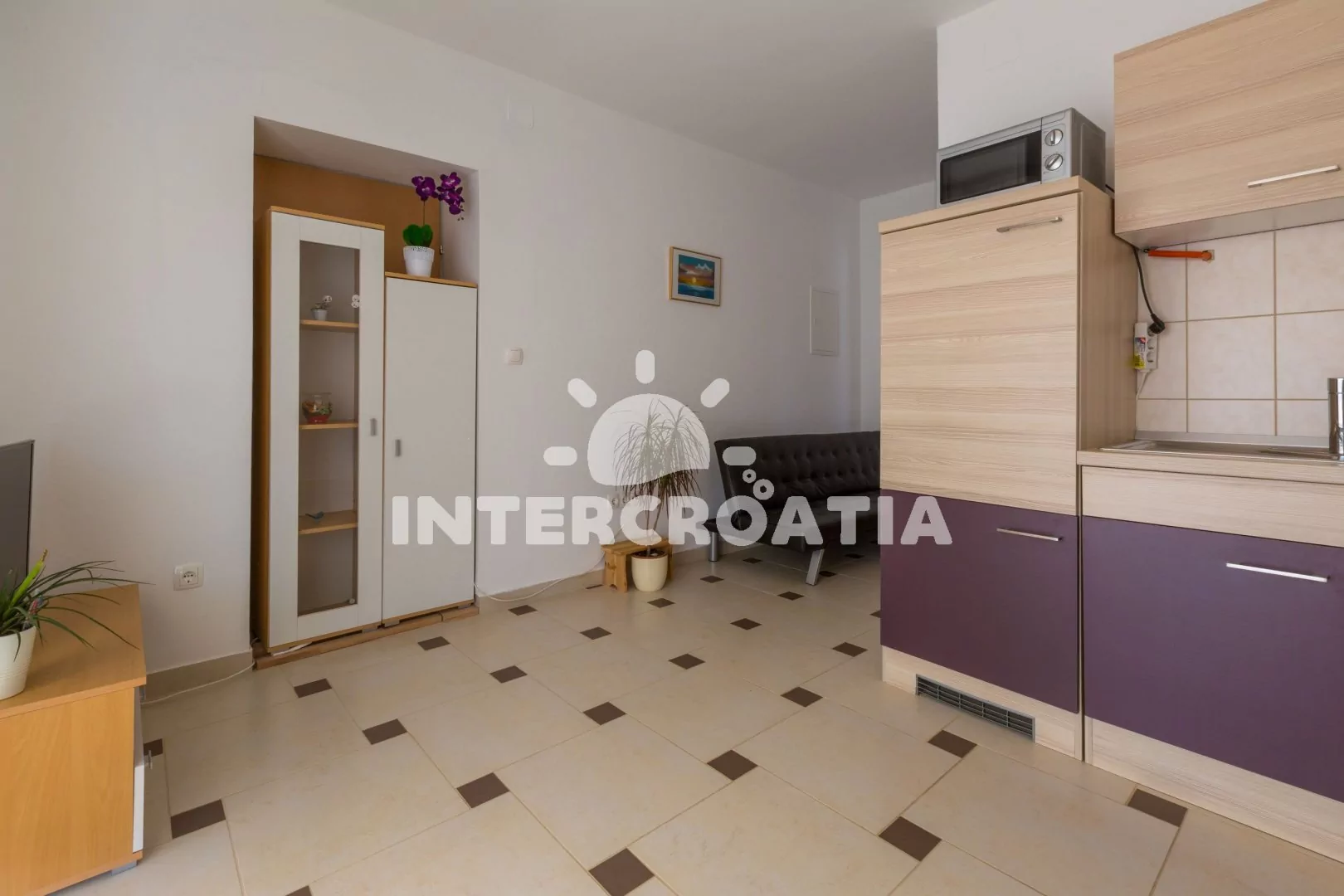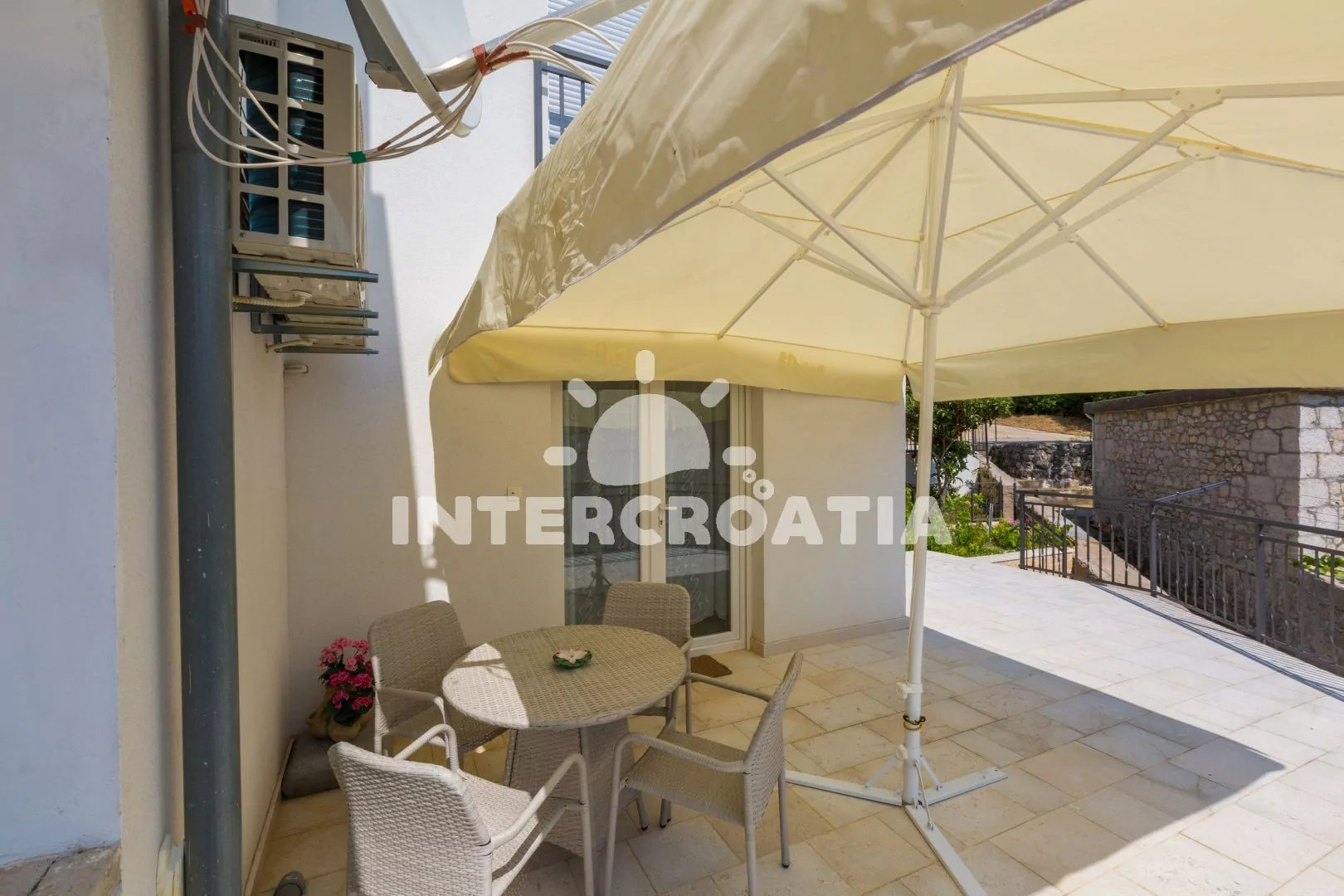 Moderně zařízený apartmán s terasou a výhledem na moře se nachází v přízemí a je vhodný pro 2 až 3 osoby. Obývací pokoj je spojený s kuchyní. Kuchyňská linka je vybavena dvouplotýnkovým vařičem,…