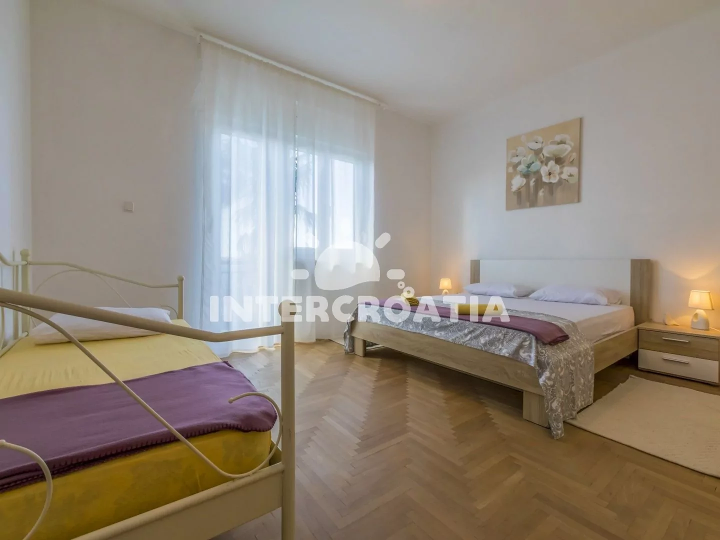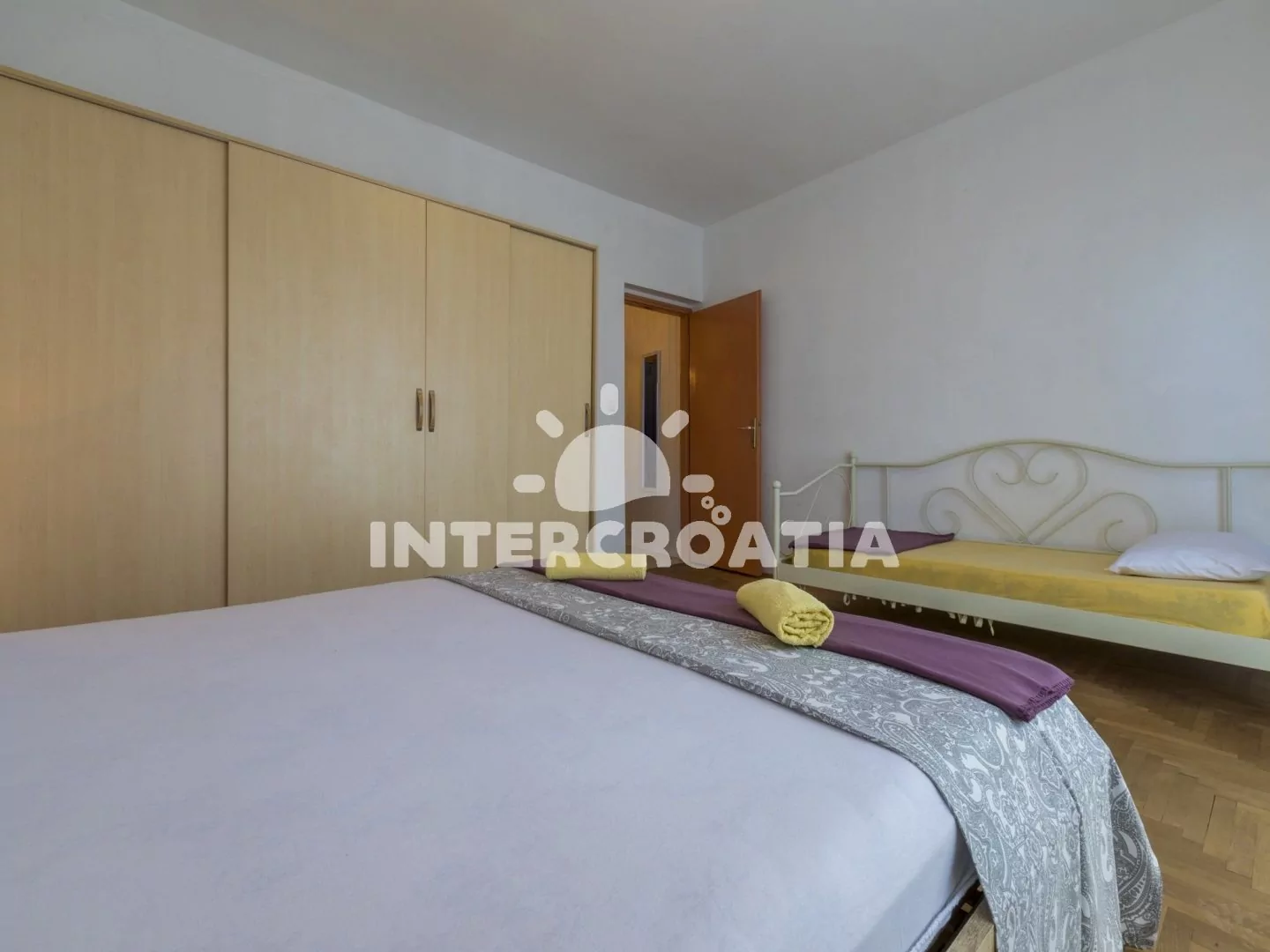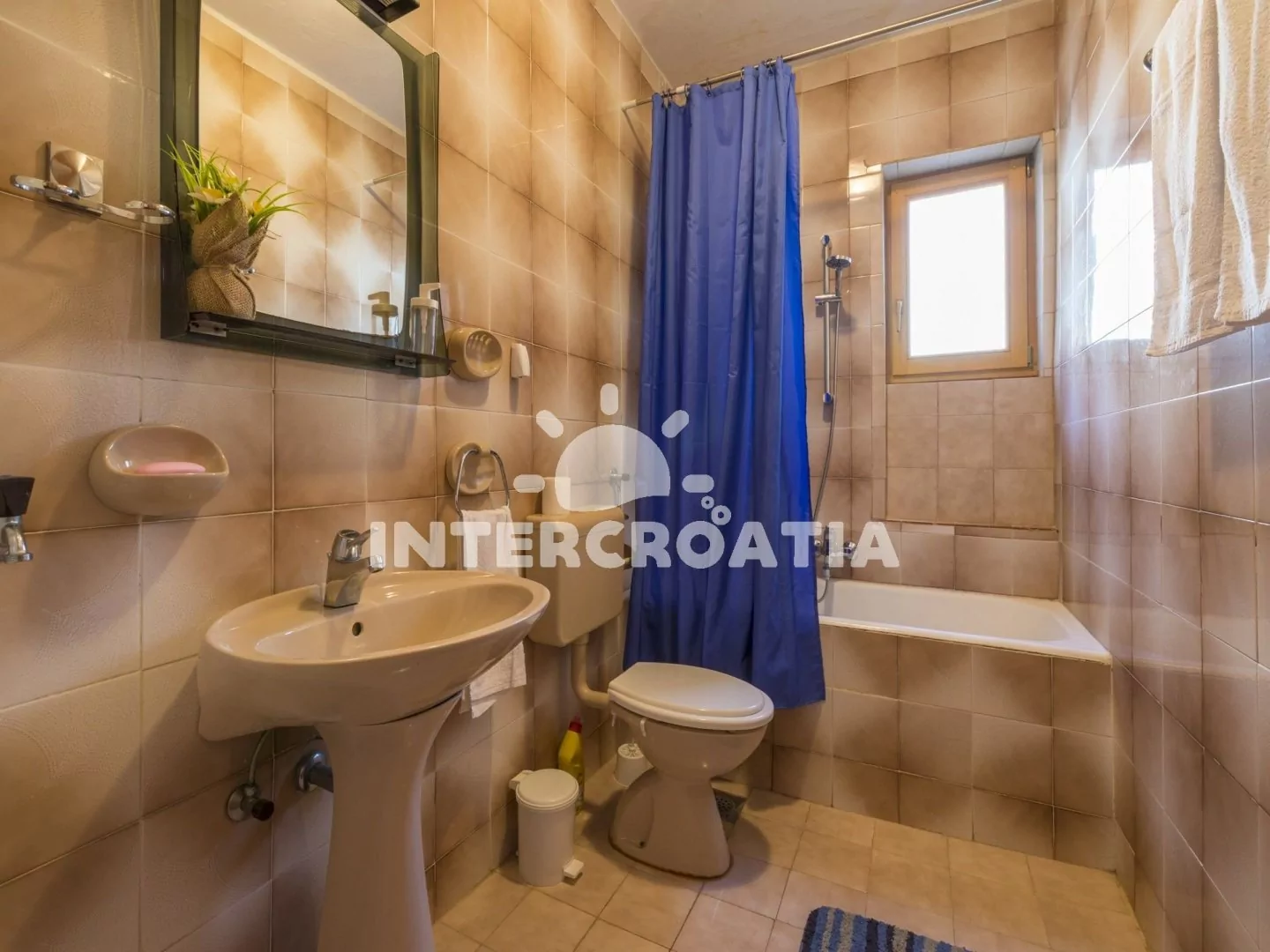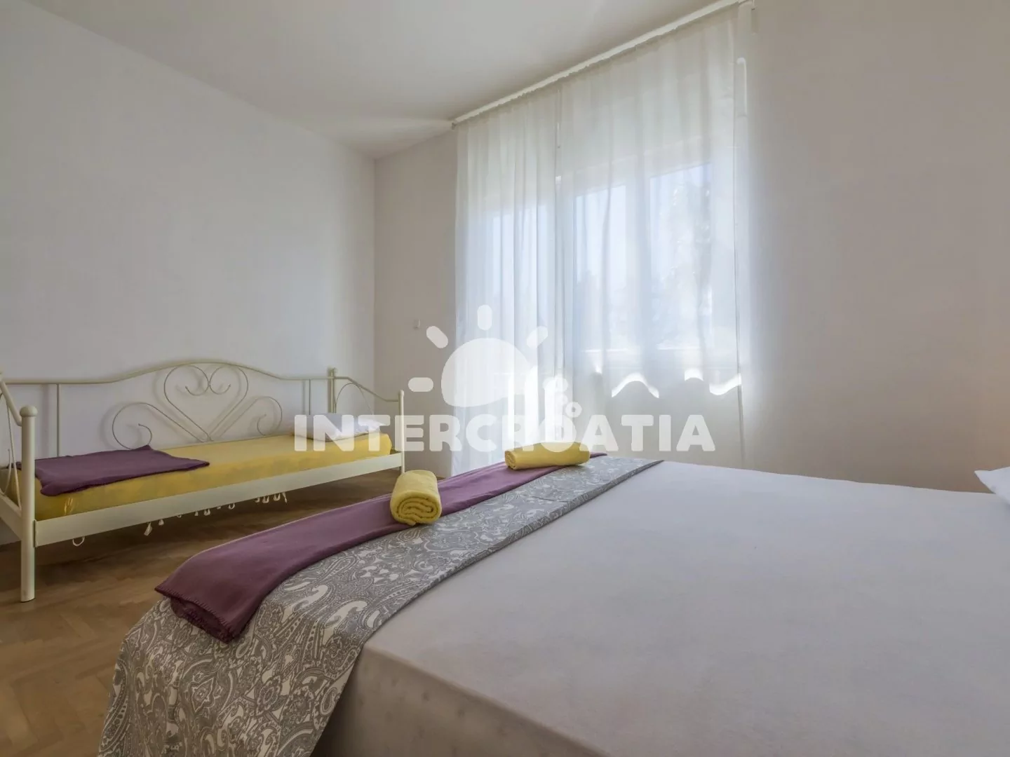 Apartmán (45 m2) s vlastní terasou, balkonem a výhledem na moře se nachází v 1. patře domu a je vhodný pro 3 až 4 osoby. Obývací pokoj je spojený s kuchyní. Kuchyňská linka je vybavena dvouplotýnkovým vařičem, rychlovarnou konvicí, kávovarem, nádobím a lednicí s mrazákem. Obývací pokoj s jídelním stolem pro 4 osoby, pohovkou (rozložitelná na extra lůžko pro 1 osobu), televizí se satelitním programem, klimatizací a vstupem na balkon. Ložnice s dvoulůžkem, jedním jednolůžkem a vstupem na balkon. Koupelna s vanou, sprchovou zástěnou, umyvadlem a wc. Hostům je k dispozici parkování u objektu zdarma.
