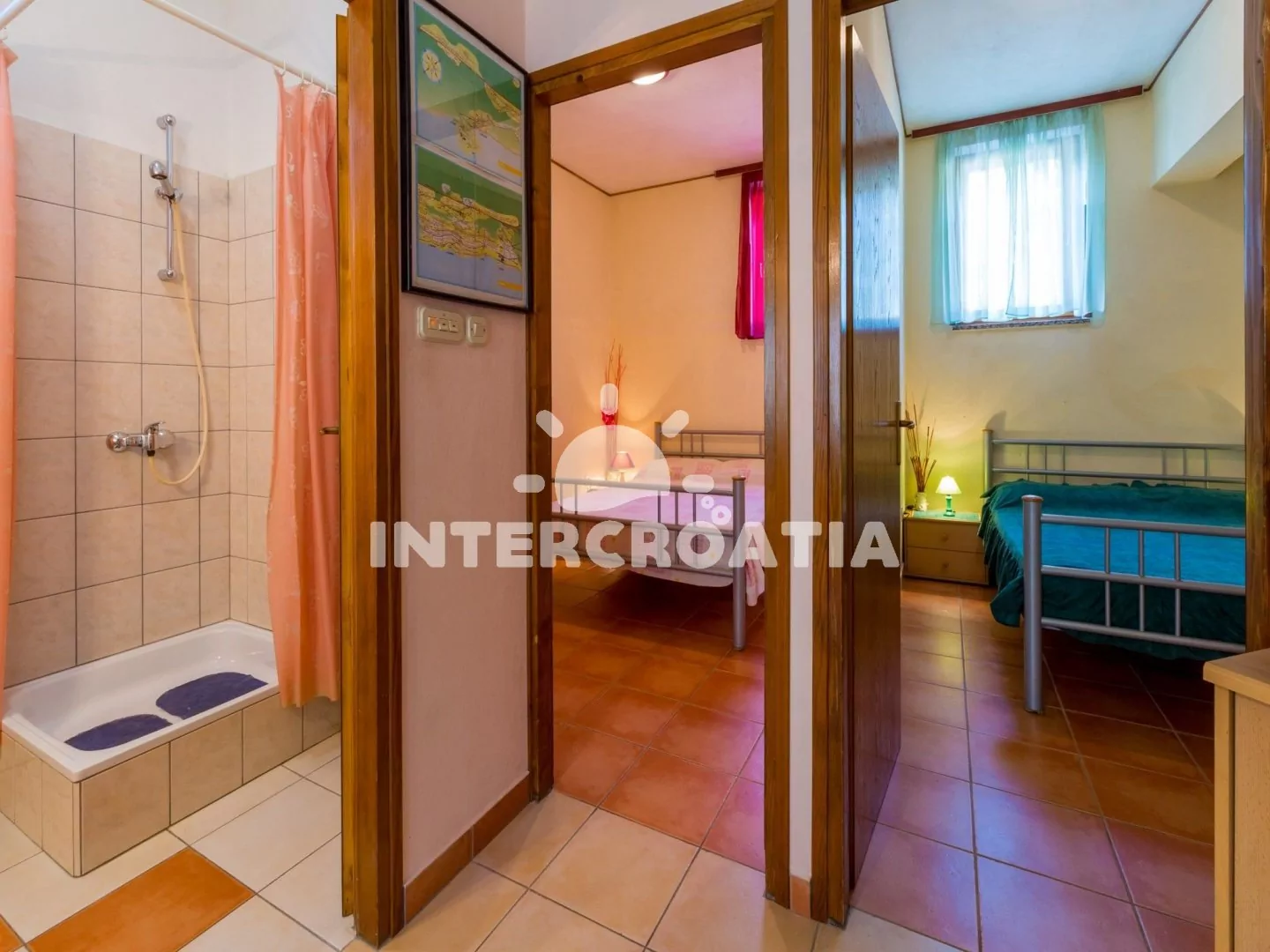 Vzdálenosti: Moře a pláž 500 m, centrální pláž 800 m, centrum, diskotéka, pošta, banka, ambulance, lékárna, muzeum 3,5 km, supermarket 450 m, restaurace, bar, směnárna 350 m, tenis, minigolf 700 m, čerpací stanice 1 km, potápění 1,5 km, letiště 19 km, trajekt 37 km.
