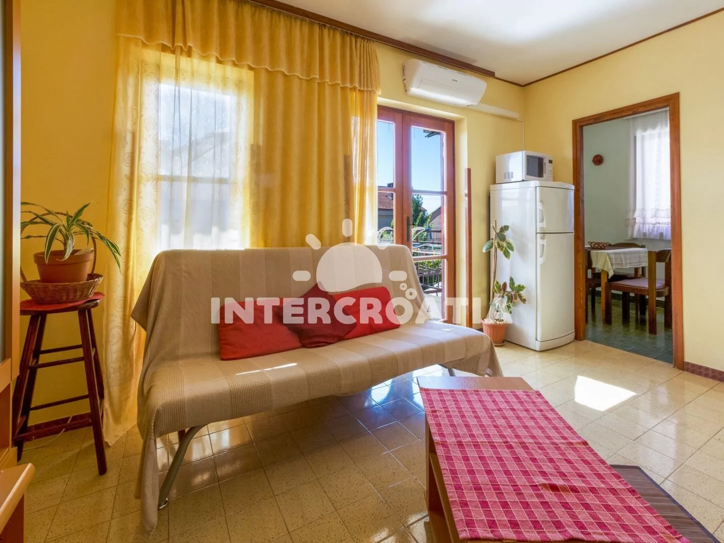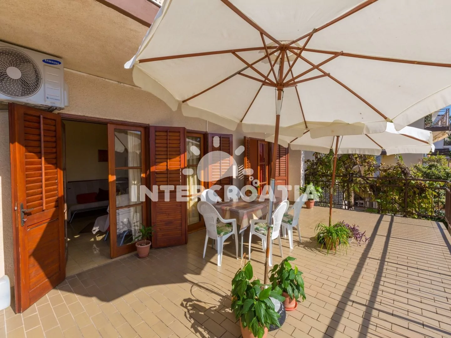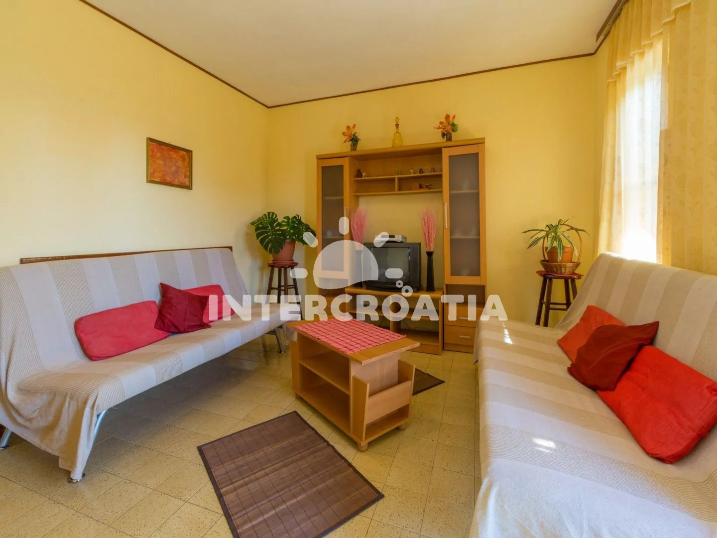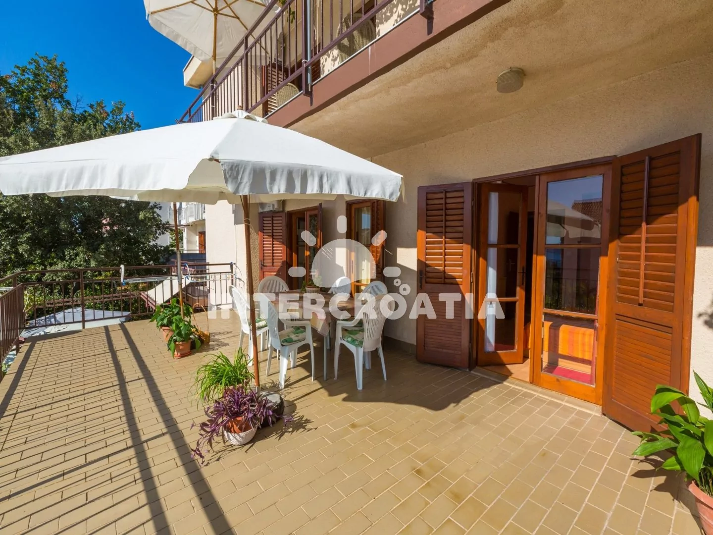 Apartmán (80 m2) v 1. patře s vlastní terasou a částečným výhledem na moře je vhodný pro až 8 osob. Apartmán disponuje 4 ložnicemi a obývacím pokojem s kuchyní. Kuchyňská linka je vybavena sporákem, mikrovlnnou troubou, rychlovarnou konvicí, kávovarem, nádobím a lednicí s mrazákem. Dále jídelní stůl pro 6 osob. Obývací pokoj s pohovkami, televizí se satelitním programem, klimatizací a vstupem na terasu. První ložnice s jedním dvoulůžkem a vstupem na terasu. Další tři ložnice jsou vybaveny vždy s jedním dvoulůžkem. První koupelna se sprchovým koutem, umyvadlem a wc. Druhá koupelna s vanou, umyvadlem, bidetem a wc. Hostům je k dispozici parkování u objektu zdarma.