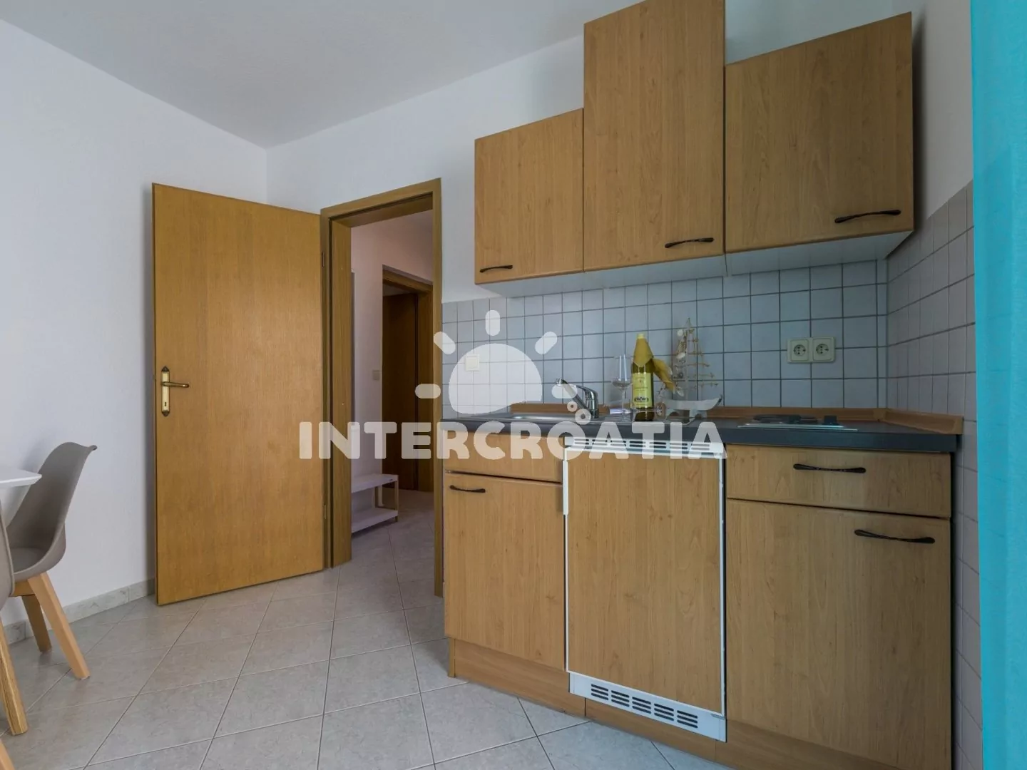 Apartmán (30 m2) s terasou, balkonem a výhledem na moře se nachází v 2. patře vily a je vhodný pro 2 až 4 osoby. Obývací pokoj je spojený s kuchyní. Kuchyňská linka je vybavena dvouplotýnkovým vařičem, mikrovlnnou troubou, rychlovarnou konvicí, kávovarem, toustovačem, nádobím a lednicí s mrazákem. Obývací pokoj s jídelním stolem pro 4 osoby, pohovkou (rozložitelná na extra lůžko pro 2 osoby) a vstupem na terasu. Ložnice s dvoulůžkem, televizí se satelitním programem, klimatizací a vstupem na balkon. Koupelna se sprchovým koutem, umyvadlem a wc. Hostům je k dispozici parkování u objektu zdarma.