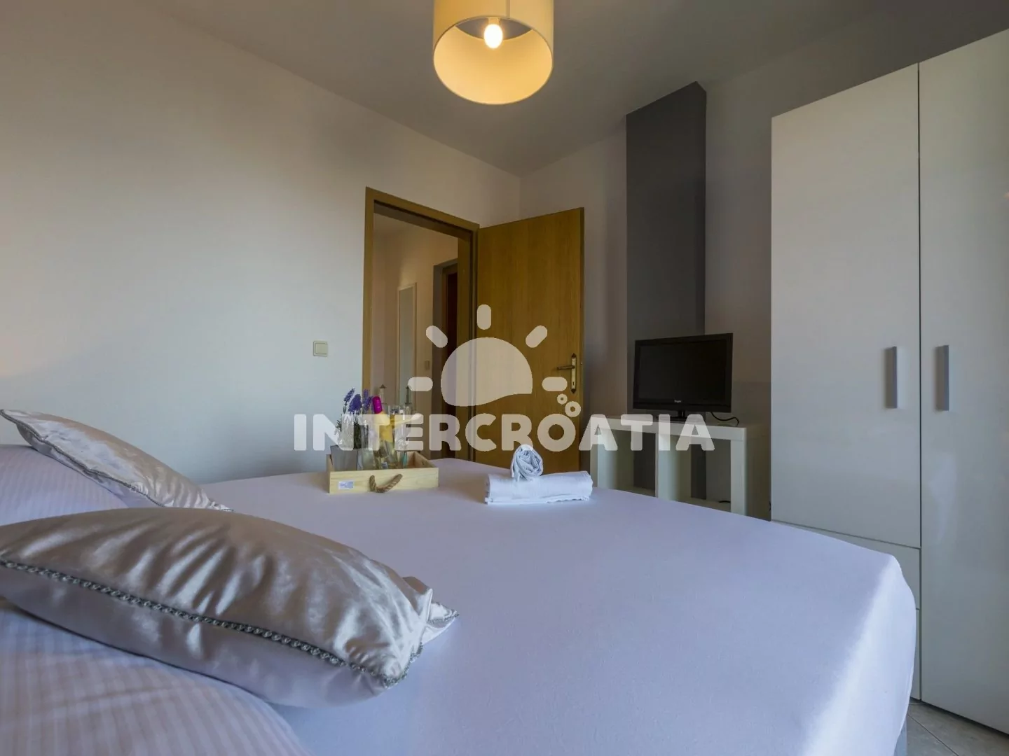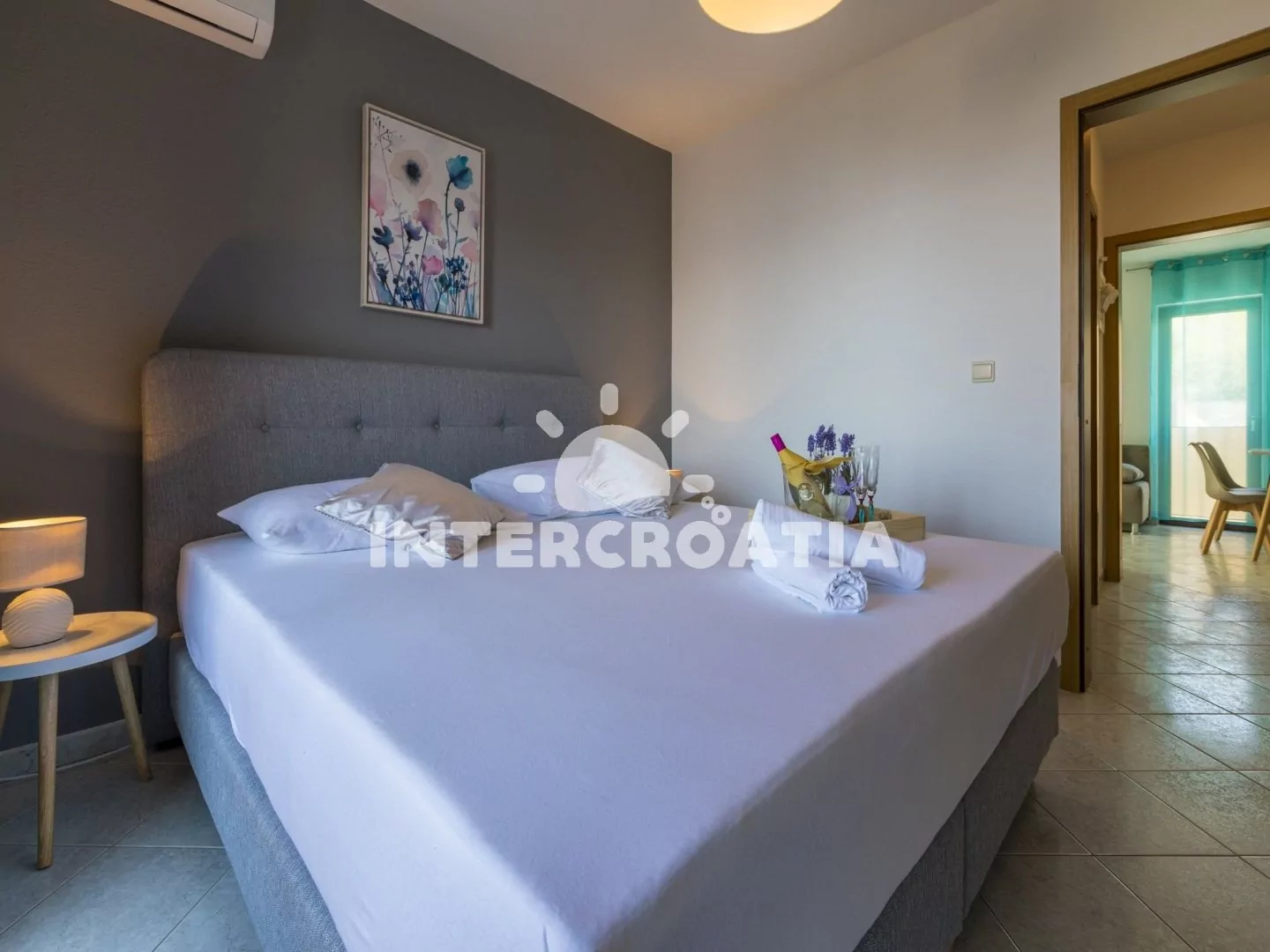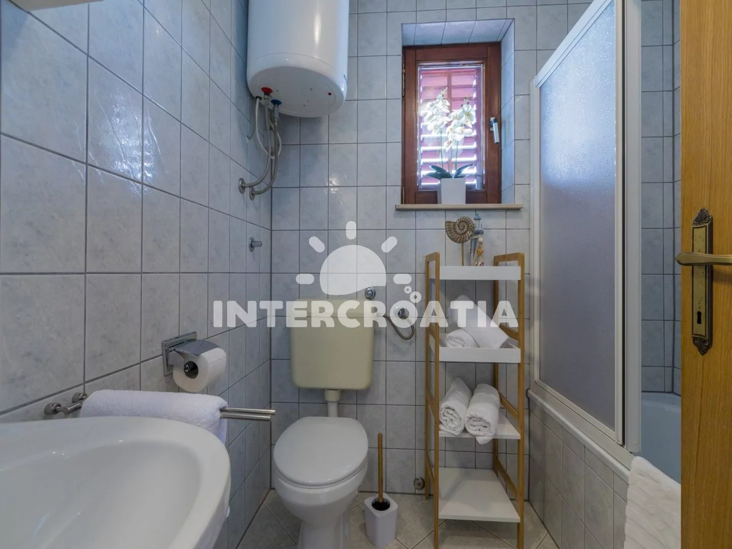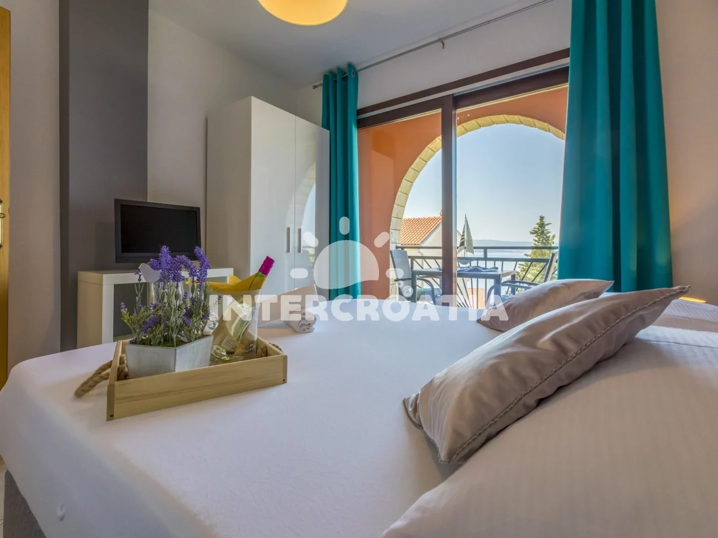 Moderně zařízená apartmánová vilka s upravenou zahrádkou a výhledem na moře, apartmány s lodžiemi a venkovním posezením. Soukromá parkovací místa u objektu.