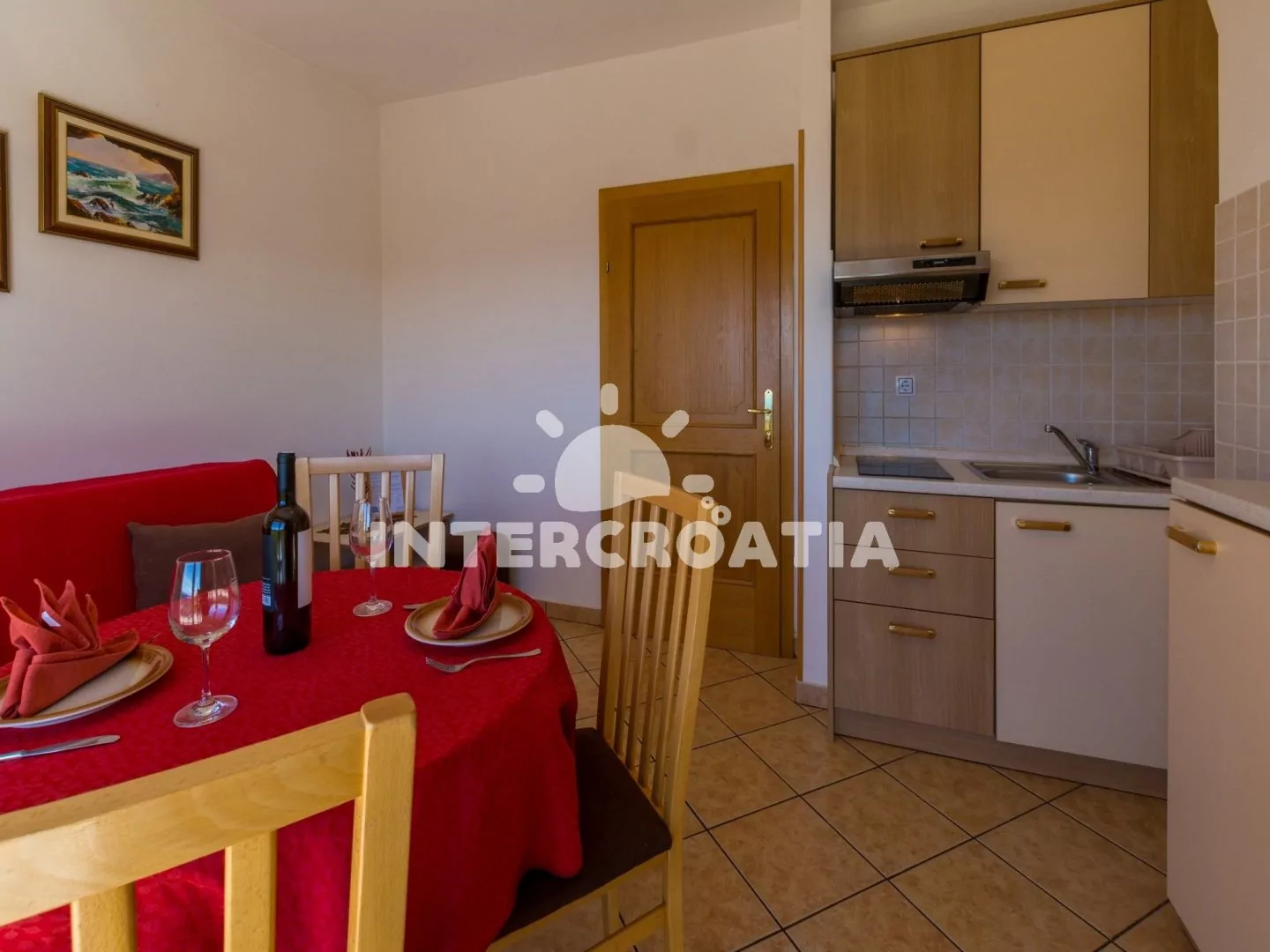 Apartmán (40 m2) s výhledem na moře a vlastním balkonem se nachází v 1. patře domu. Apartmán je vhodný pro 2 až 4 osoby. Obývací pokoj je spojený s kuchyní. Kuchyňská linka je vybavena…
