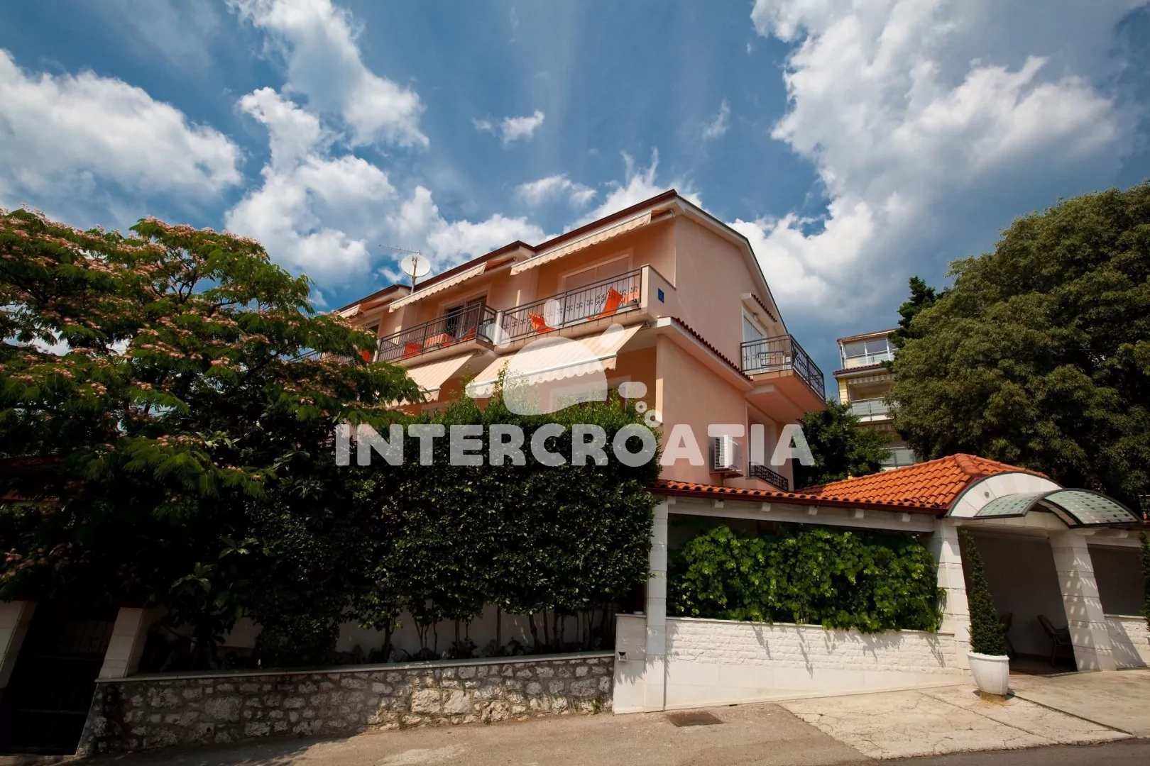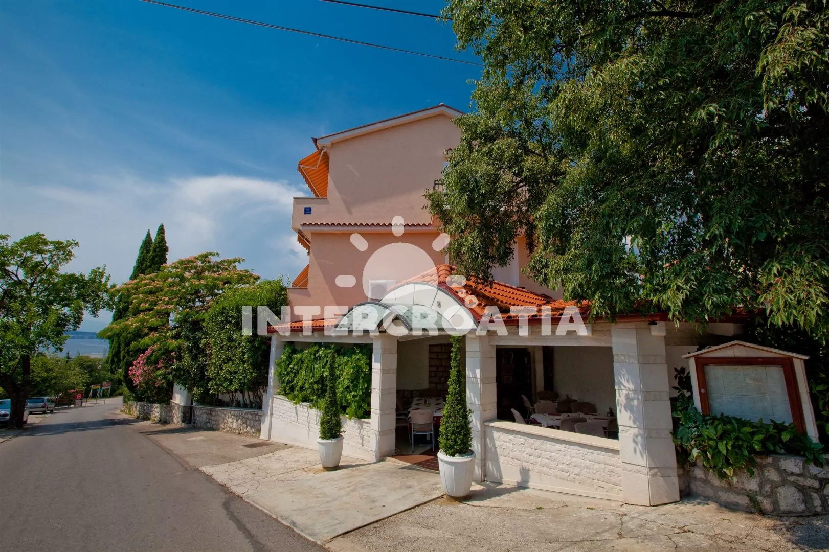 Skvěle umístěný objekt s dvěma apartmánovými domy, terasou s vířivkami a vlastní restaurací, se nachází téměř u pláže. První dům v němž se nachází ubytování a v přízemí restaurace, se skládá z 5 apartmánů s výhledem na moře a lodžiemi s venkovním posezením. Hosté mohou navštěvovat druhý objekt, který vlastní stejný majitel a využívat saunu a vířivky. Dále je k dispozici v domě stravování, v jedné z nejvyhlášenějších místních restaurací. Parkovací místa u objektu.