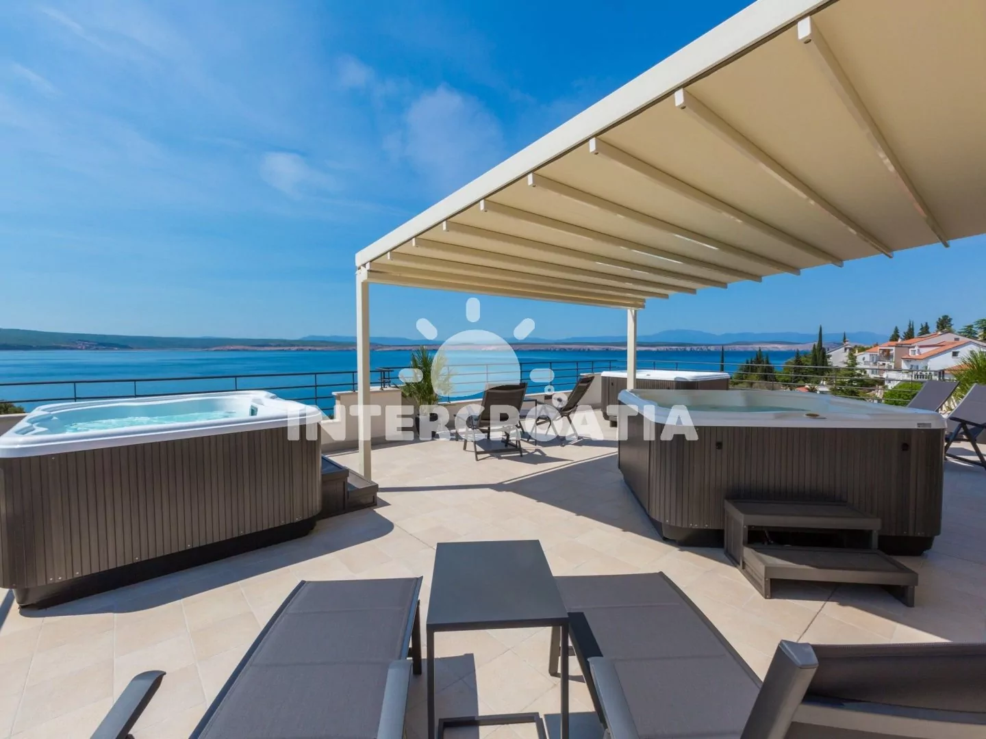 Výhled na moře! Krásná terasa s vířivkami, saunou a posezením.