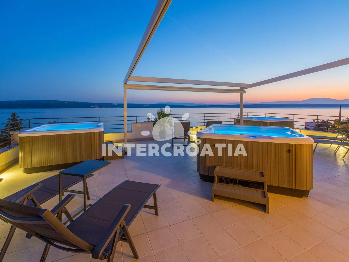 Nádherná terasa s vířivkami, saunou, venkovním posezením a výhledem na moře!