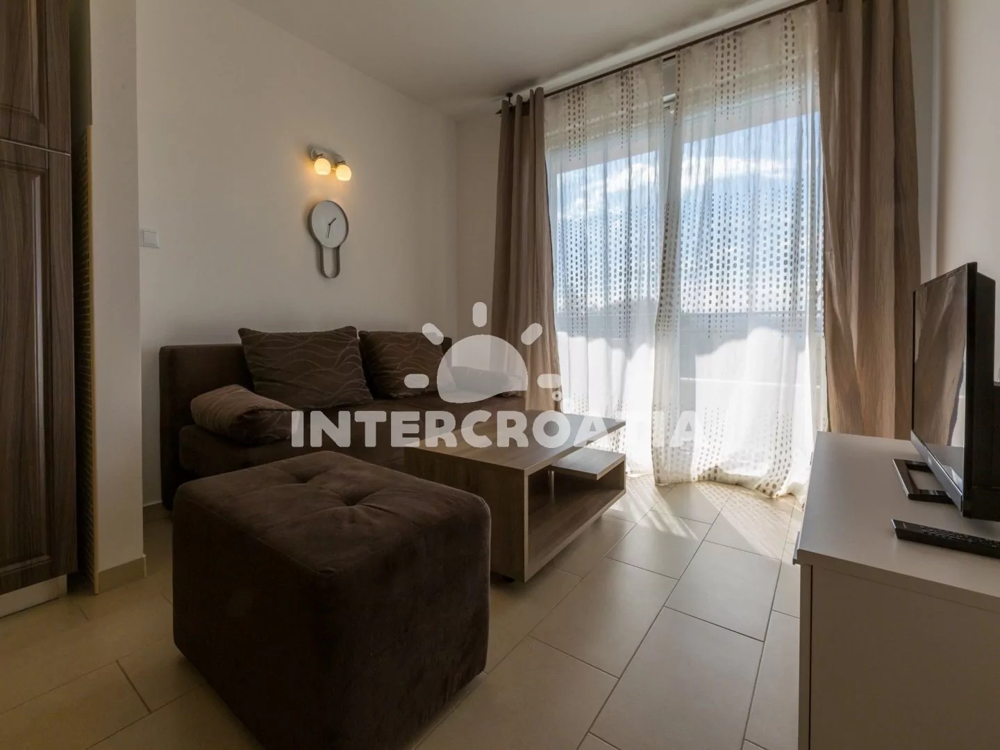 Vkusně zařízený apartmán (65 m2) s vlastním balkonem a výhledem na moře se nachází v 1. patře domu. Apartmán je vhodný pro 4 až 6 osob. Obývací pokoj je spojený s kuchyní. Kuchyňská linka je vybavena…
