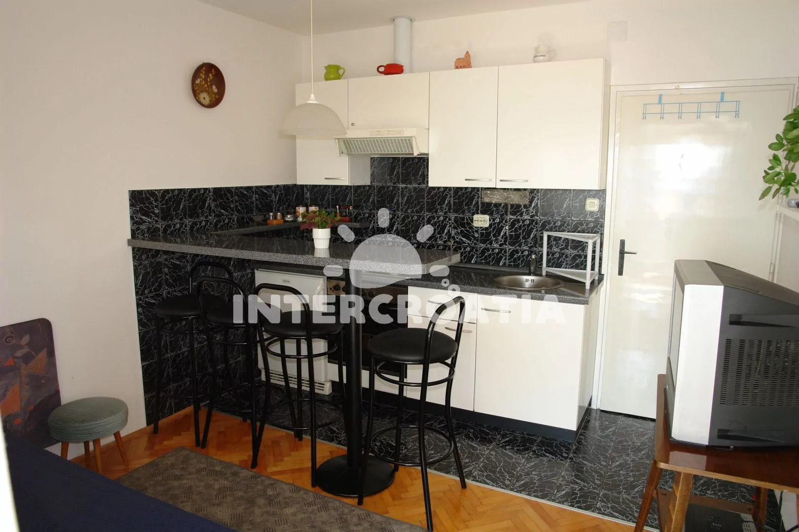 Apartmán s terasou a výhledem na moře se nachází v 1. patře domu a je vhodný pro 2 až 4 osoby. Obývací pokoj je spojený s kuchyní. Kuchyňská linka je vybavena varnou deskou, digestoří, troubou,… Více informací