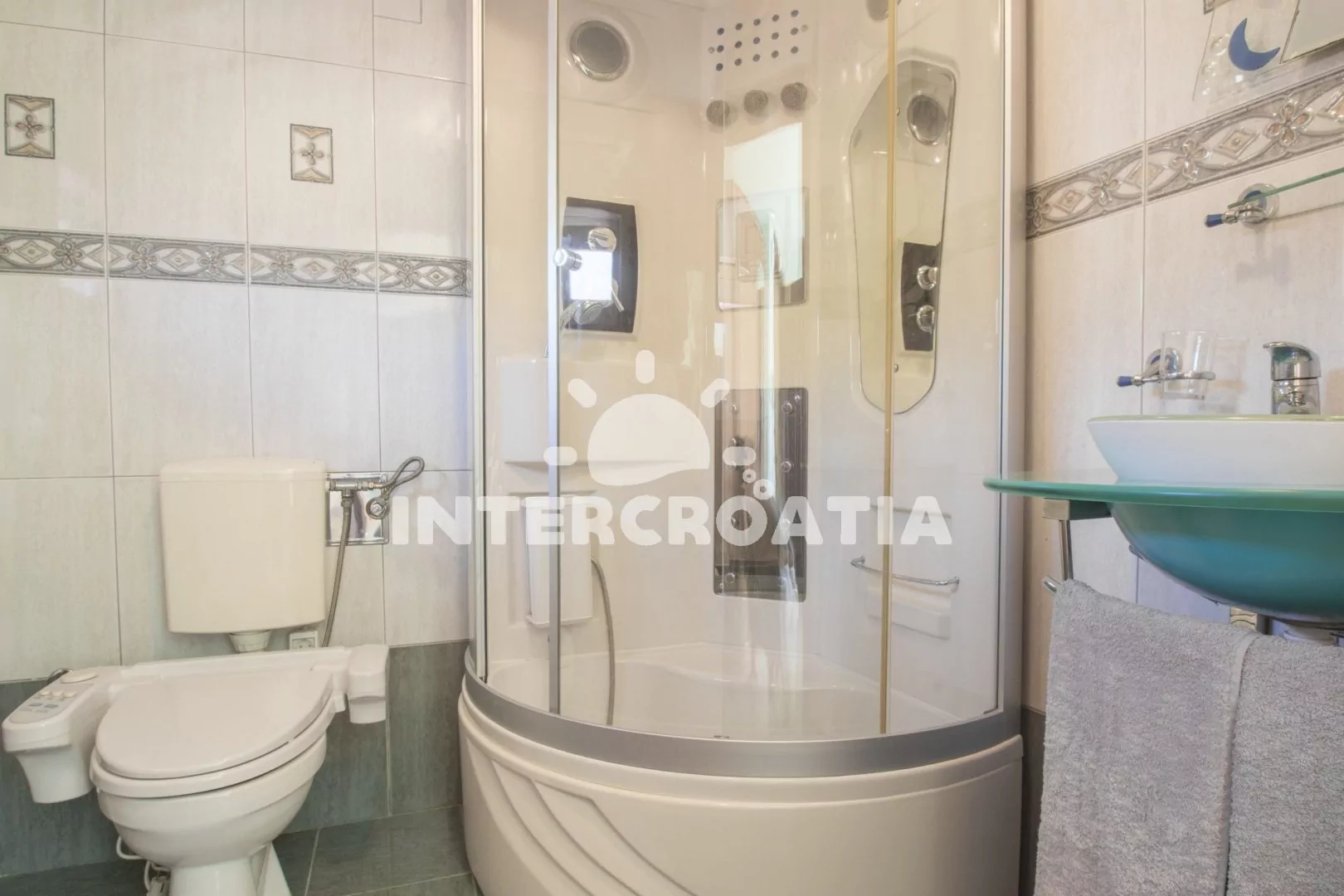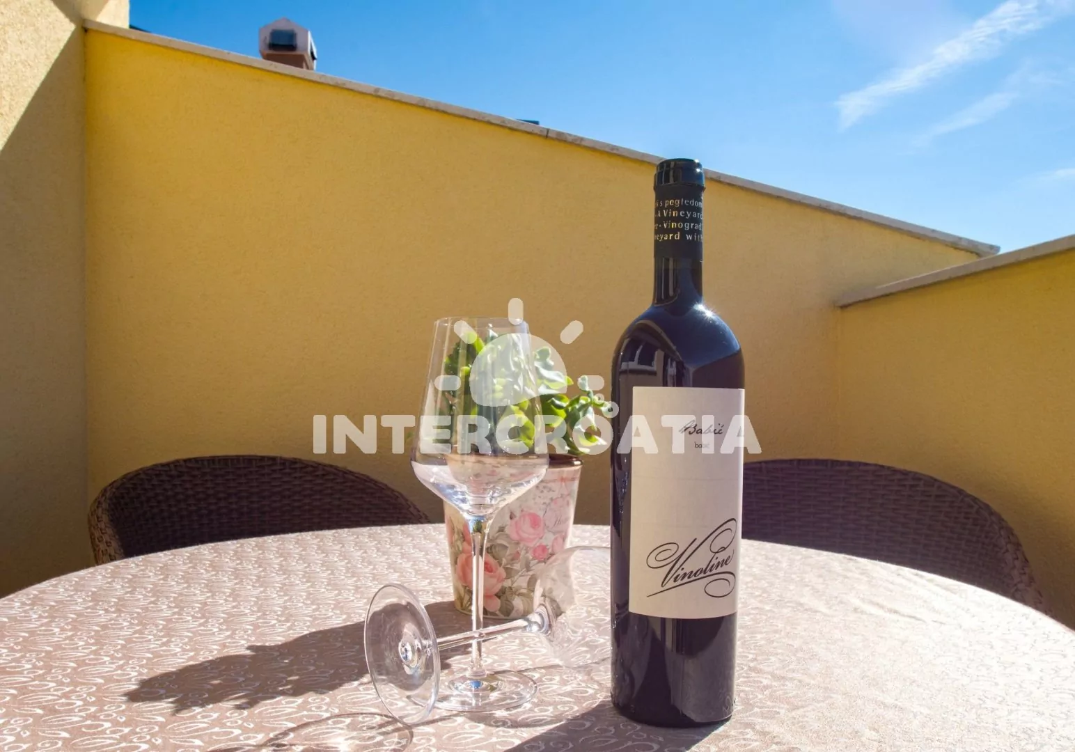 V příjemné lokalitě a v docházkové vzdálenosti od moře se nachází vilka se 4 apartmány, s lodžiemi a výhledem na moře. Vlastní pozemek se zahradou a parkovacími místy.