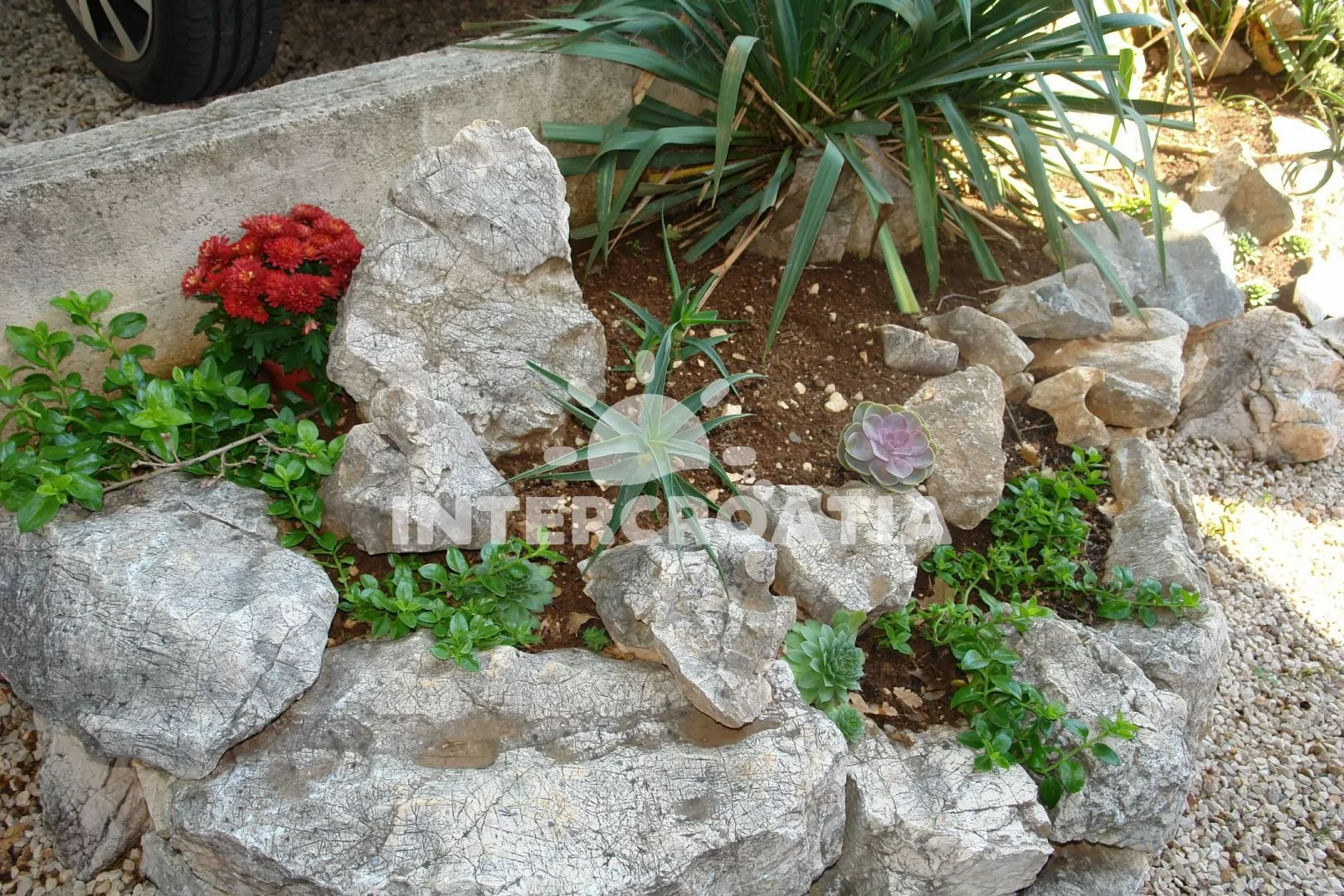 Moderně vystavěný dům s třemi apartmány vybavených lodžiemi, se nachází 400 m pěší chůzí od oblázkové pláže. Kolem domu vlastní pozemek se zahradou, společnou terasou s posezením a grilem. Parkovací místa u objektu.