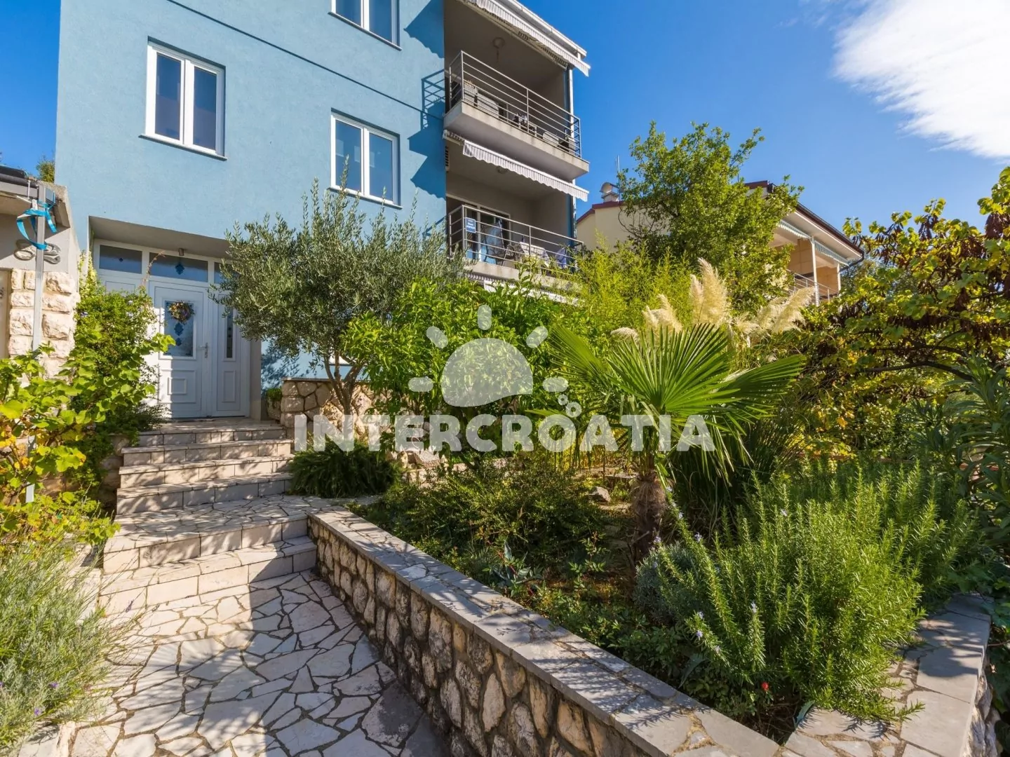 Moderně vystavěný dům s třemi apartmány vybavených lodžiemi, se nachází 400 m pěší chůzí od oblázkové pláže. Kolem domu vlastní pozemek se zahradou, společnou terasou s posezením a grilem. Parkovací místa u objektu.