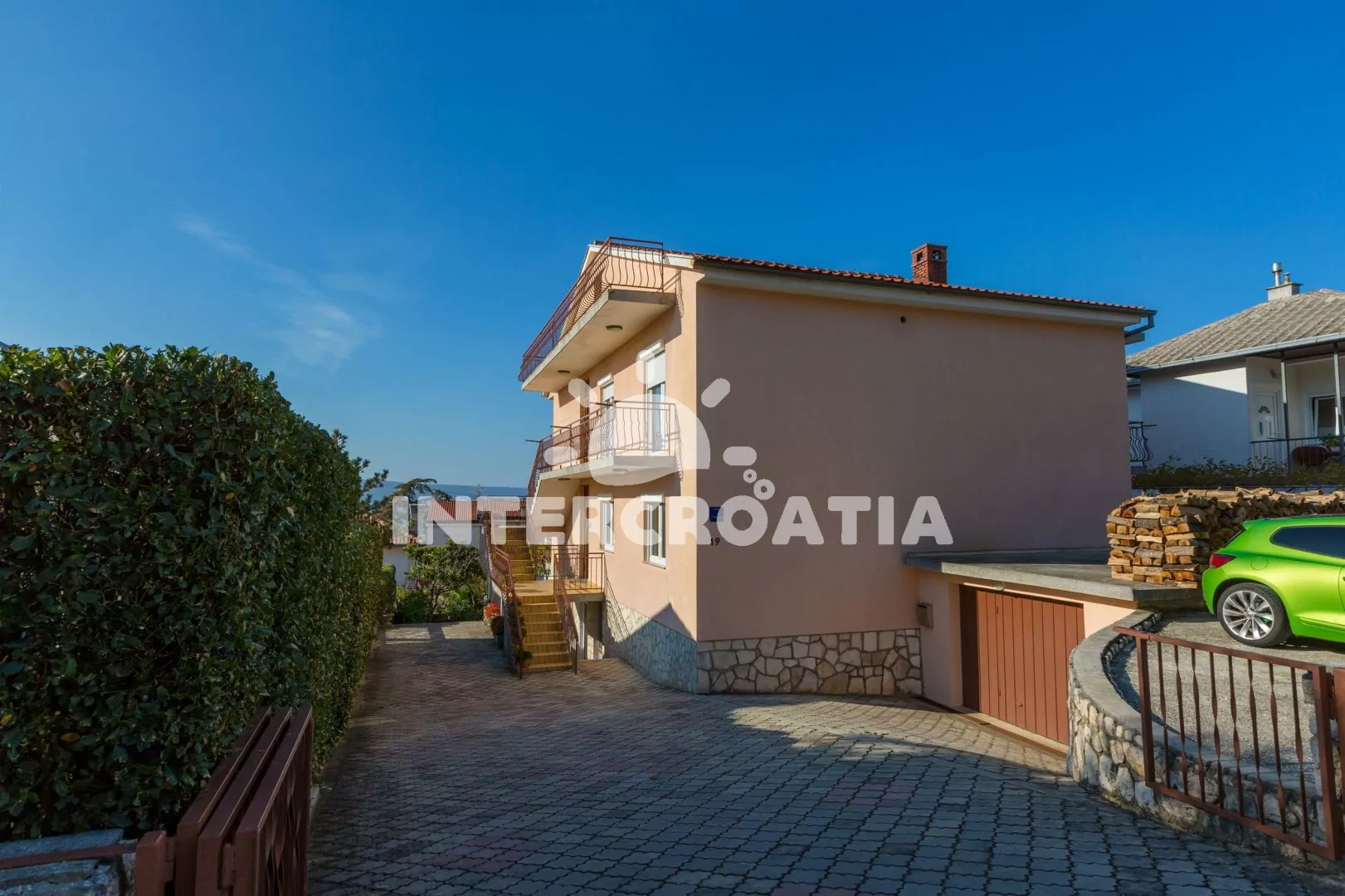 V příjemném prostředí a dobře umístěný dům, nabízí ubytování ve 2 apartmánech s lodžiemi a venkovním posezením, nachází se 250 m od pláže a moře. U domu zahrádka s terasou a vlastním pozemkem s parkovacími místy.