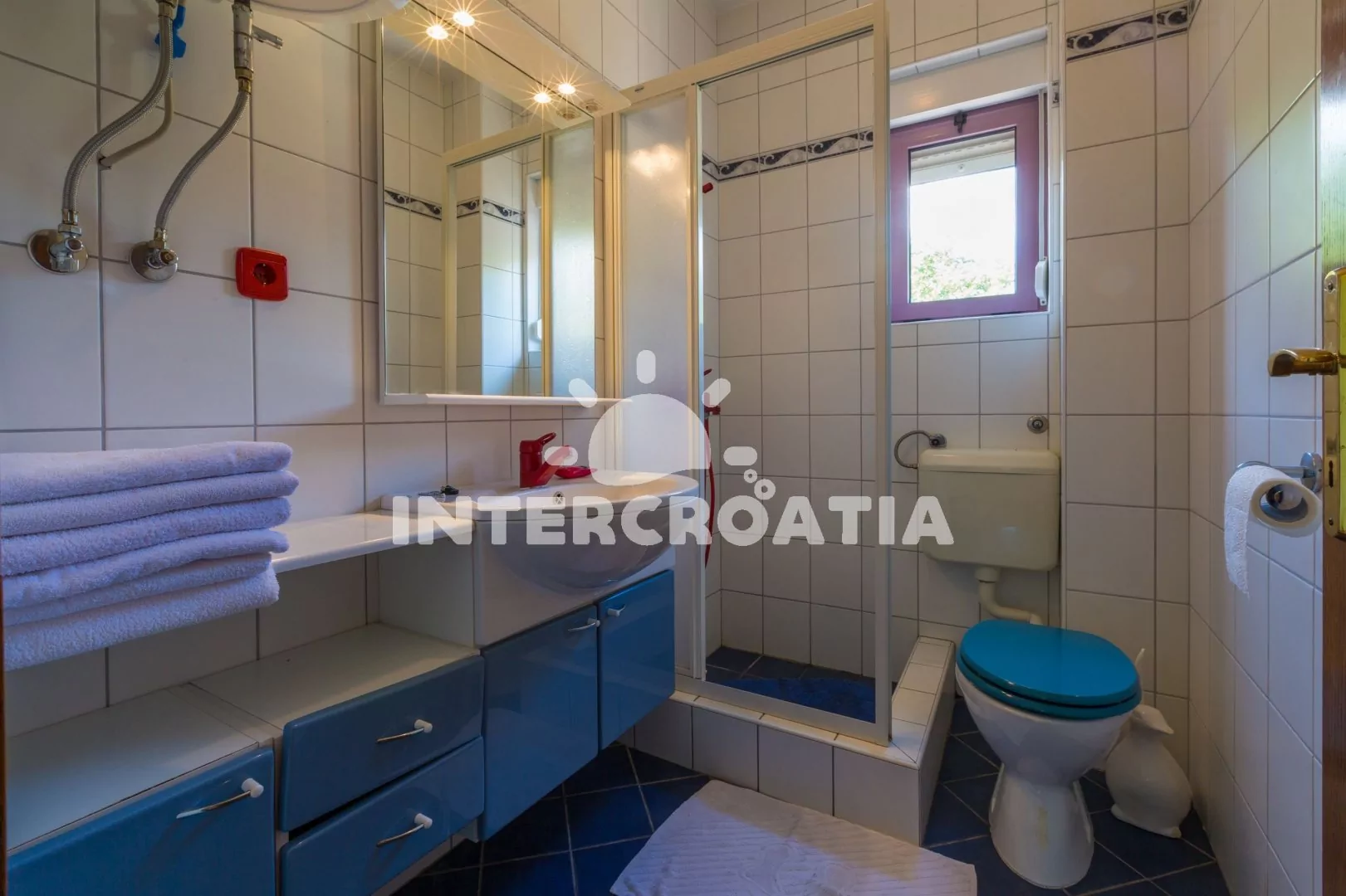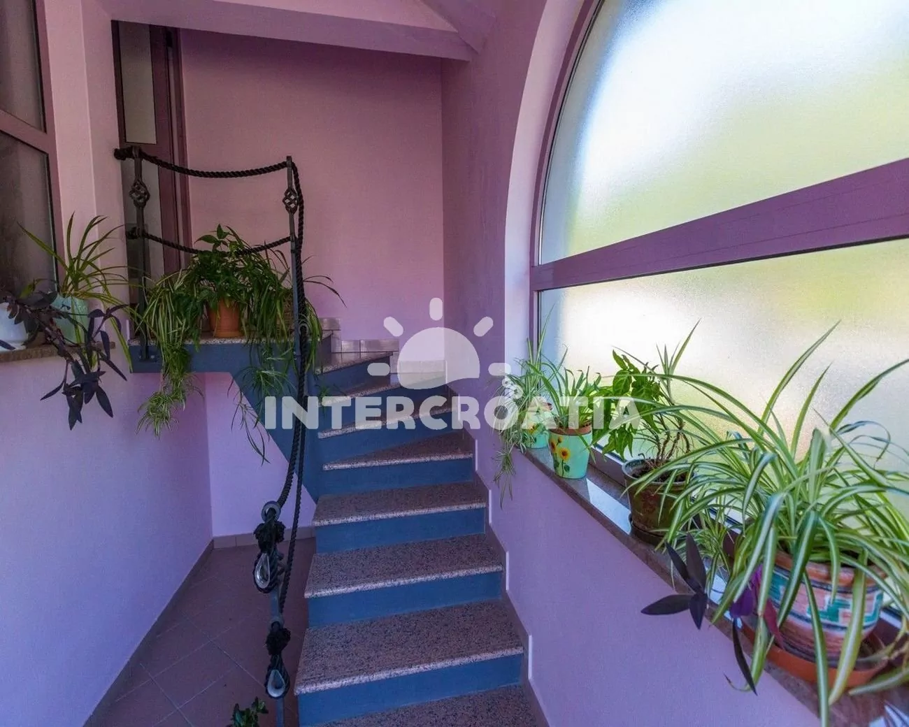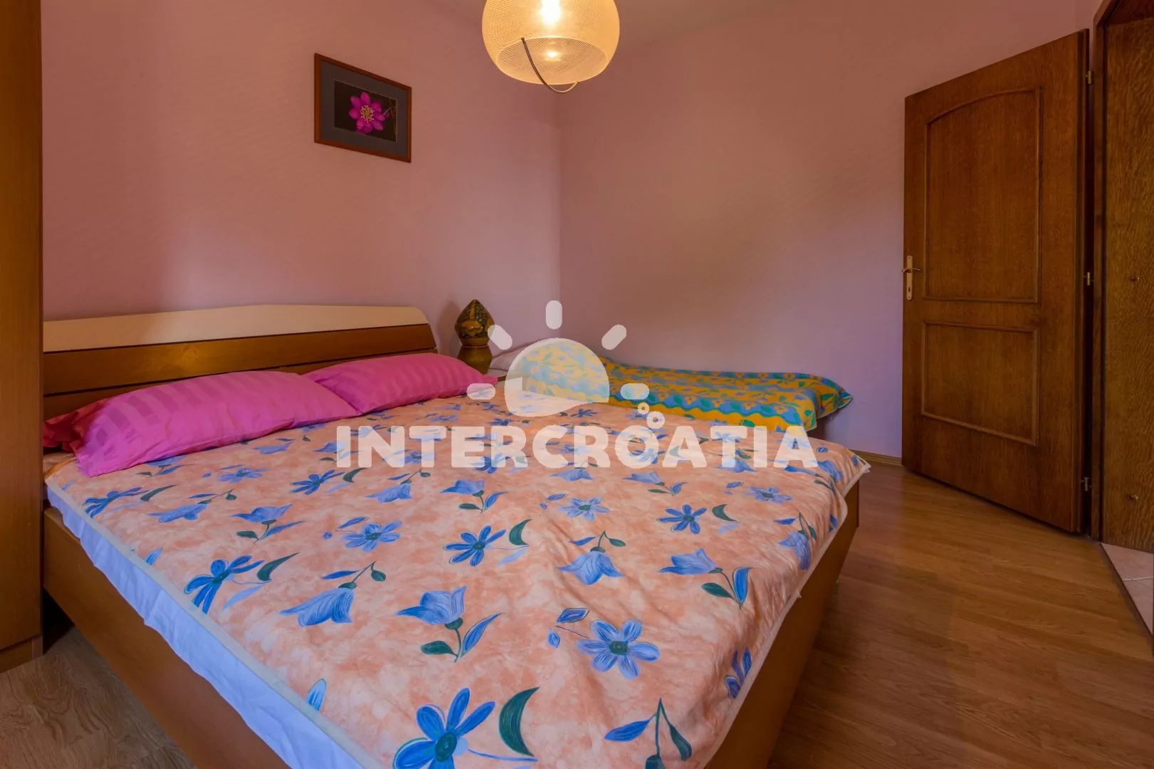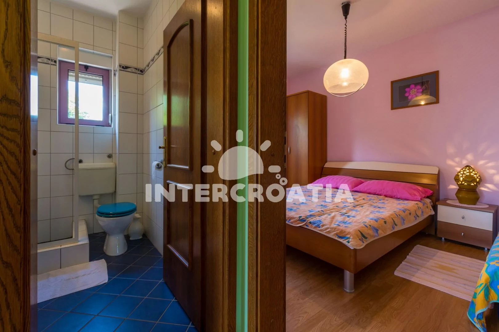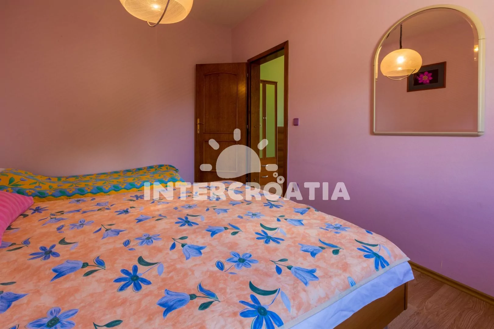 Apartmán (55 m2) s balkonem a výhledem na moře, se nachází v 1. patře vily. Apartmán je vhodný pro 2 až 4 osoby. Obývací pokoj je spojený s kuchyní. Kuchyňská linka je vybavena varnou deskou, digestoří, mikrovlnnou troubou, myčkou na nádobí, rychlovarnou konvicí, kávovarem, toustovačem, nádobím a lednicí s mrazákem. Obývací pokoj s jídelním stolem pro 4 osoby, pohovkou (rozložitelná na extra lůžko pro 1 osobu), televizí se satelitním programem, radiem, DVD přehrávačem, klimatizací a vstupem na balkon. Ložnice s dvoulůžkem a jedním jednolůžkem. Koupelna se sprchovým koutem, umyvadlem a wc. Hostům je k dispozici parkování u objektu zdarma.