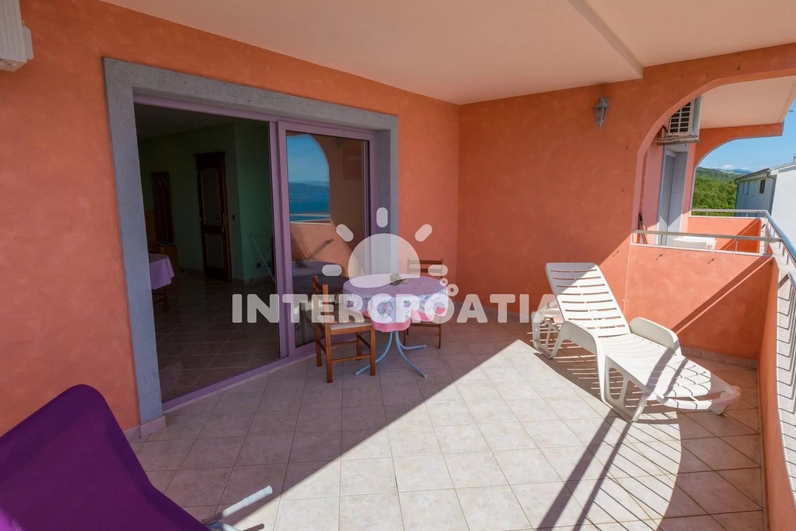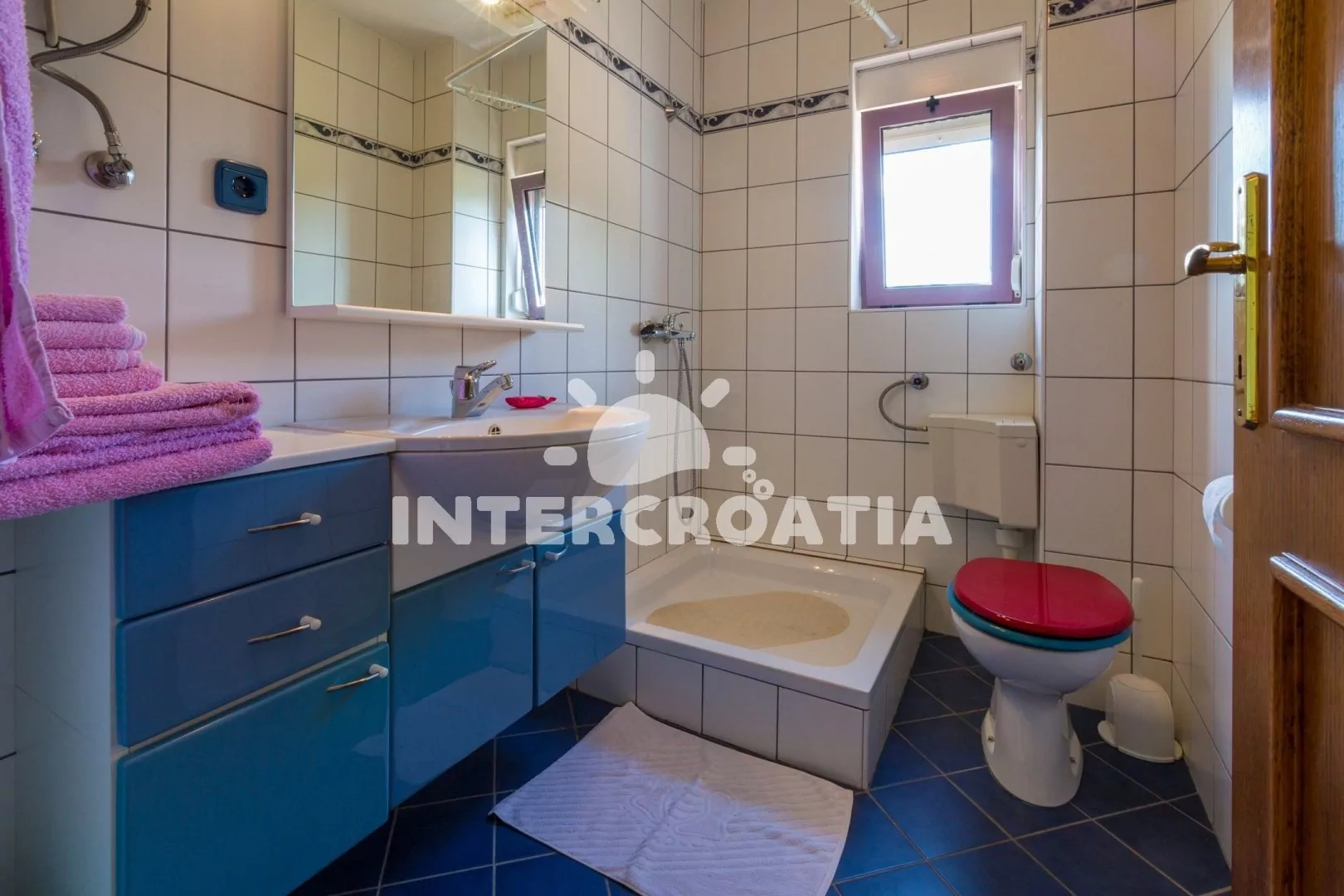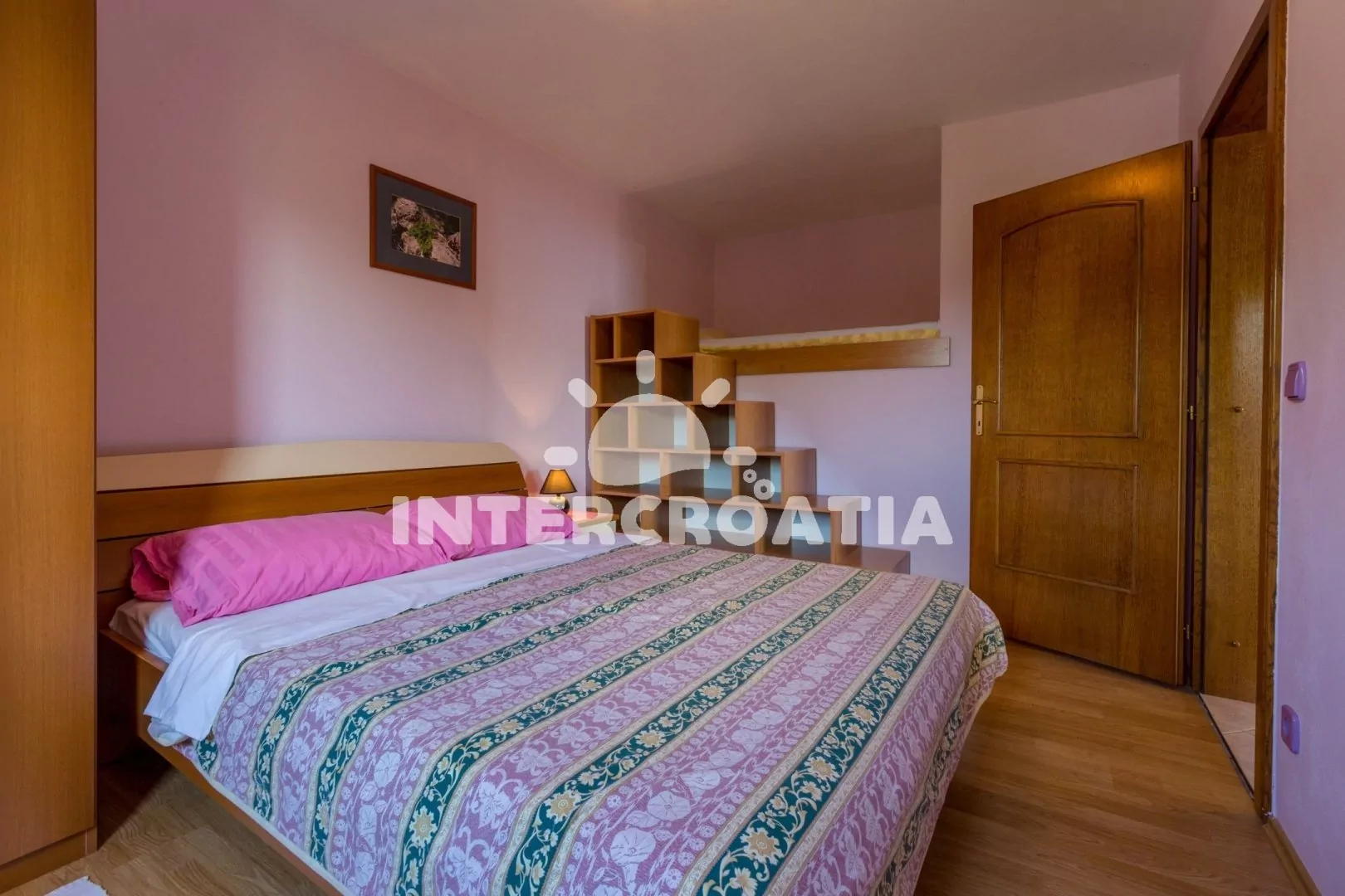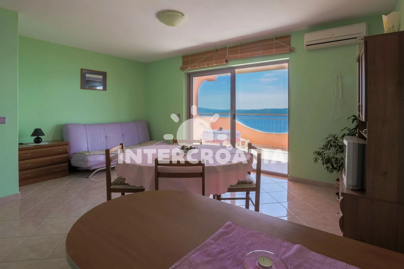 Apartmán (55 m2) s balkonem a výhledem na moře, se nachází v 2. patře vily. Apartmán je vhodný pro 3 až 4 osoby. Obývací pokoj je spojený s kuchyní. Kuchyňská linka je vybavena varnou deskou, digestoří, mikrovlnnou troubou, myčkou na nádobí, rychlovarnou konvicí, kávovarem, toustovačem, nádobím a lednicí s mrazákem. Obývací pokoj s jídelním stolem pro 4 osoby, pohovkou (rozložitelná na extra lůžko pro 1 osobu), televizí se satelitním programem, radiem, DVD přehrávačem, klimatizací a vstupem na balkon. Ložnice s dvoulůžkem a jedním jednolůžkem (vyvýšené lůžko). Koupelna se sprchovým koutem, umyvadlem a wc. Hostům je k dispozici parkování u objektu zdarma.