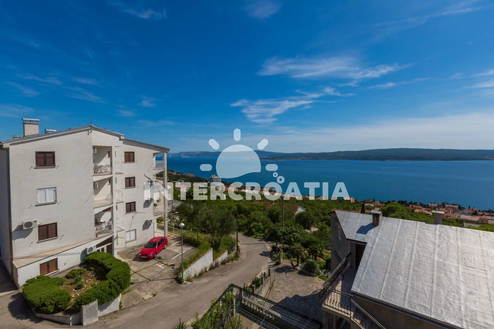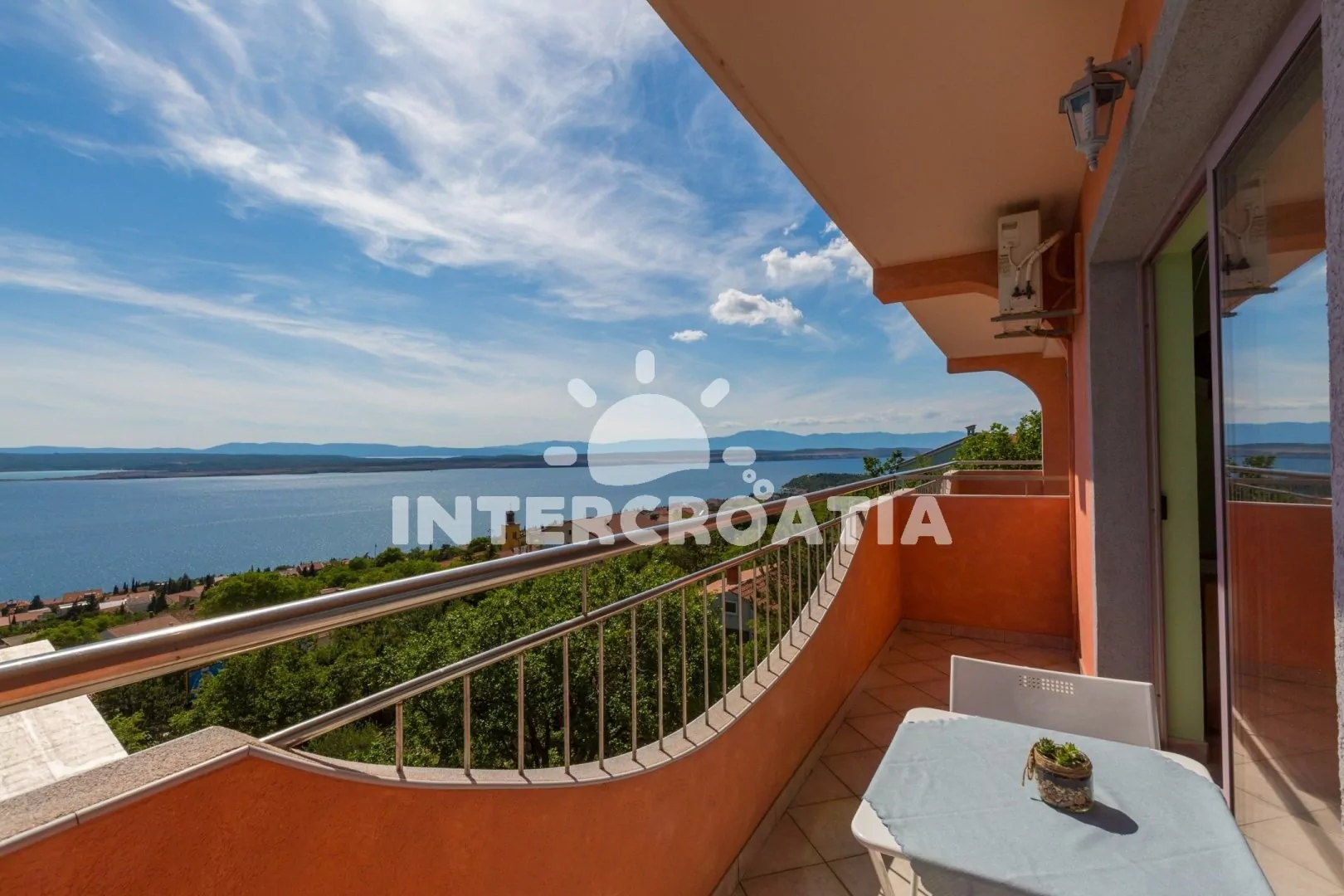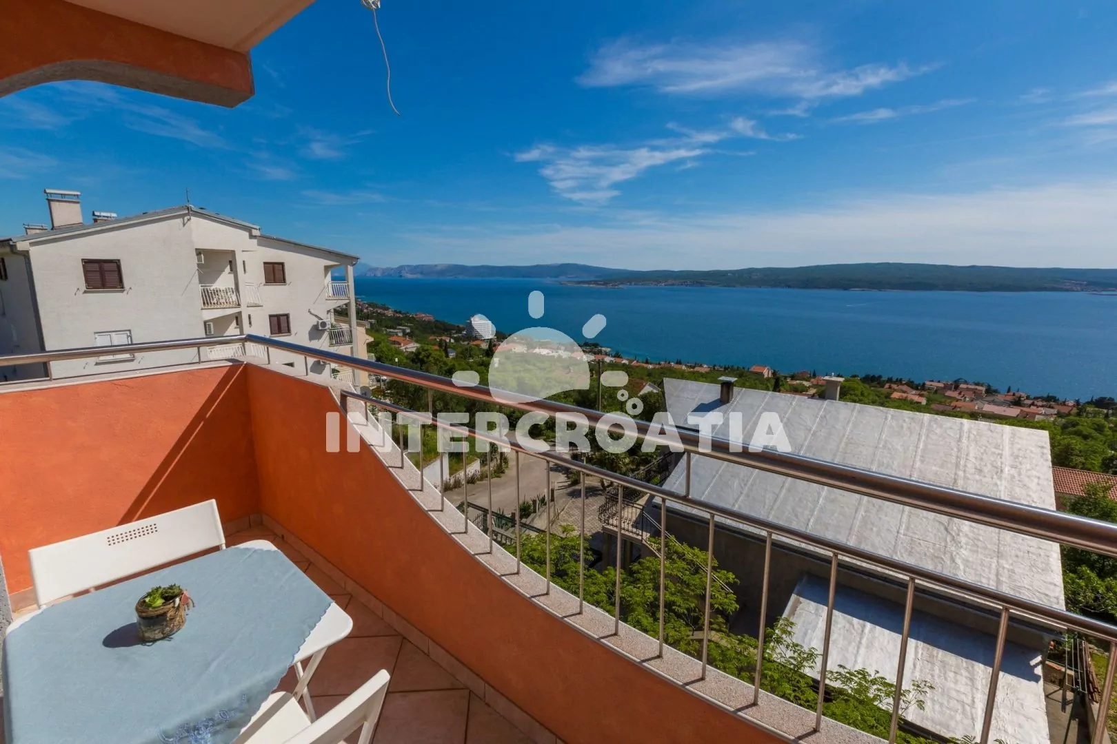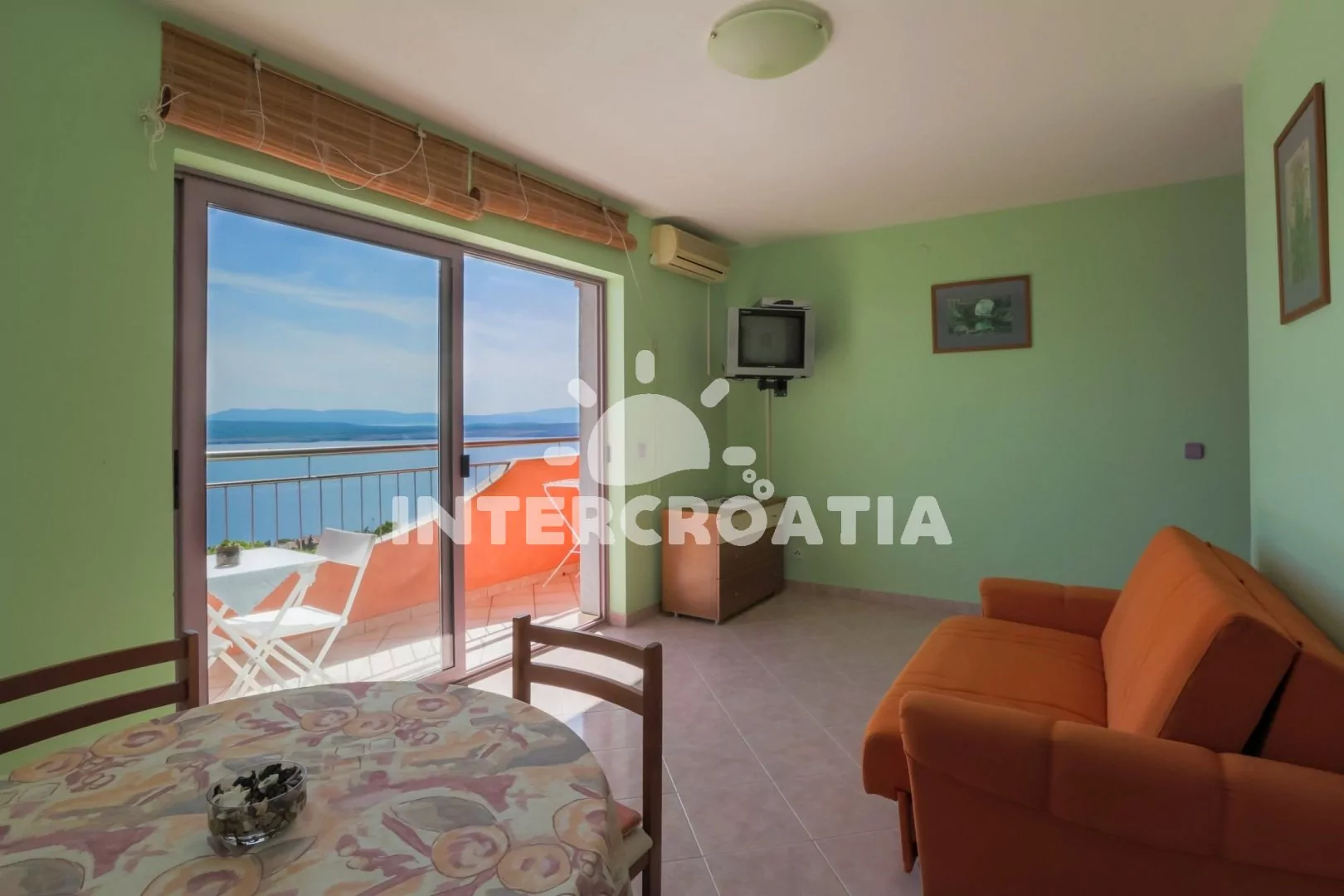 Apartmán (55 m2) s balkonem a výhledem na moře, se nachází v 2. patře vily. Apartmán je vhodný pro 2 až 4 osoby. Obývací pokoj je spojený s kuchyní. Kuchyňská linka je vybavena varnou deskou, digestoří, mikrovlnnou troubou, myčkou na nádobí, rychlovarnou konvicí, kávovarem, toustovačem, nádobím a lednicí s mrazákem. Obývací pokoj s jídelním stolem pro 4 osoby, pohovkou, televizí se satelitním programem, radiem, DVD přehrávačem, klimatizací a vstupem na balkon. Ložnice s dvoulůžkem a patrovou postelí (lůžka pro 2 osoby). Koupelna se sprchovým koutem, umyvadlem a wc. Hostům je k dispozici parkování u objektu zdarma.
