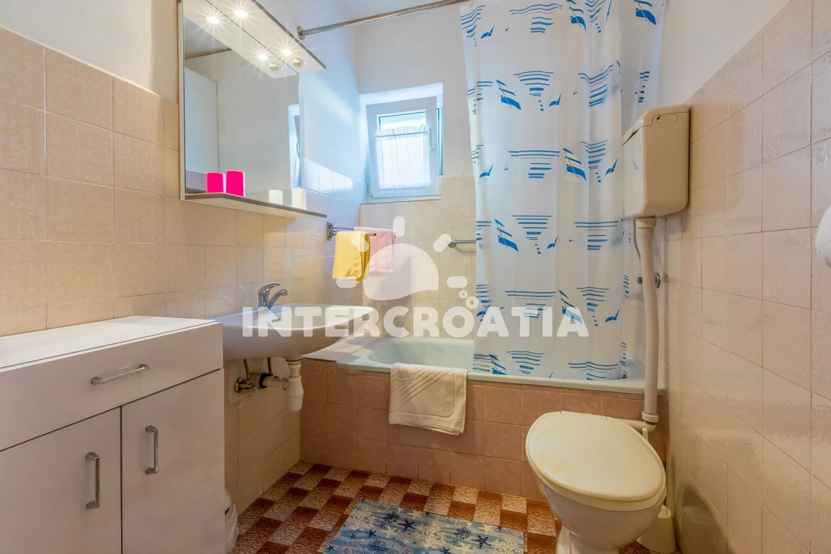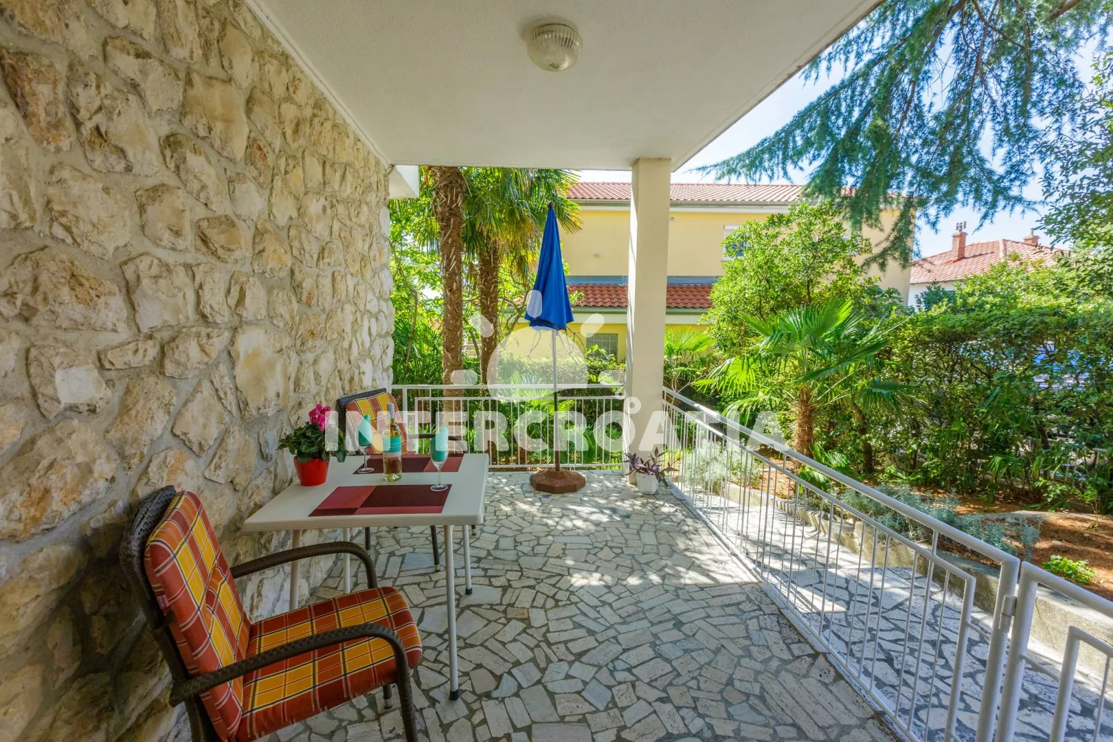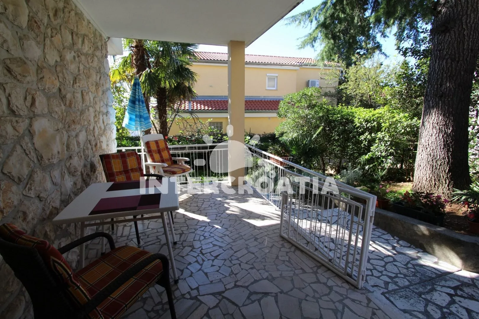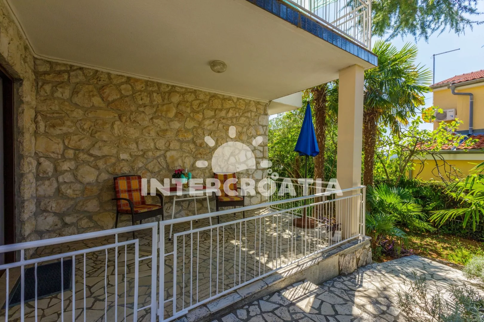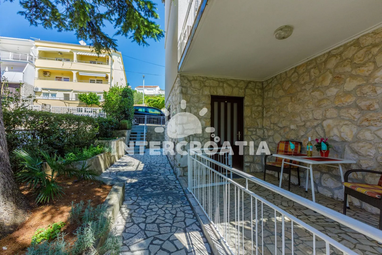 Apartmán se nachází 250 m od moře a pláže. Pláž je oblázková a betonové desky. U objektu je k dispozici společná zahrada s posezením a grilem. Parkování je před domem.