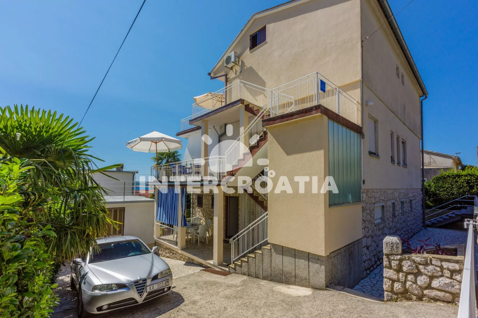 Apartmánový dům se nachází 300 m pěší chůzí od oblázkové pláže. Dům nabízí ubytování ve 3 apartmánech s lodžiemi a venkovním posezením. Parkovací místa u objektu.