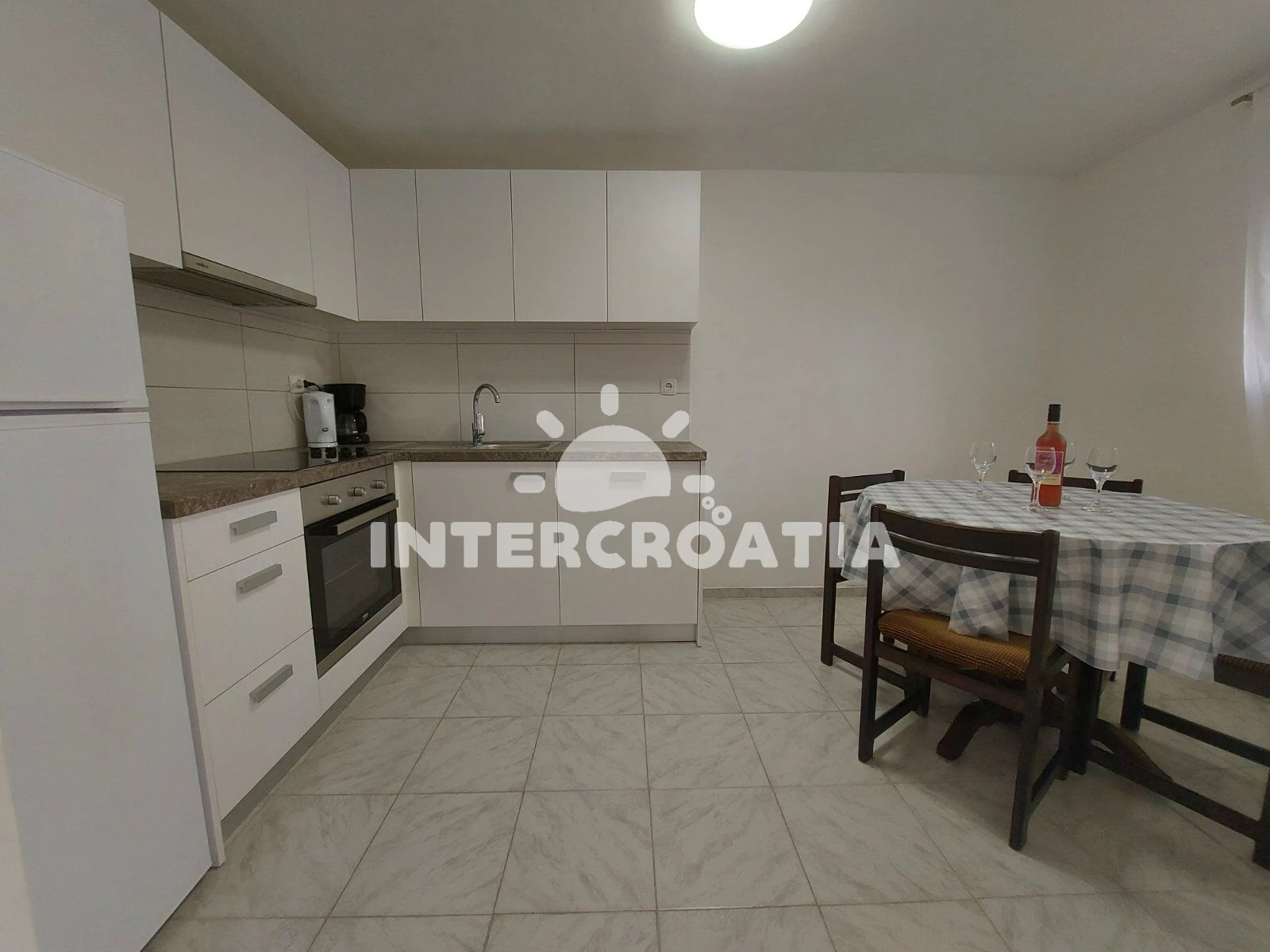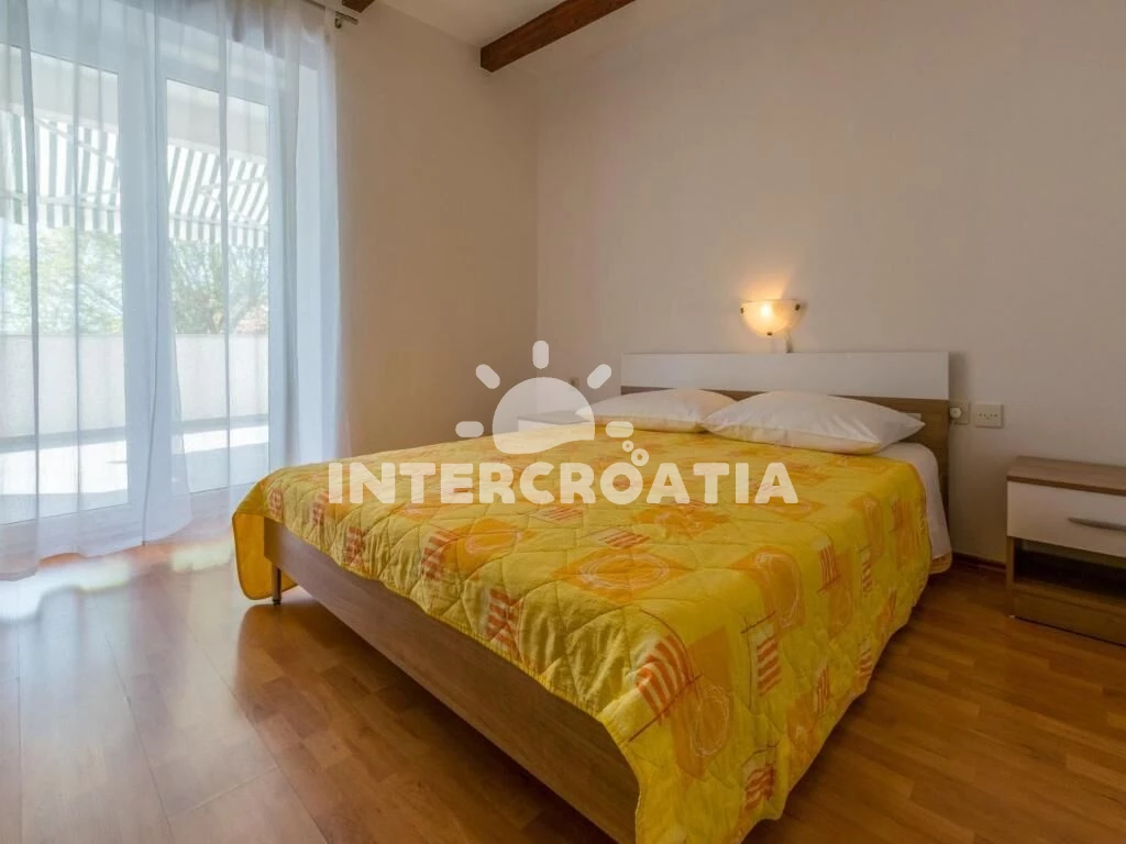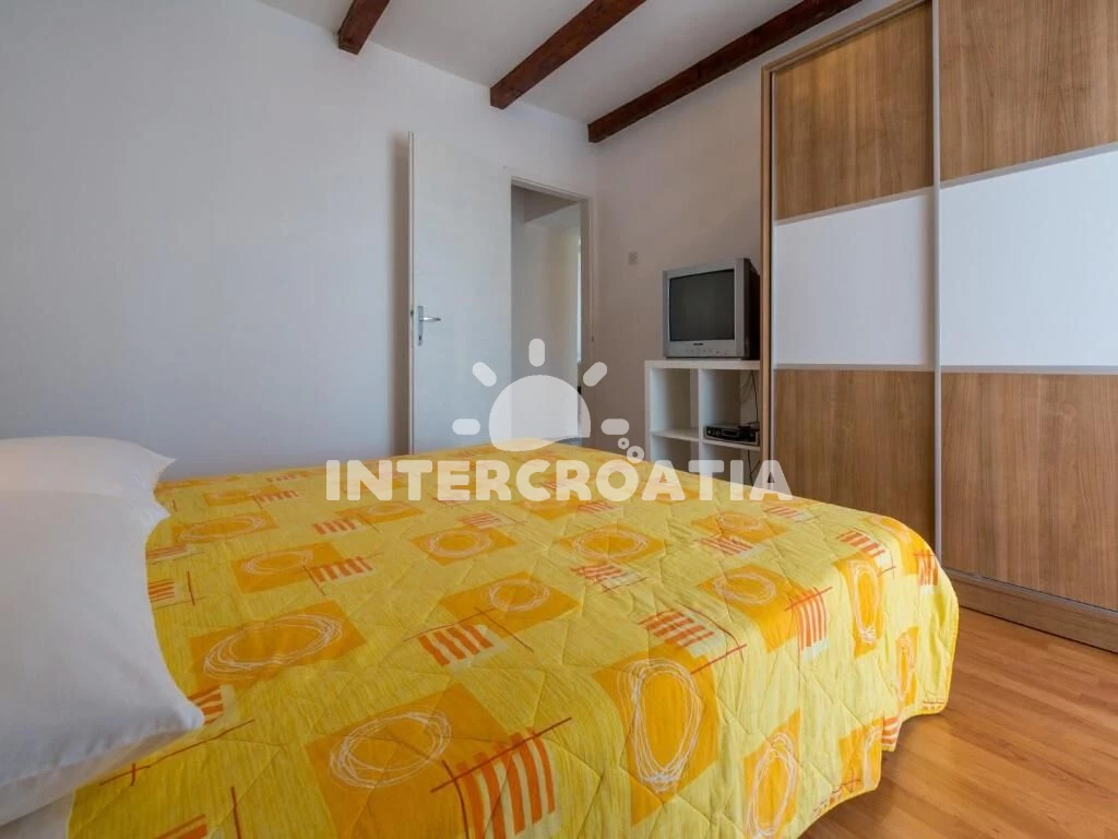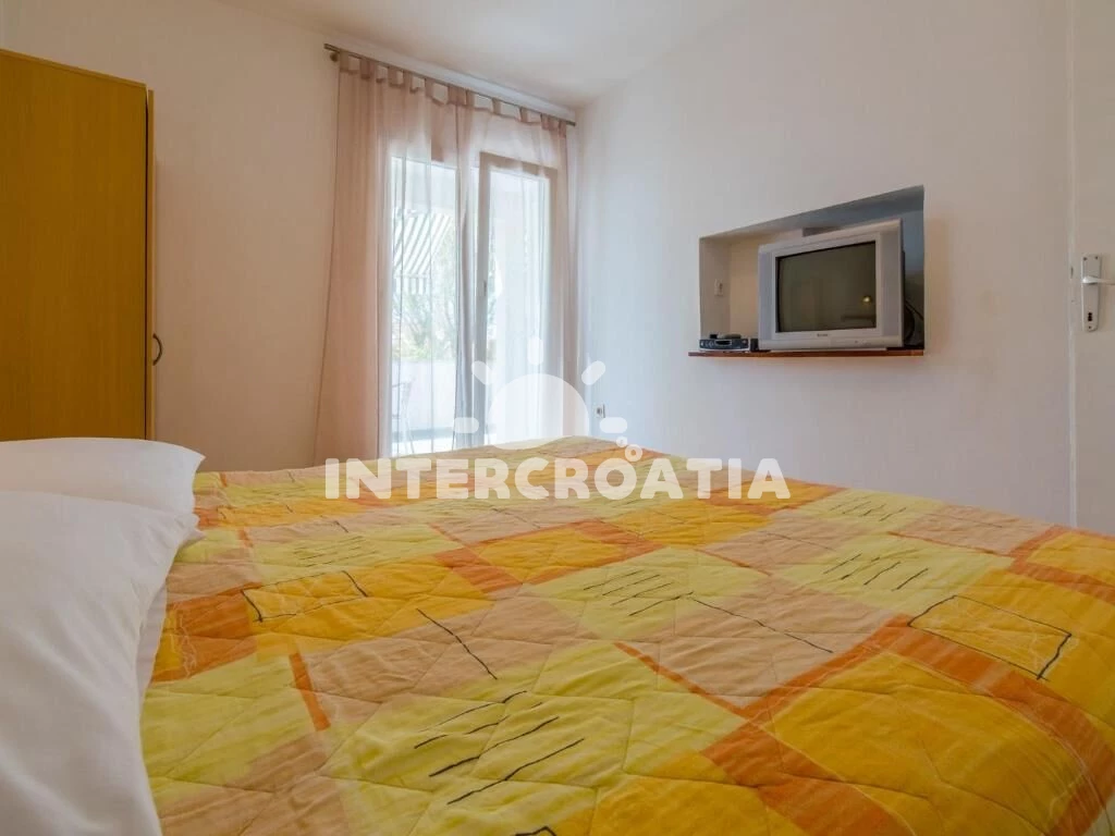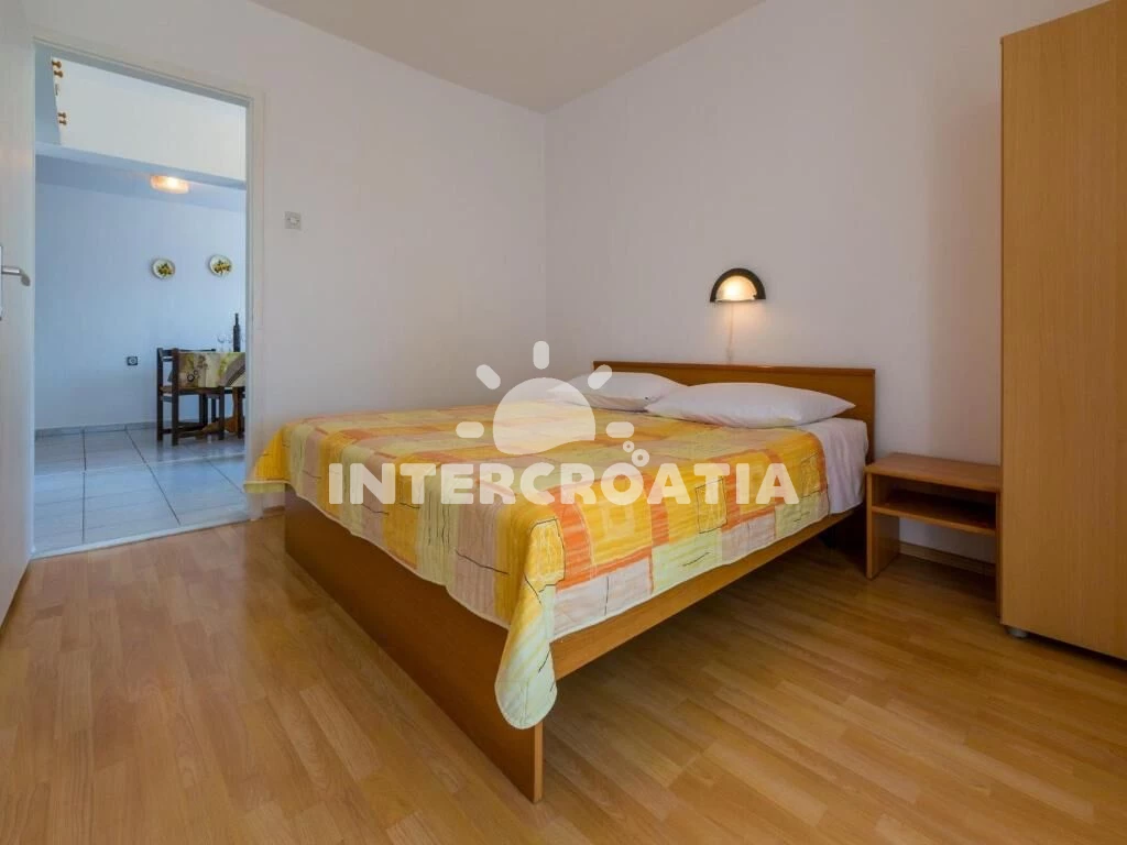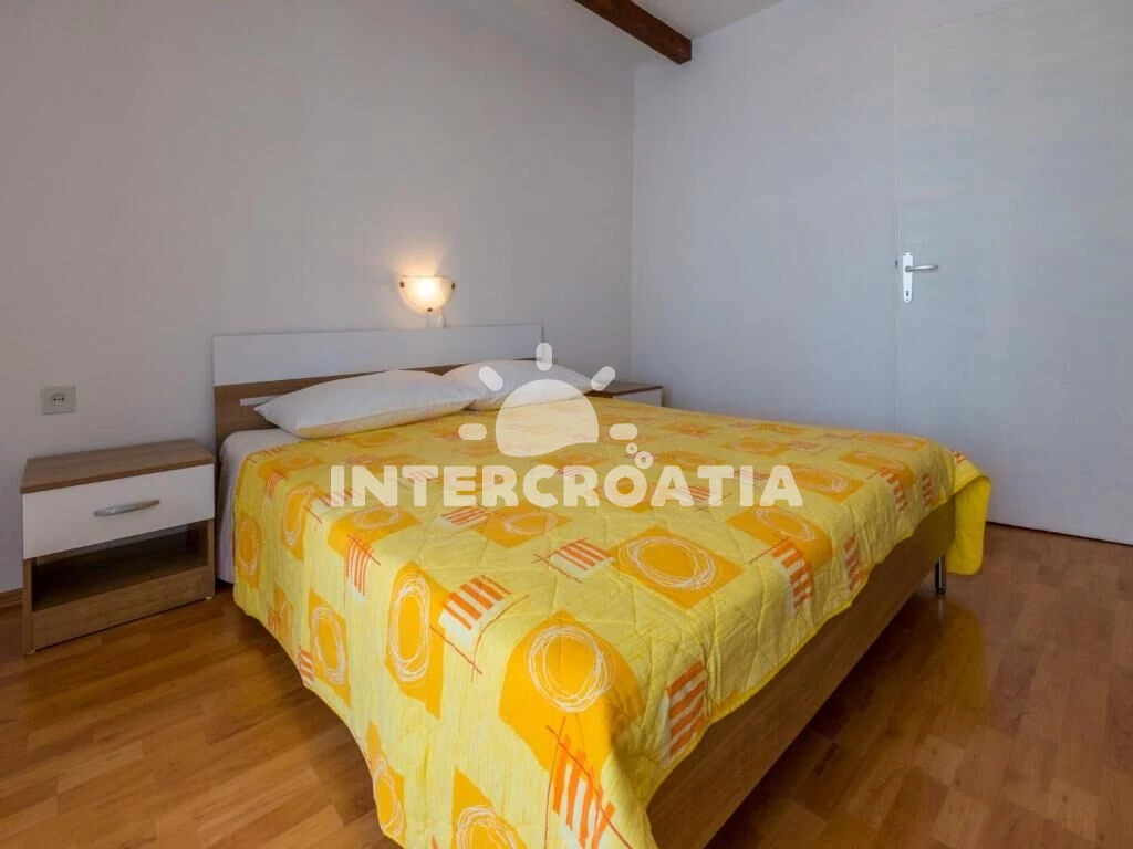 Apartmán (55 m2) s terasou, výhledem na moře a do klidné ulice se nachází v přízemí domu. Apartmán má dvě ložnice a je vhodný pro 4 osoby. Kuchyňská linka je vybavena varnou deskou, rychlovarnou konvicí, kávovarem, nádobím a lednicí s mrazákem. Dále jídelní stůl pro 4 osoby. První i druhá ložnice je vybavena dvoulůžkem, televizí se satelitním programem a vstupem na terasu. Koupelna se sprchovým koutem, umyvadlem, pračkou a wc. Hostům je k dispozici parkování u objektu zdarma.