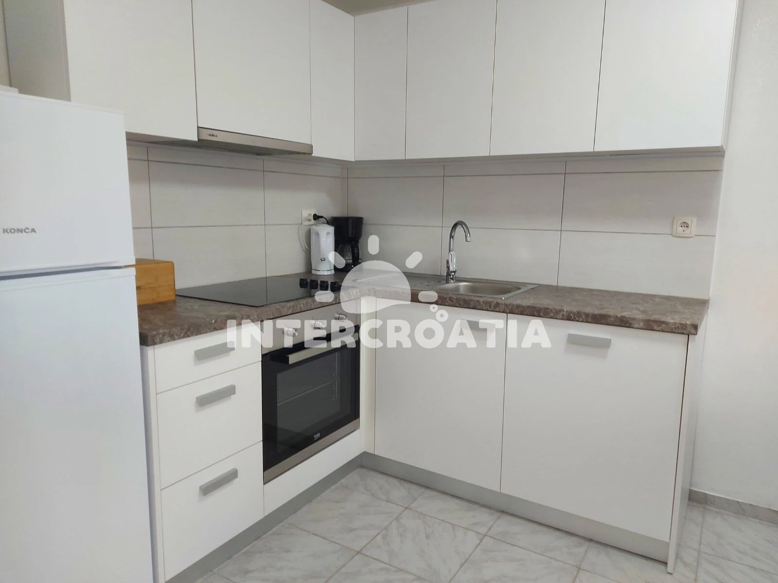 Apartmán (55 m2) s terasou, výhledem na moře a do klidné ulice se nachází v přízemí domu. Apartmán má dvě ložnice a je vhodný pro 4 osoby. Kuchyňská linka je vybavena varnou deskou, rychlovarnou…