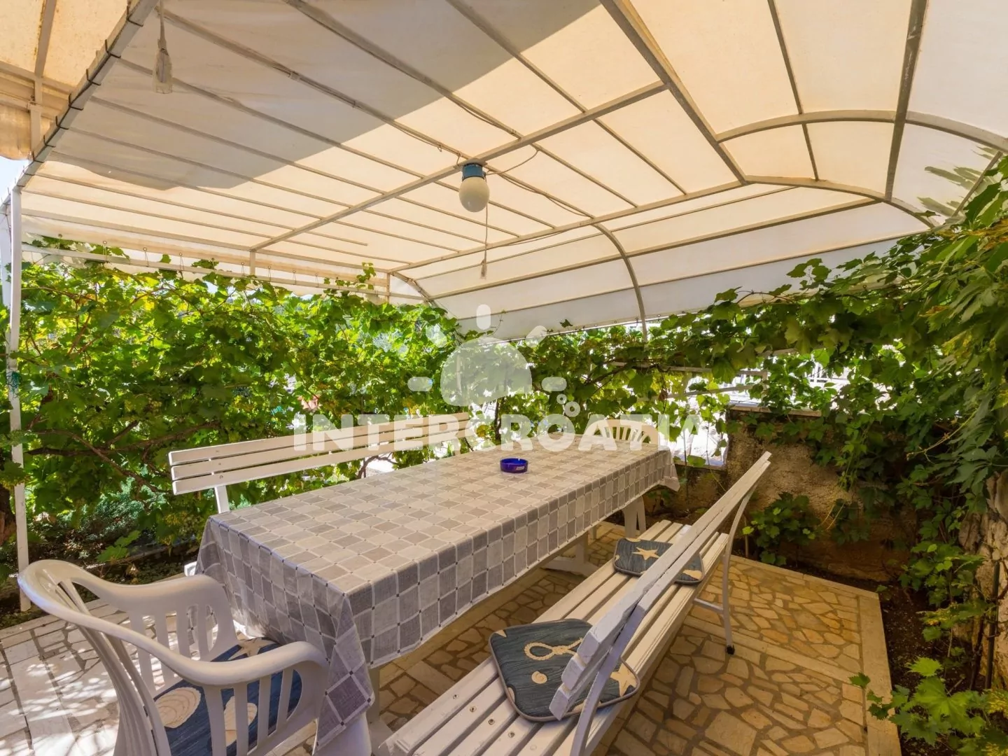 Velmi dobře umístěný dvou-apartmánový dům, nachází se v klidné lokalitě s výhledem na moře. Apartmány disponují lodžiemi a venkovním posezením. K moři a betonové pláži dojdete po 50 m, na oblázkovou pláž Kačjak po 550 m. Parkovací místa pro automobily u objektu.
