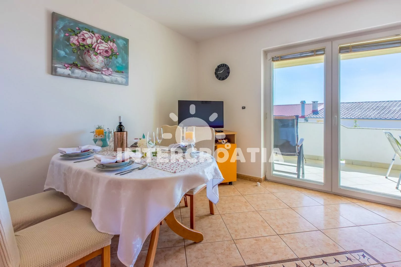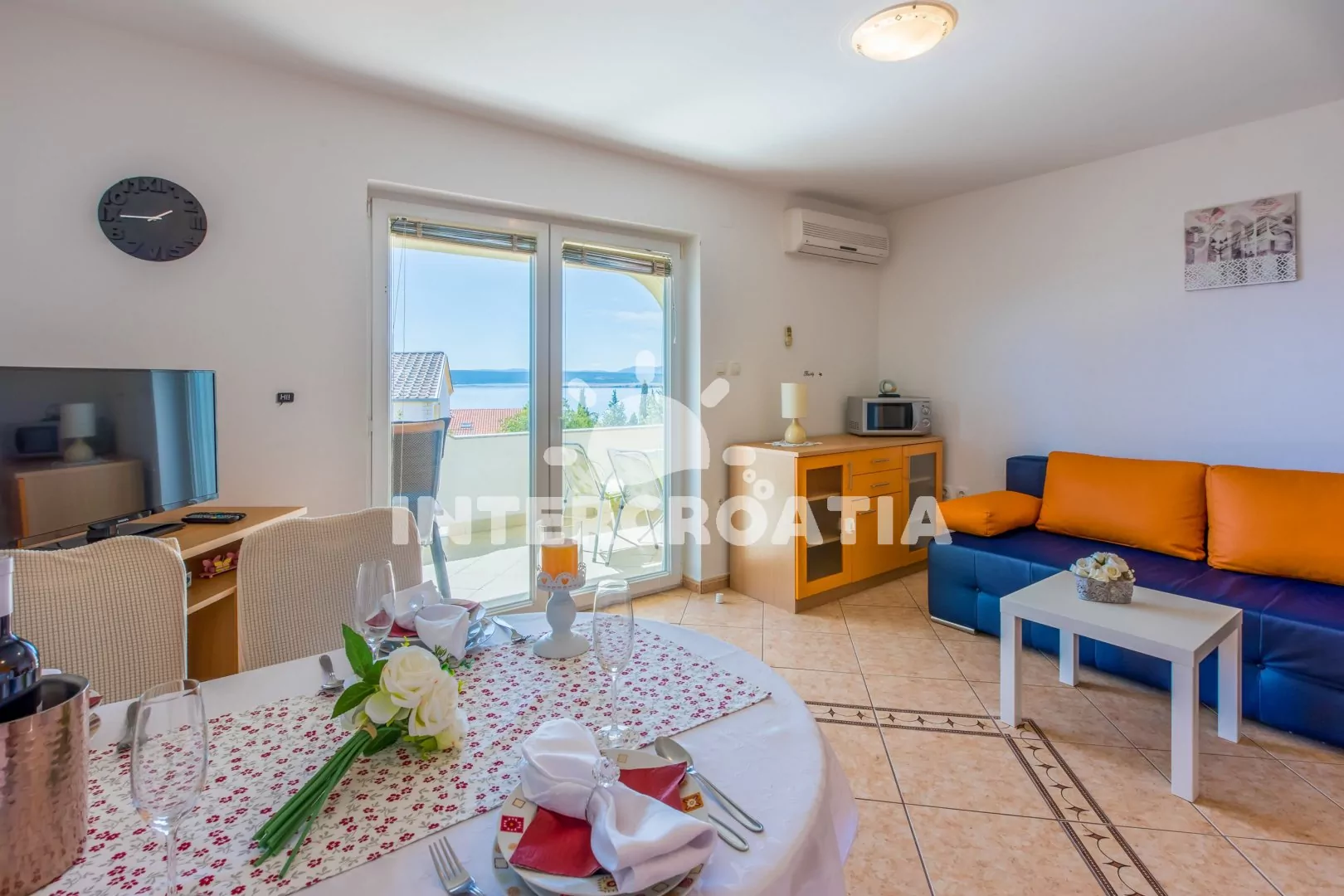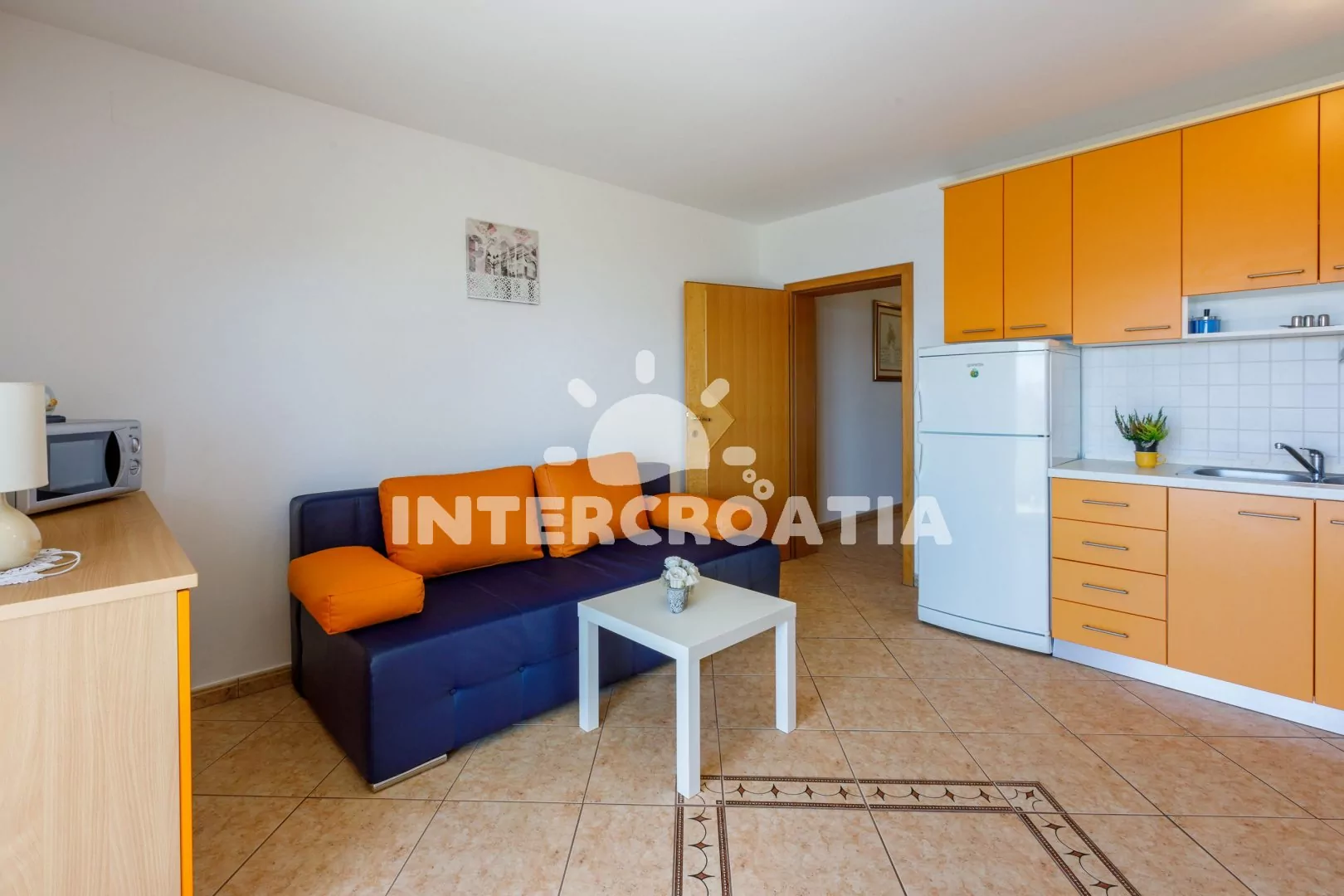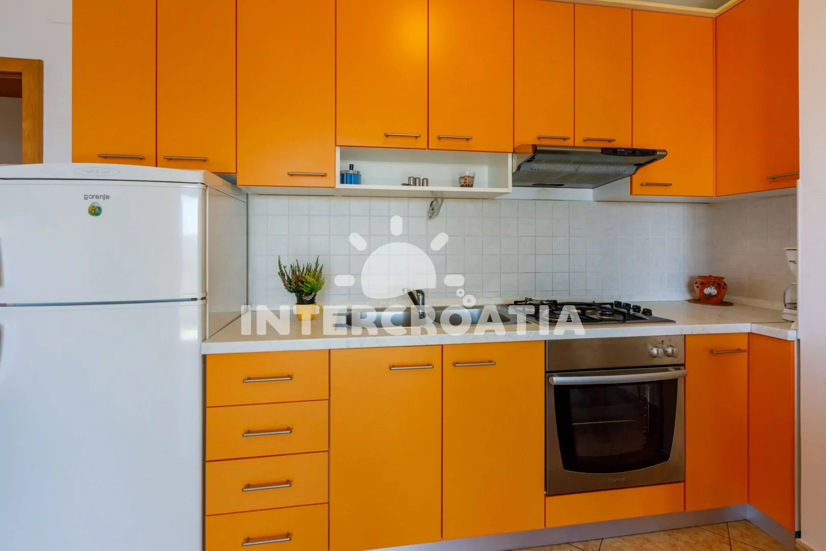 Apartmán (48 m2) s terasou a výhledem na moře, se nachází v 1. patře domu a je vhodný pro 2 až 4 osoby. Obývací pokoj je spojený s kuchyní. Kuchyňská linka je vybavena varnou deskou, digestoří,…